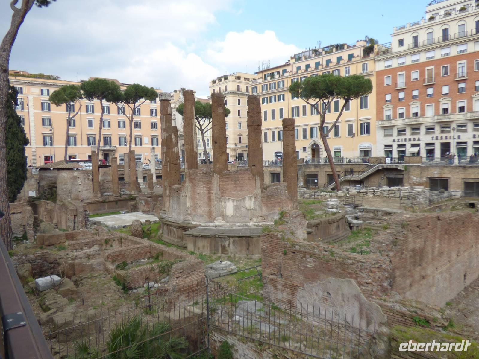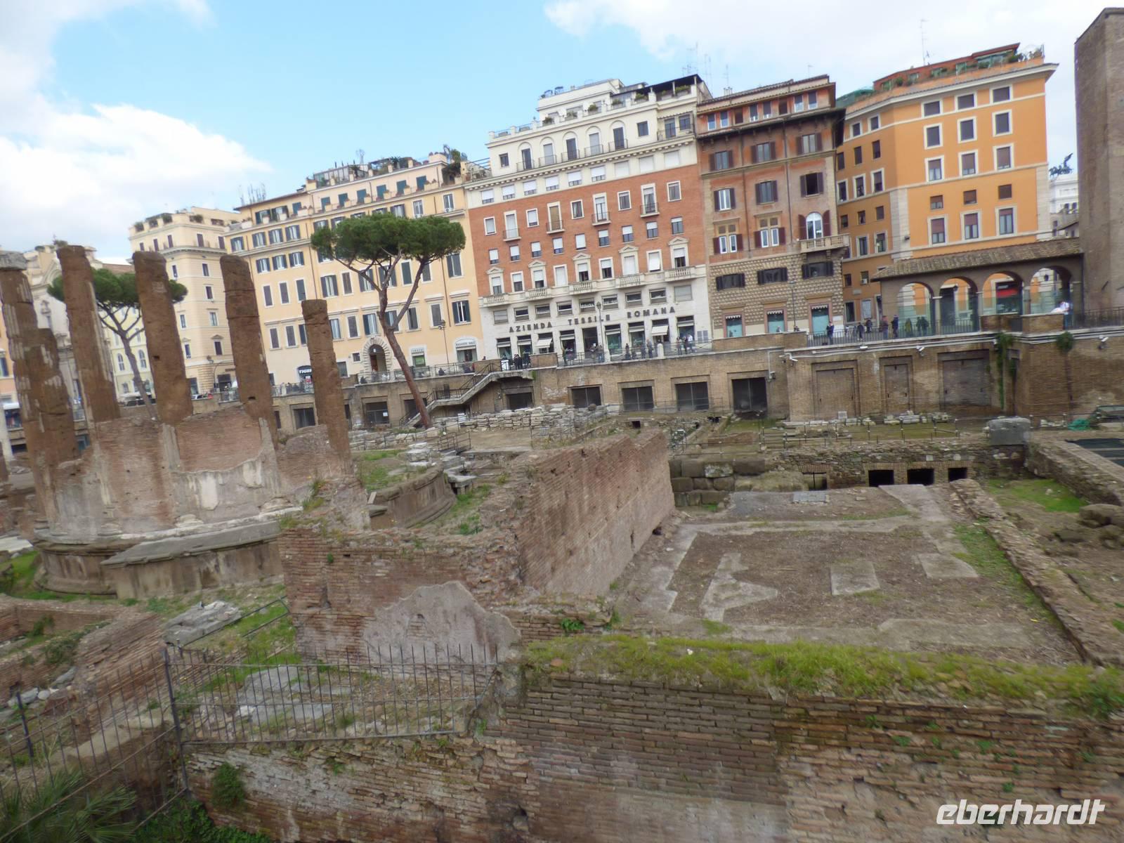 Frisch gestärkt setzten wir unsere Runde fort und schlenderten zur Largo Argentina - mitten in der Stadt gelegen breiteten sich vor uns die Reste einer ehemaligen Tempelanlage aus. Und wie es sich gehört, wohnen hier natürlich keine Menschen mehr. Aber die Tempelkatzen sind geblieben und bewachen noch heute das Gelände.