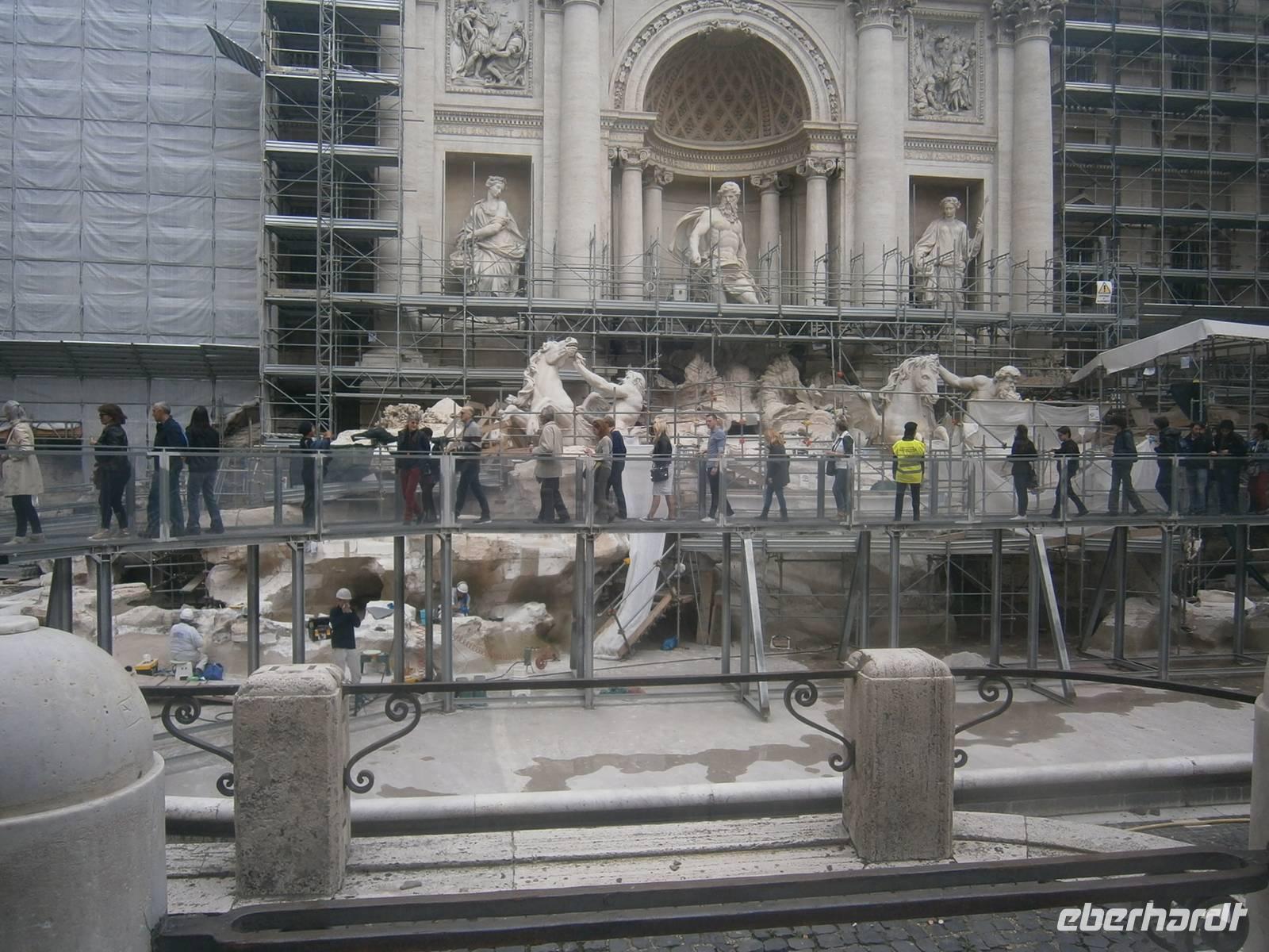 Ein neuer Tag, ein neuer Morgen - das antike Rom steht auf unserem Tagesplan. Mit der Metro Linie A fährt die Reisegruppe gemeinsam bis zur Station Spagna. Hier ist der Treffpunkt mit Susanne - an der Spanischen Treppe. Susanne erzählt uns, dass die Spanische Treppe eigentlich gar nicht so heißt; sondern Scalinata della Trinita dei Monti - benannt nach der oberhalb stehenden Kirche Santa Trinta dei Monti. Am Fuße der Treppe befindet sich der Brunnen „Fontana della Barcaccia"- geschaffen von Pietro und Gain Lorenzo Bernini. Die Treppe ist in diesen Tagen noch nicht geschmückt. Erst wenn die Azaleen blühen (April-Mai), werden die großen Töpfe aufgestellt. Gemeinsam spazieren wir über die Via dei Condotti. Die Einkaufsstraße zum „Anschauen". Berühmte Modedesigner haben hier ihre Adresse. So auch TOD'S. Diese Firma hat mehrere Millionen Euro für die Reinigung des Coloseums zur Verfügung gestellt. An der Piazza d. Rotonda steht das Pantheon, es bildet den Mittelpunkt der Altstadt und ist das besterhaltene Bauwerk der römischen Antike. Gebaut wurde das Pantheon durch Kaiser Hadrian, ursprünglich allen Göttern geweiht. Seit dem Jahr 609 dient das Pantheon als katholische Kirche, geweiht der heiligen Maria, Santa Maria ad Martyres. Im Inneren sind zahlreiche Grabmale. So befindet sich hier unter anderem das Grab von Raffael, das Grab von Königin Margarita und das Grabmal von König Vittorio Emmanuele. Staunend stehen unsere Gäste unter der Kuppel, gebaut aus römischen Beton (Tuff- und Bimsstein vulkanischen Ursprungs), mit einem Durchmesser von 43,45 m. Weiter führt uns Susanne zum wohl bekanntesten Brunnen der Stadt - dem Trevibrunnen - erbaut Mitte des 16. Jahrhunderts. Leider ist der Brunnen in diesen Tagen etwas verdeckt. Er wird an insgesamt 600 Tagen gereinigt und saniert. Trotzdem nutzen unsere Gäste den Aufenthalt am Brunnen, um mit der rechten Hand über die linke Schulter die Münzen zu werfen.