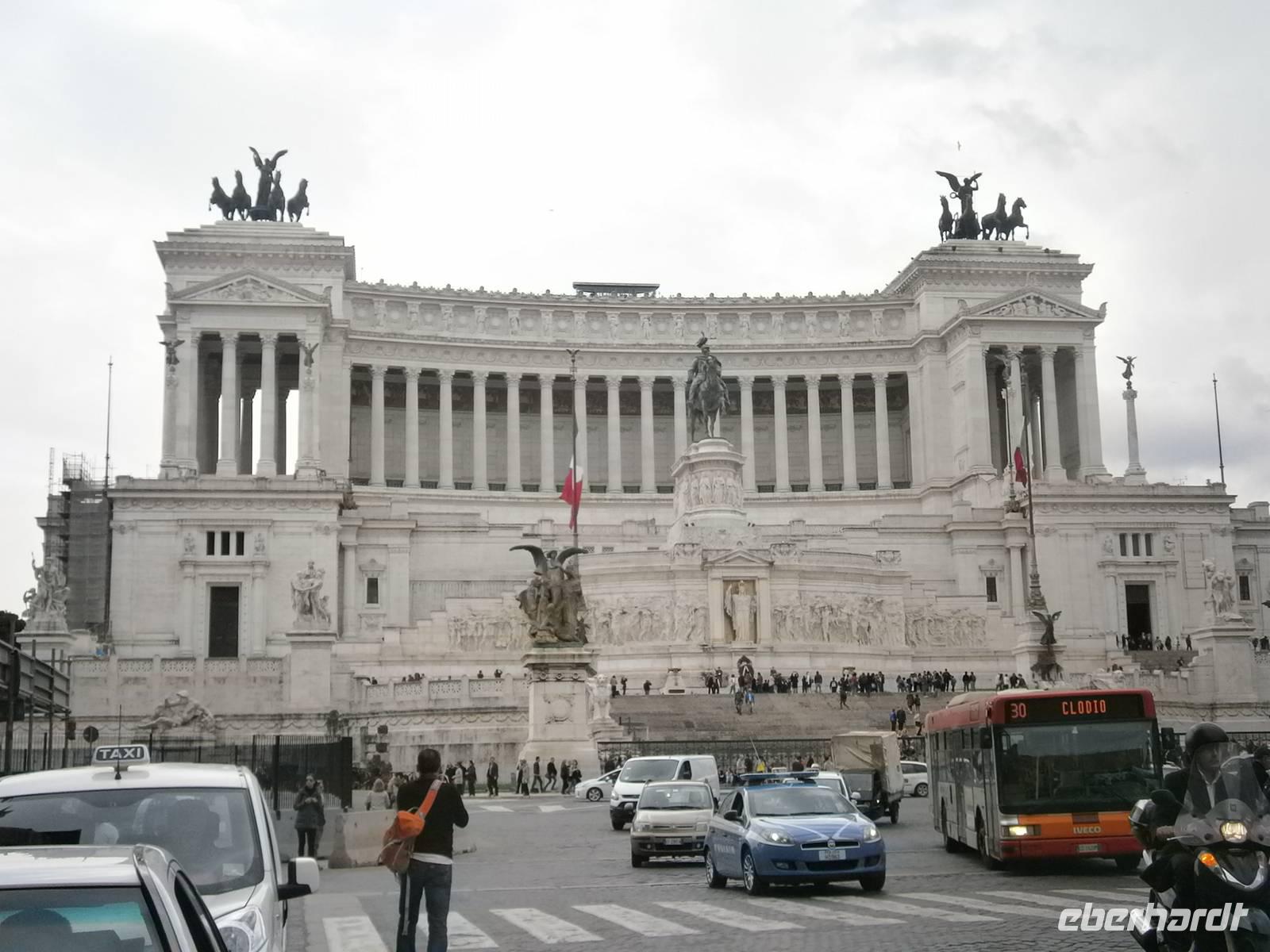 Das Nationaldenkmal für Viktor Emanuell II., gebaut aus weißem Marmor, wurde 1911 eingeweiht. Es ist mit einer Breite von 135 m und einer Gesamthöhe von 70 m das größte Denkmal Italiens.