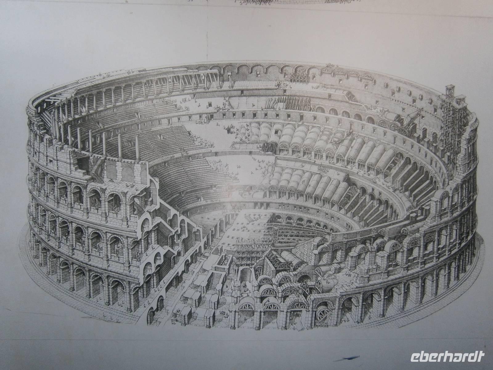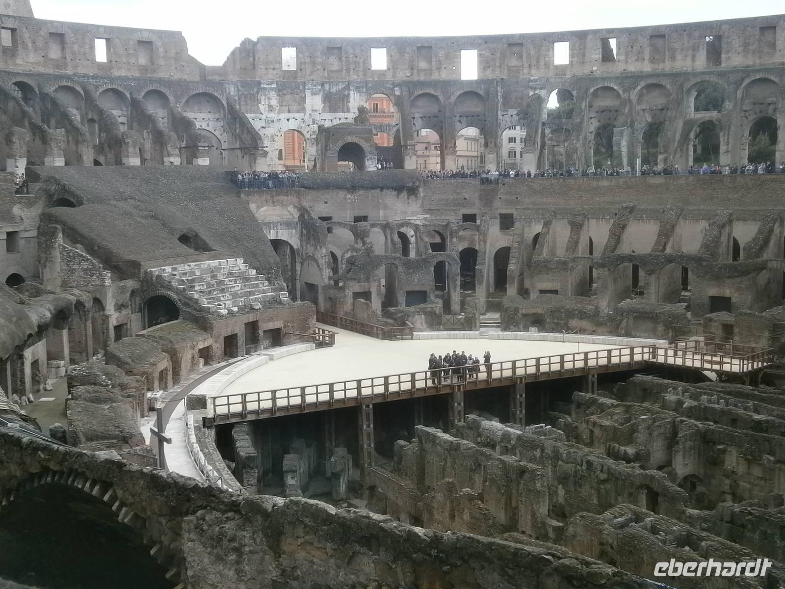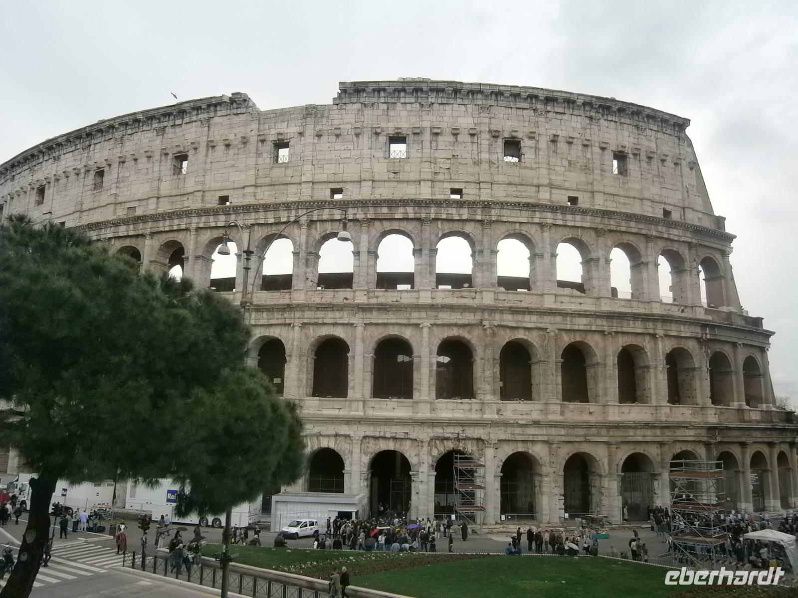 Der Weg führt unsere Gäste weiter über die Via dei Fori Imperiali (Straße der Kaiserforen) hinauf zum Colosseum. Dank der Vorreservierung durch Eberhardt Travel müssen wir uns nicht in die Schlange der Wartenden einreihen, sondern können direkt in das Innern spazieren. Das Colosseum wurde unter Kaiser Vespersian im Jahr 72 n.Chr. errichtet und zählt heute zu den berühmtesten Bauwerken der Stadt.