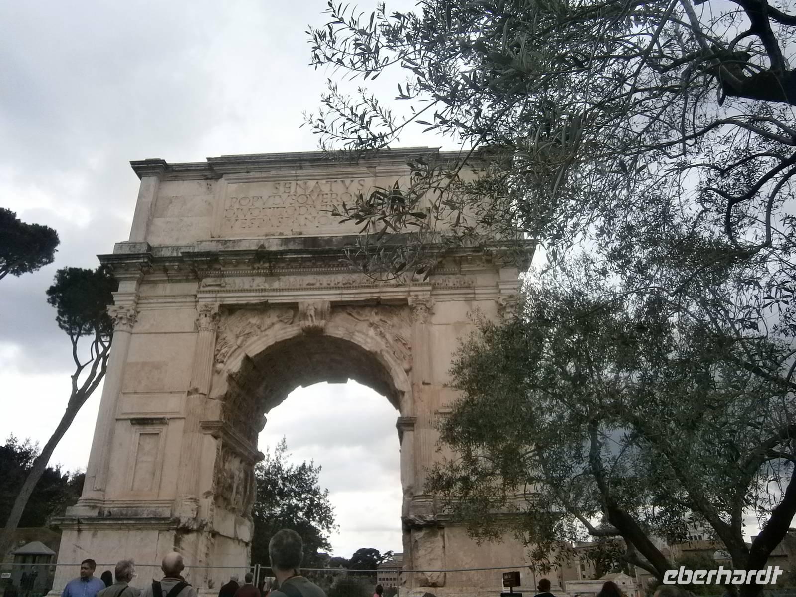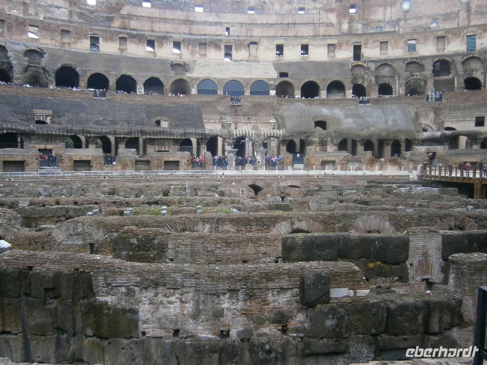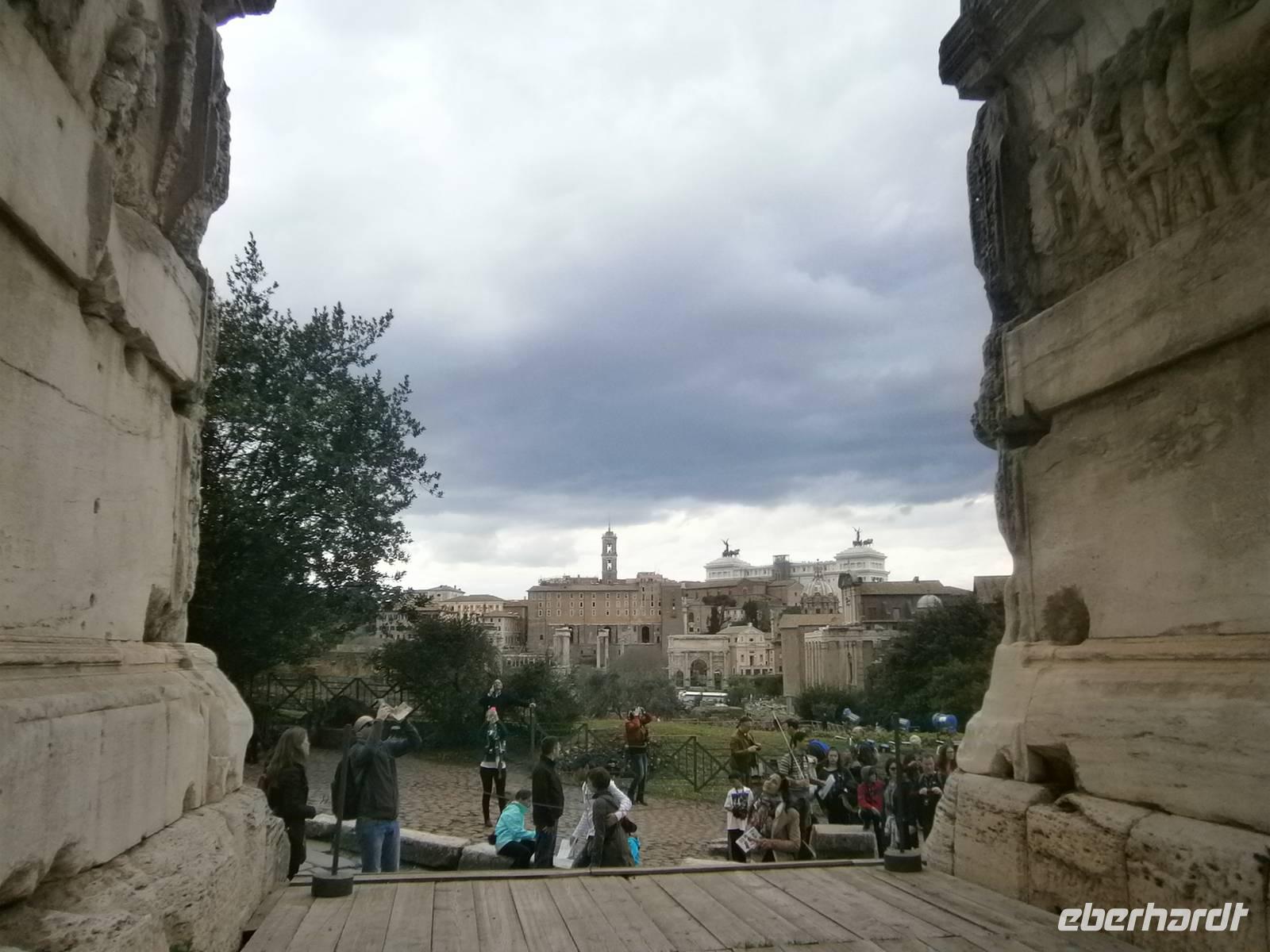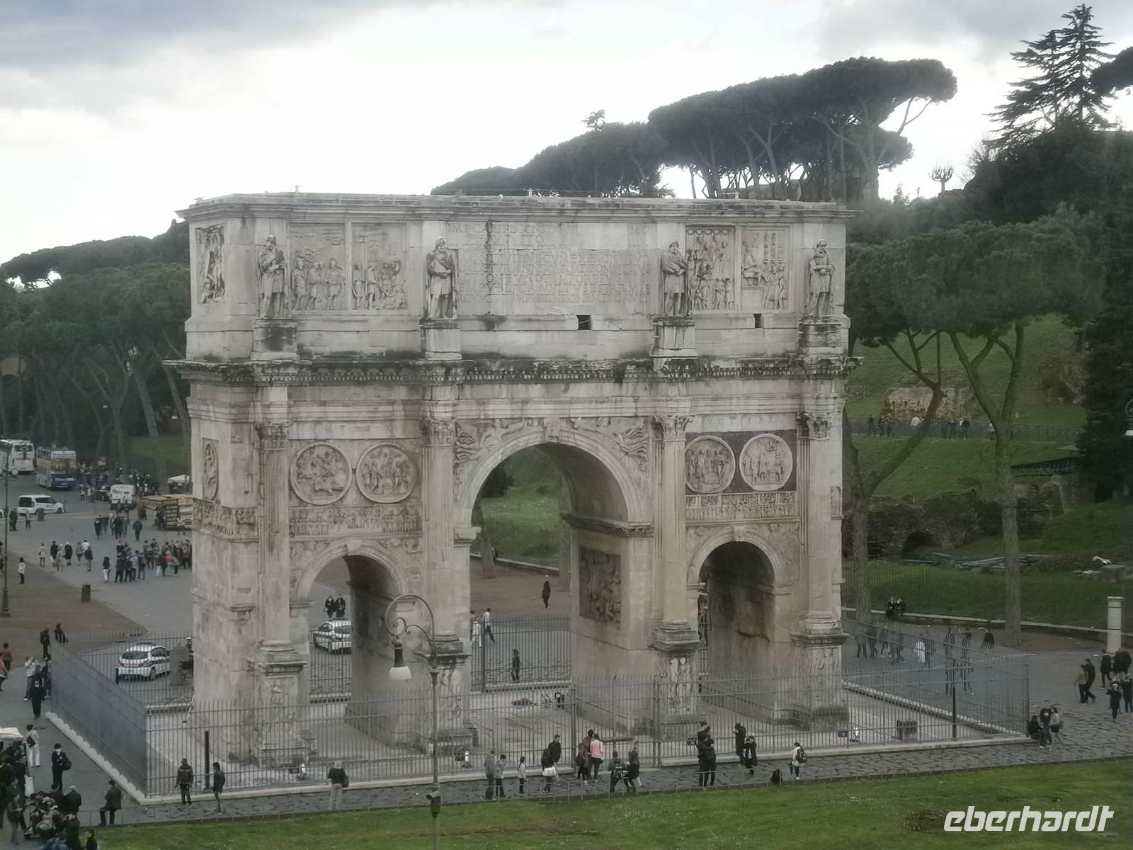 Bei der Innenbesichtigung erfahren wir von Susanne viele Dinge und Aspekte die mit dem antiken Bau im Zusammenhang stehen. So hatte man 80 Eingänge, die es den Besuchern ermöglichten, auf kurzem direktem Weg zu ihren Sitzplätzen zu gelangen und dass das Coloseum ein Fassungsvermögen hatte, um ungefähr 50 000 Besuchern Platz zu bieten. Im Verlaufe der Jahrhundert erlebte das Colosseum eine wechselvolle Geschichte, von Erdbeben arg in Mitleidenschaft gezogen, während des Mittelalters als Steinbruch benutzt zeigt es sich heute dem Besucher in einer besonderen Ansicht. In unmittelbarer Nachbarschaft steht der Konstantinbogen und liegt das politische Zentrum der Antike - Das Forum Romanum. Unsere Eintrittskarten vom Colosseum sind auch gleichzeitig die Eintrittskarten für das Foro Romano.