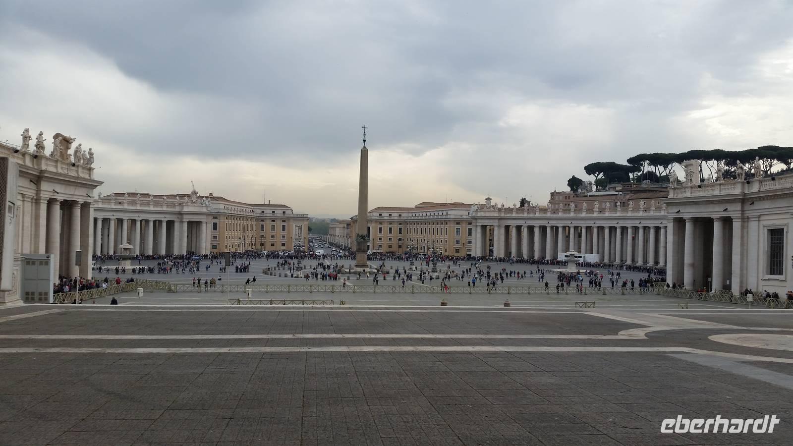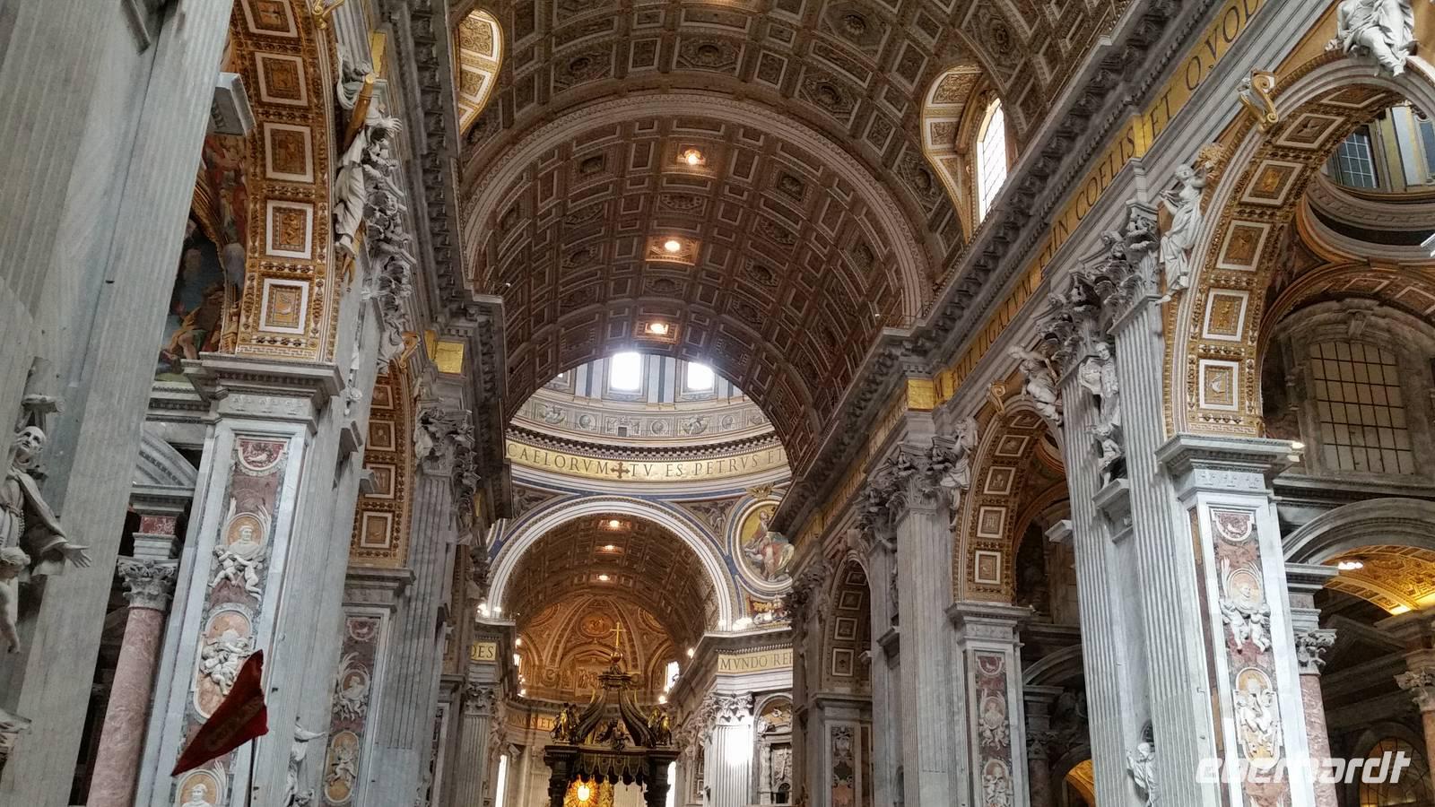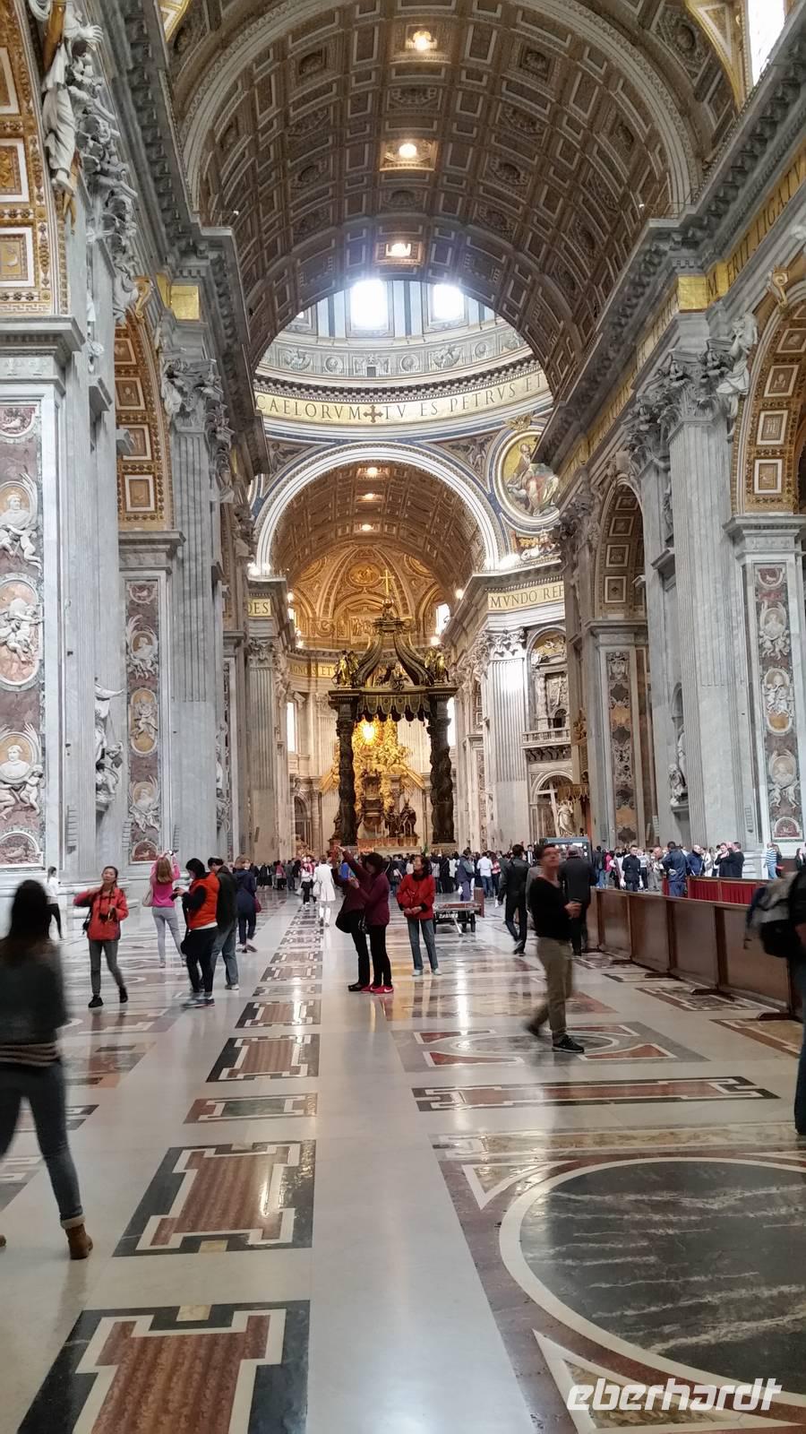 Da die öffentlichen Verkehrsmittel heute nicht so wollen wie wir, machen wir ein wenig Frühsport und laufen gen Petersplatz, wo wir unsere Reiseleiterin Agnieszka treffen. Wir verschwenden nicht viel Zeit und stellen uns sofort in die endlose Schlange, um in die flächenmäßig größte Kirche der Welt zu gelangen. Basilica di San Pietro.