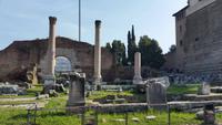 Nach dem Frühstück brechen wir auf, um unsere heutige Reiseleiterin Sylvia an der Metrostation Cipro zu treffen. Gemeinsam fahren wir Richtung Forum Romanum, was unser erster Stopp der heutigen Tagesetappe ist. Bei strahlendem Sonnenschein erklärt uns Sylvia das älteste römische Forum. Das Forum Romanum war über Jahrhunderte der Mittelpunkt des Römischen Reiches. Eingeschlossen zwischen den drei Stadthügeln Palatin, Esquilin und Kapitol sehen wir die Überreste der ältesten Tempel des Römischen Reiches, wie z.B. den Tempel des Divus Iulius, an welchem Julius Caesar kremiert wurde. Noch heute liegen regelmäßig Blumen auf dem Altar.