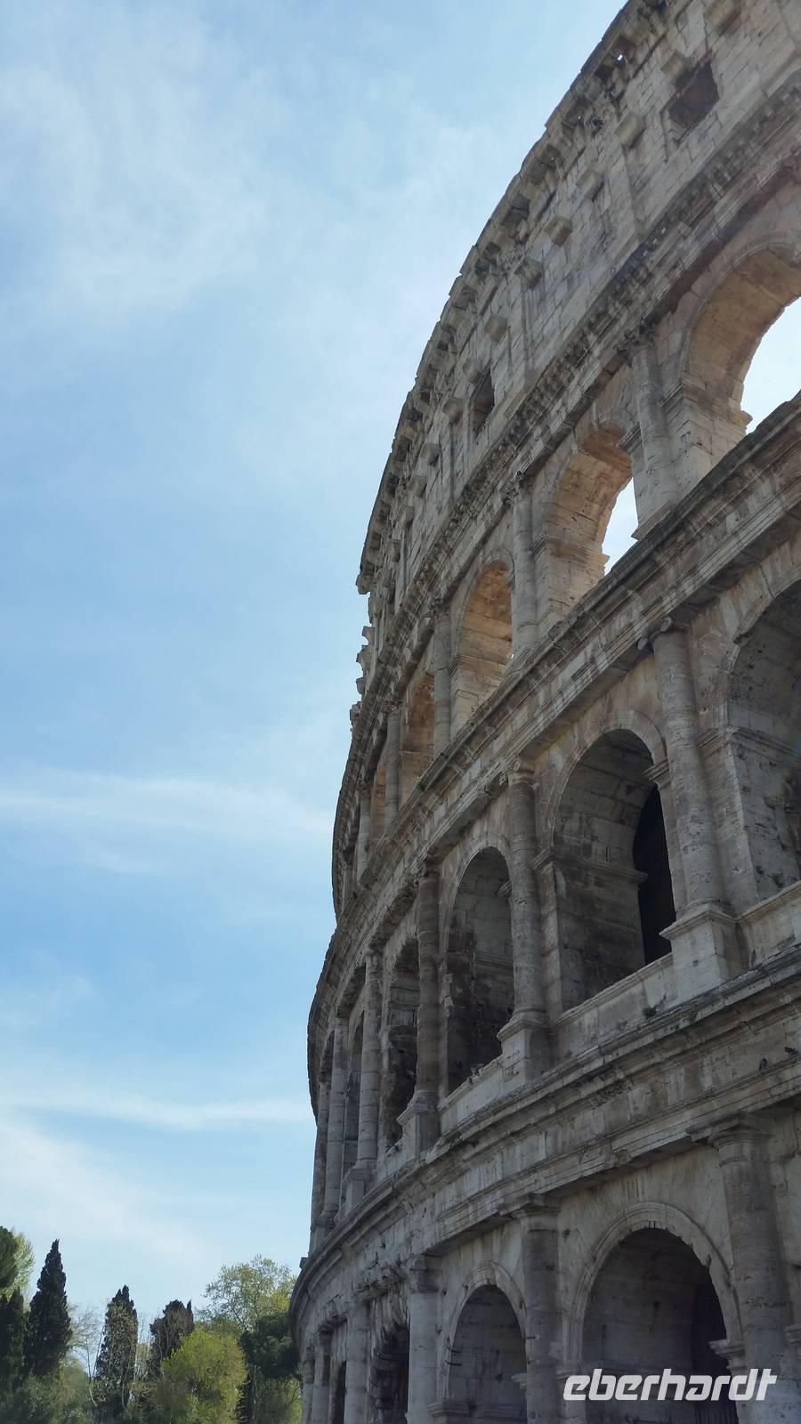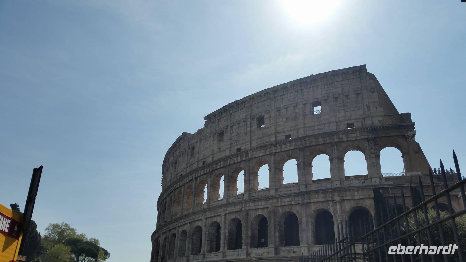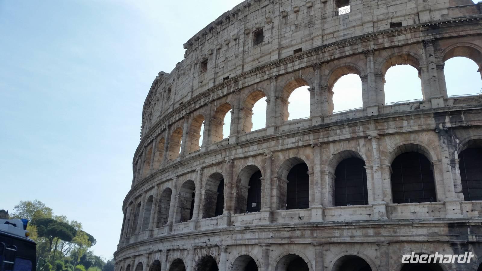 Anschließend verlassen wir das Forum und gehen weiter, um gemeinsam das Kolosseum zu besichtigen. Ein über 2000 Jahre alter Schauplatz grausamer Spektakel. Skuril - denn heute ist das Wahrzeichen der Stadt ein Monument gegen die Todestrafe. 48 Stunden lang erstrahlt das Kolosseum in bunten Farben, wenn in einem Land der Welt die Todestrafe abgeschafft wird.