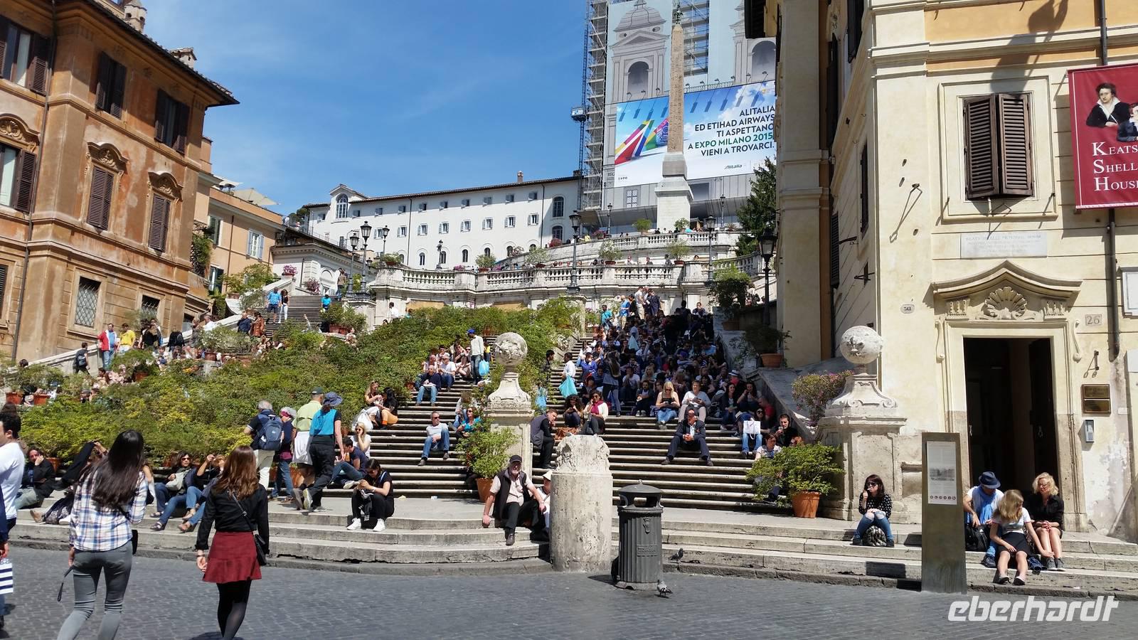 Gut gestärkt brechen wir zur letzten Station des heutigen Ausfluges auf. Scalinata di Trinità dei Monti. Oder Kurz: Spanische Treppe. Diese Treppe am Piazza di Spagna ist einer der beliebtesten Treffpunkte von Touristen und den Einwohnern Roms. Dort endet unsere heutige Tour durch Rom. Wir schlendern noch kurz durch die Gassen vorbei am Caffè Greco, in dem einst Goethe an seinen Werken arbeitete. Anschließend verabschieden wir uns von Sylvia und fahren gemeinsam mit der Metro zurück Richtung Hotel. Einige von uns verabreden sich zum gemeinsamen Abendessen und lassen den Abend dort gemütlich ausklingen.