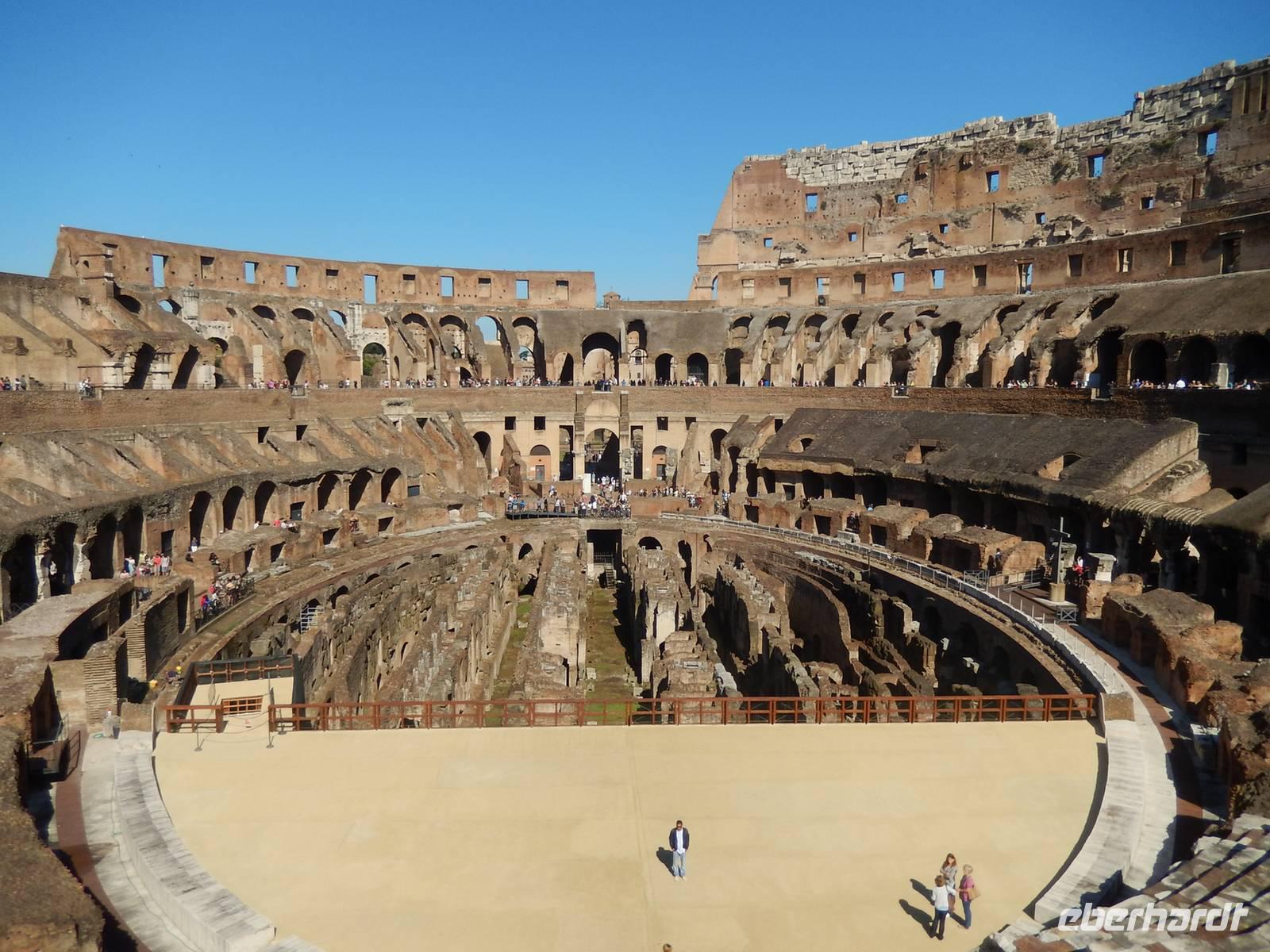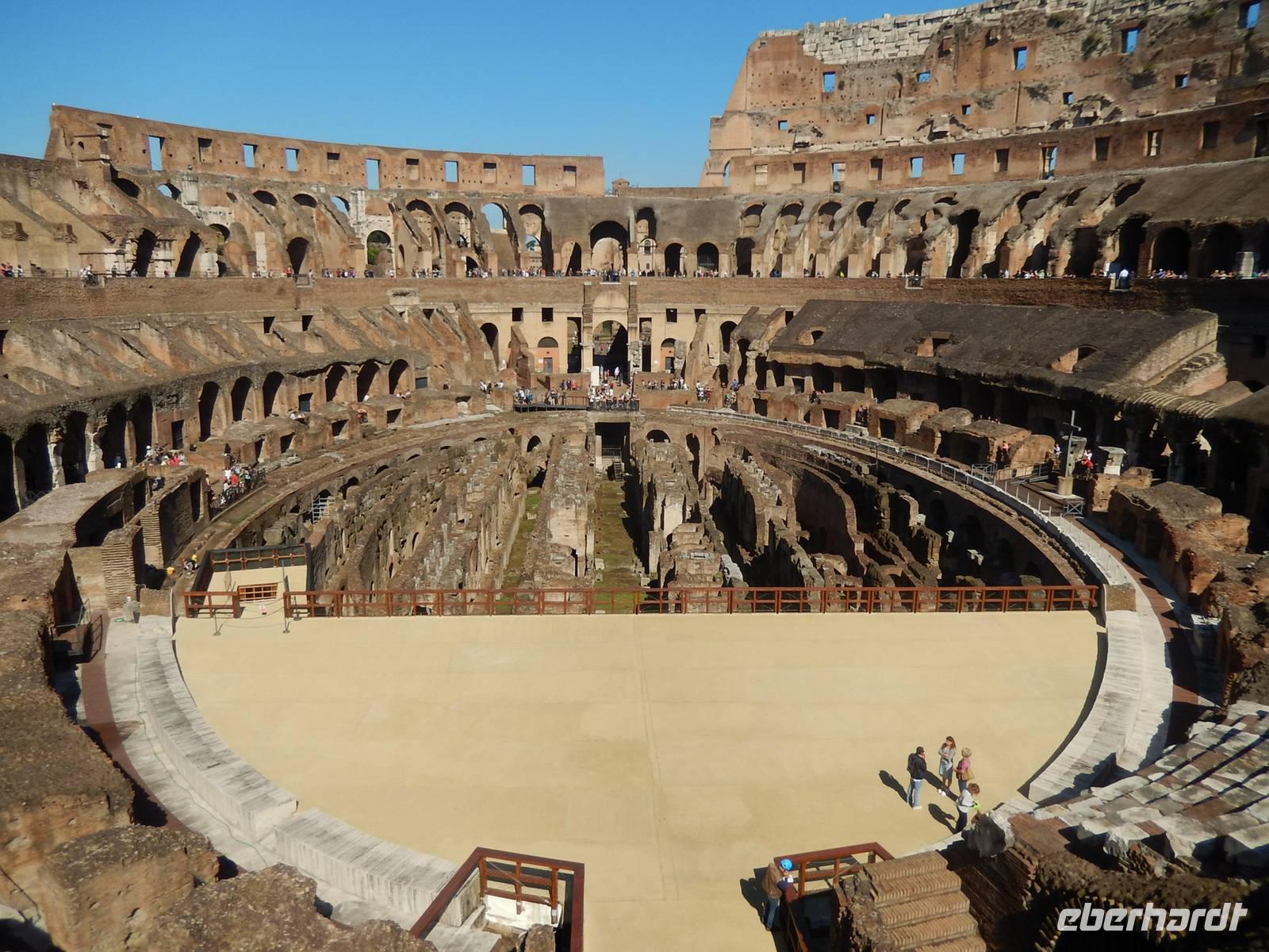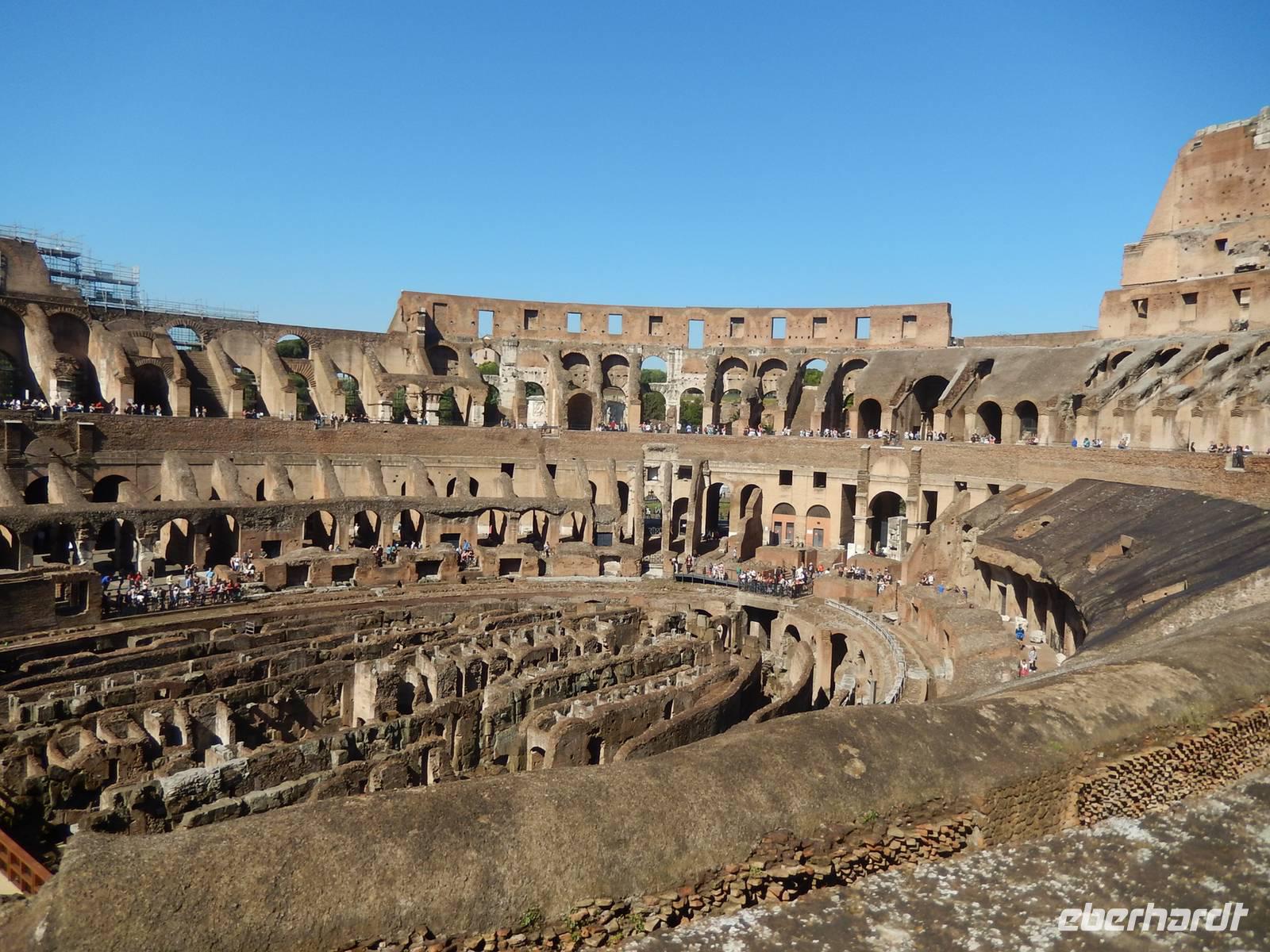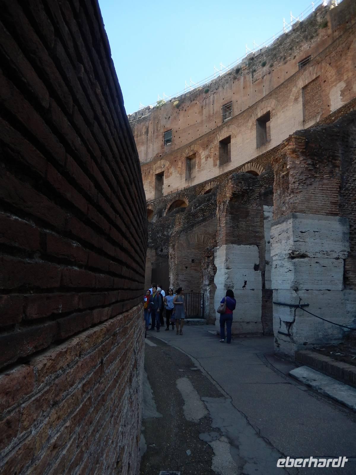 Unsere Tickets hatten wir bereits in der Tasche und konnten uns so den Eingang in das Amphitheatrum Flavium, wie das Kolosseum in der Antike genannt wurde, aussuchen. Es hatte sich durchaus gelohnt, dieses bereits früh am Vormittag zu besuchen, denn so war es noch nicht ganz so überfüllt, wie später am Tag. Immerhin besuchen jährlich etwa 6 Millionen Menschen das Kolosseum, über 16.000 am Tag! Marilisa erklärte uns alles Wissenswerte und wir hatten genügend Zeit, eine komplette Runde um die Arena zu drehen.