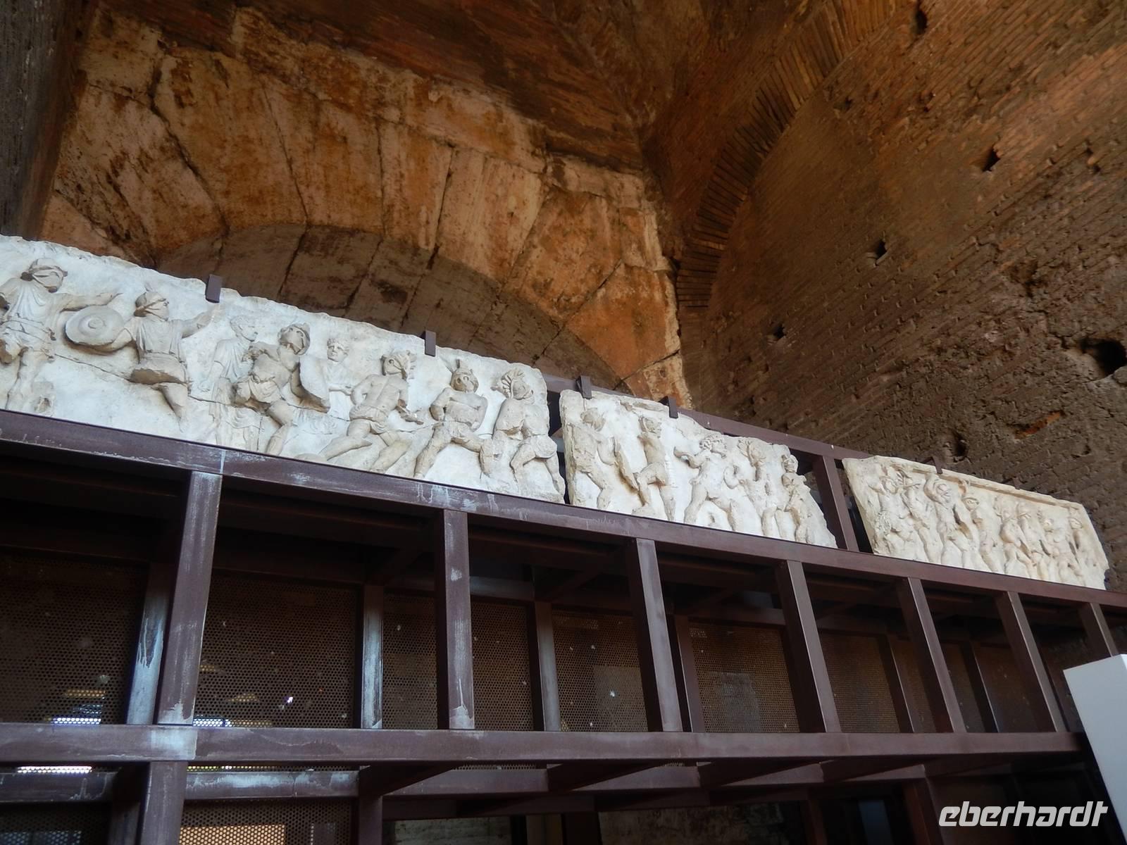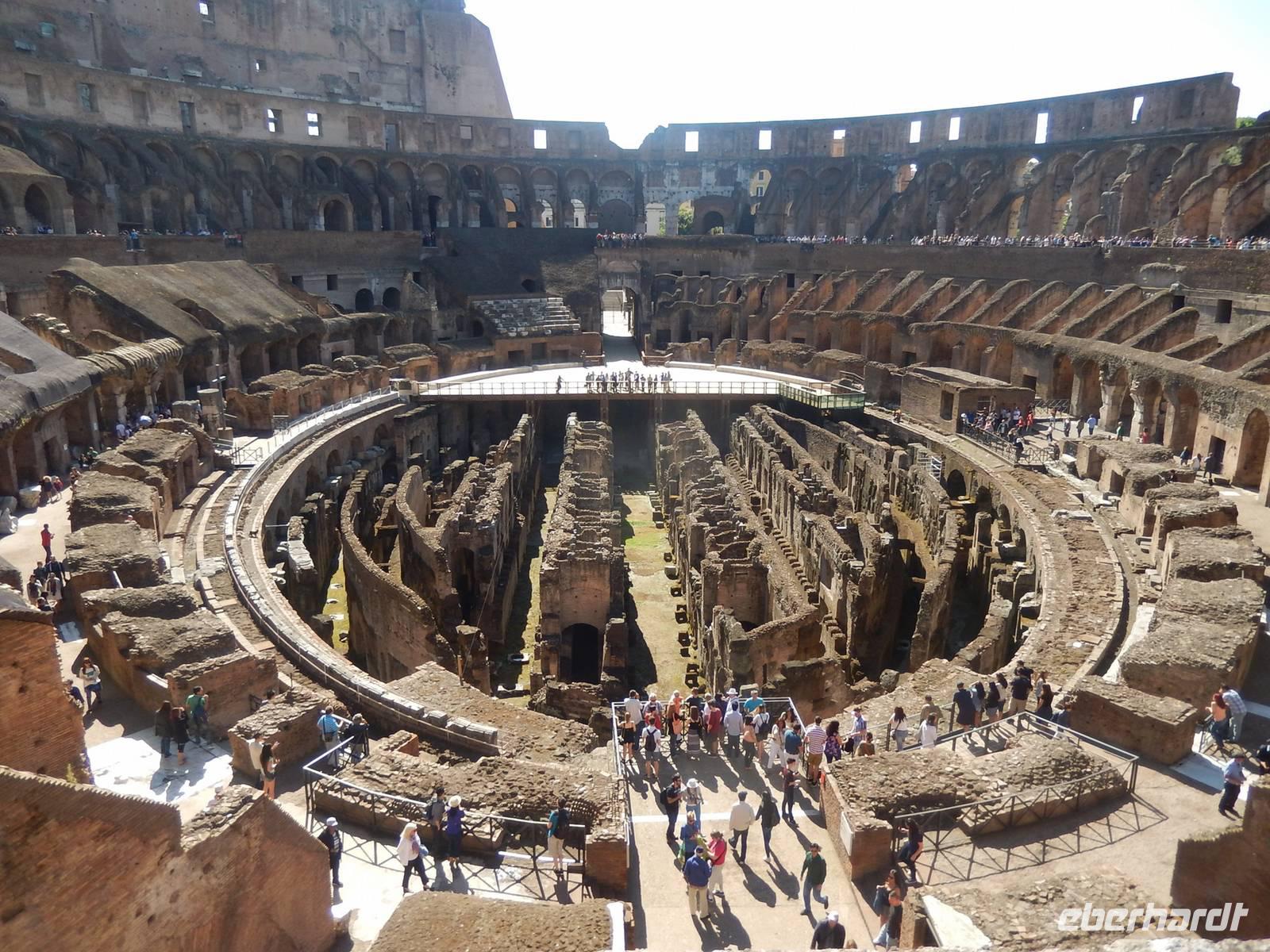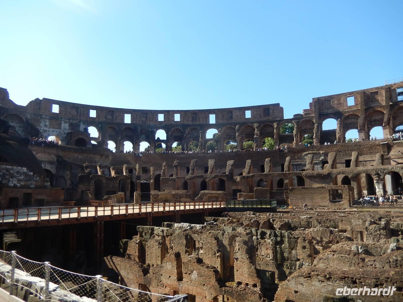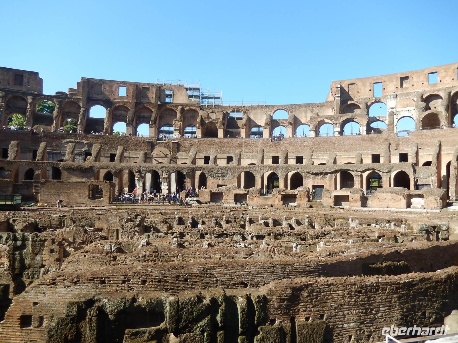 Unsere Tickets hatten wir bereits in der Tasche und konnten uns so den Eingang in das Amphitheatrum Flavium, wie das Kolosseum in der Antike genannt wurde, aussuchen. Es hatte sich durchaus gelohnt, dieses bereits früh am Vormittag zu besuchen, denn so war es noch nicht ganz so überfüllt, wie später am Tag. Immerhin besuchen jährlich etwa 6 Millionen Menschen das Kolosseum, über 16.000 am Tag! Marilisa erklärte uns alles Wissenswerte und wir hatten genügend Zeit, eine komplette Runde um die Arena zu drehen.
