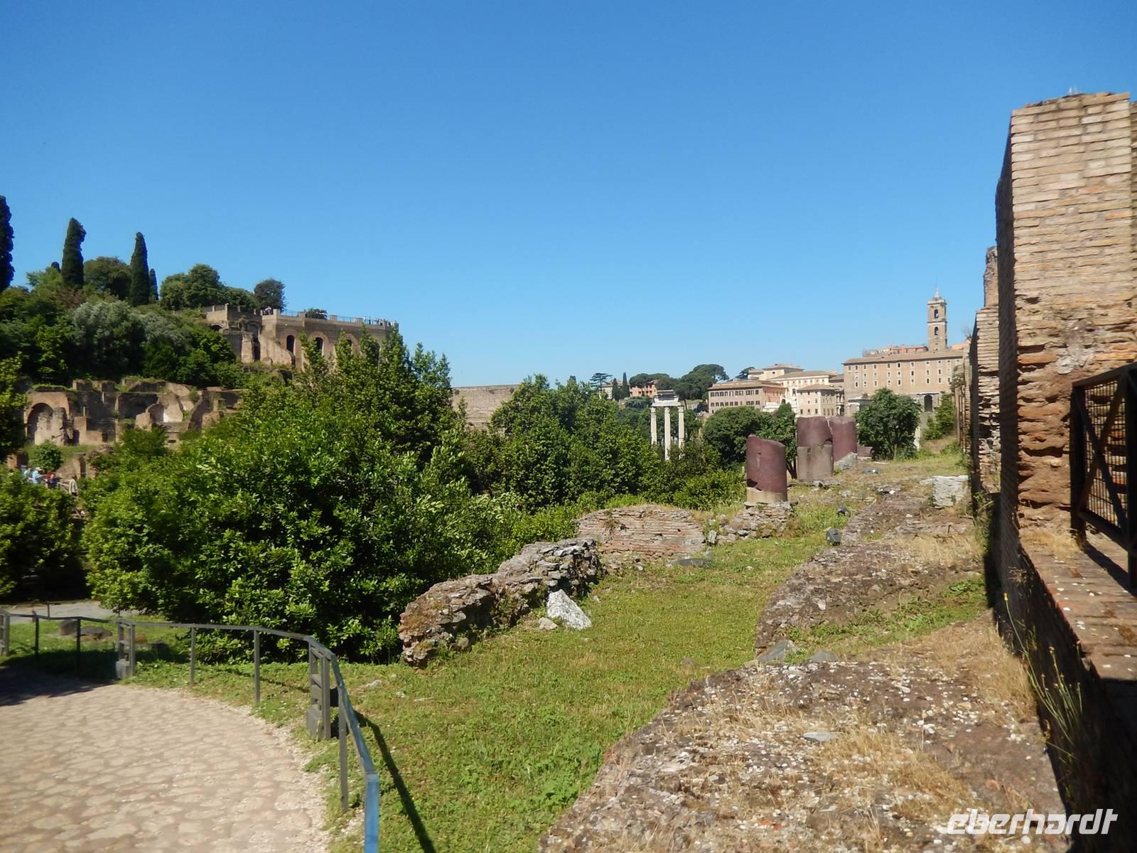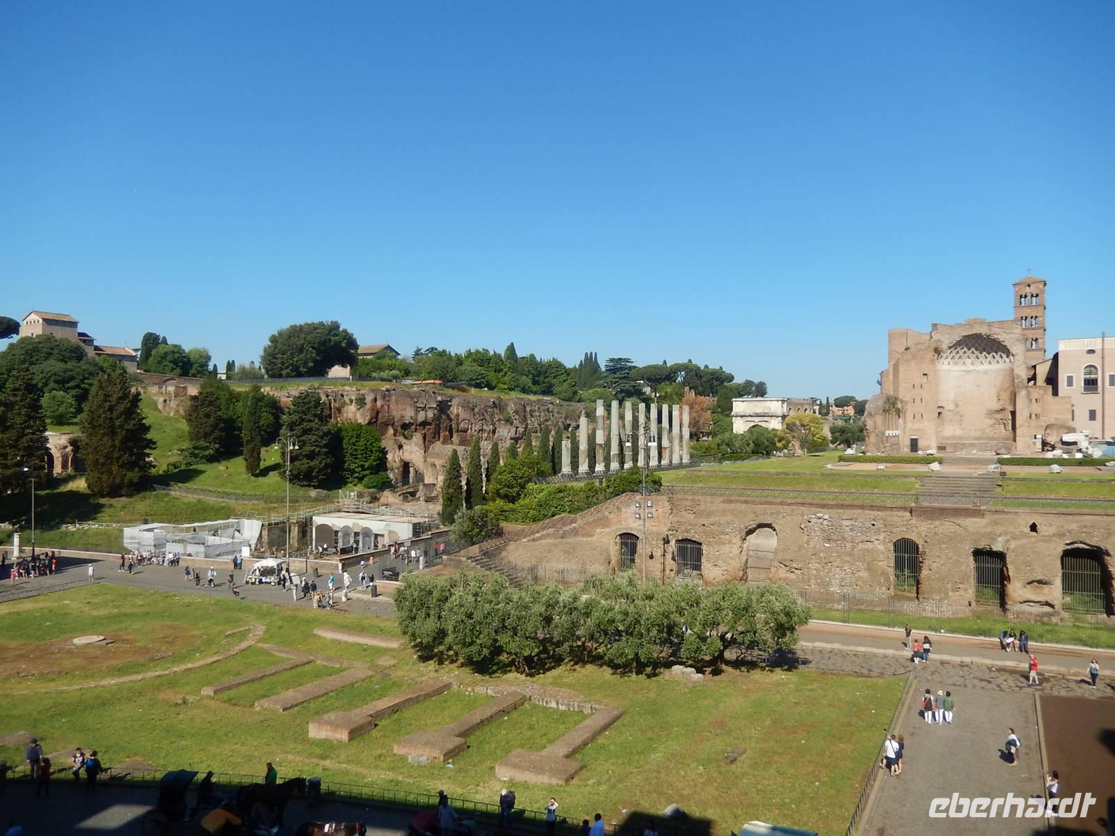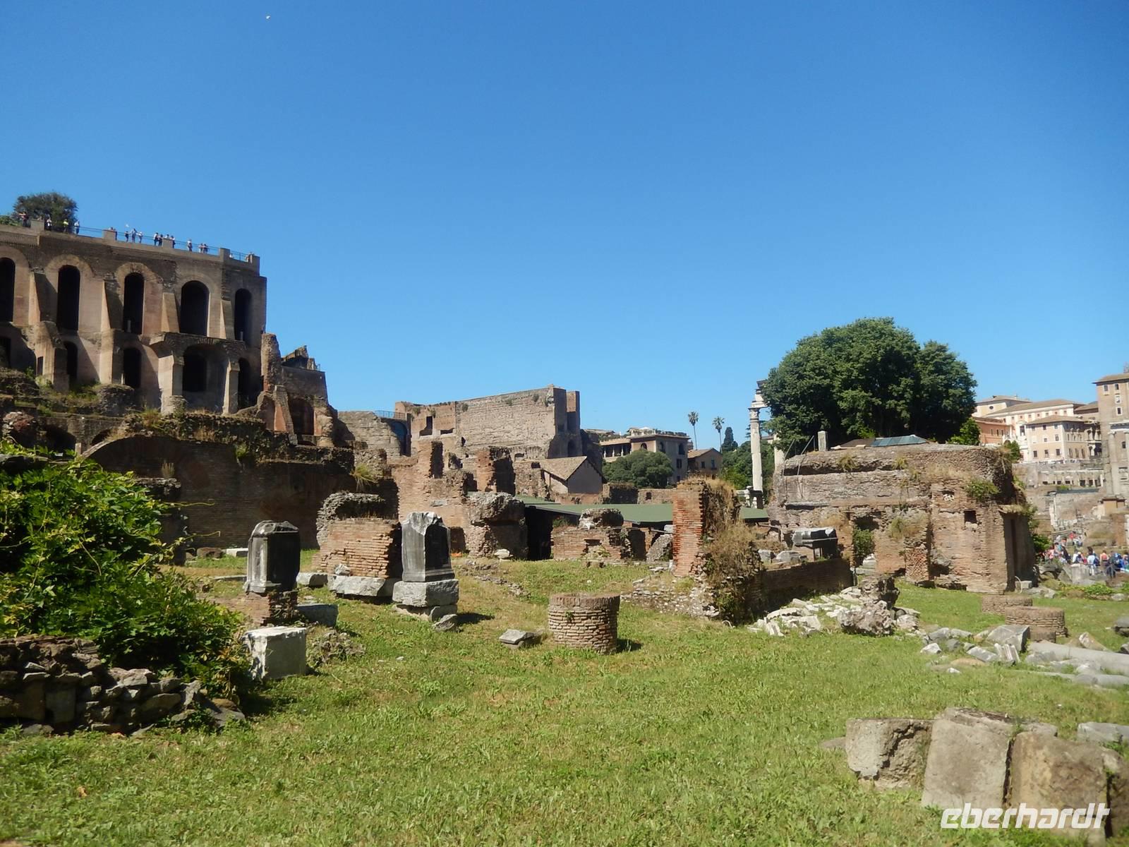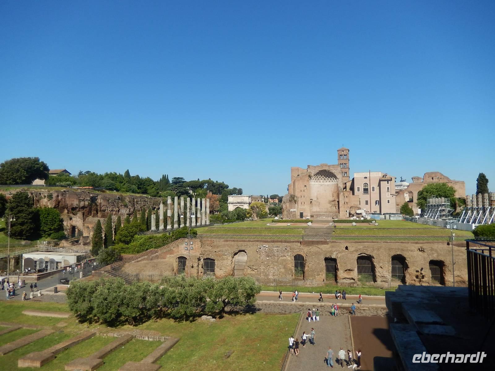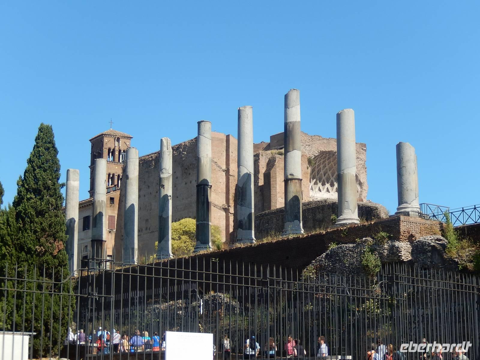 Von hier konnten wir auch weitere Ruinen, wie die der Basilica Iulia und dem Saturntempel.