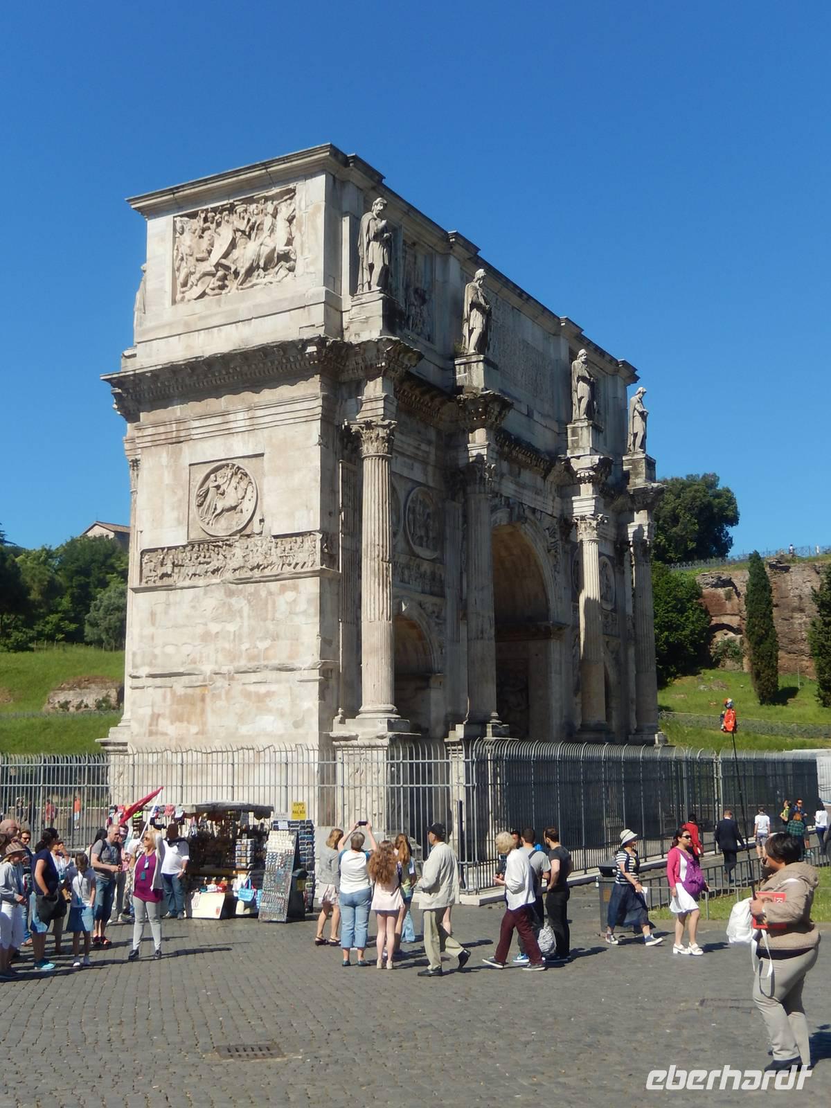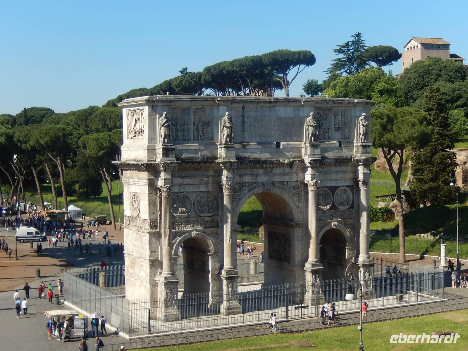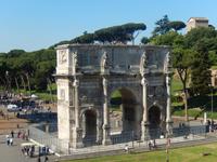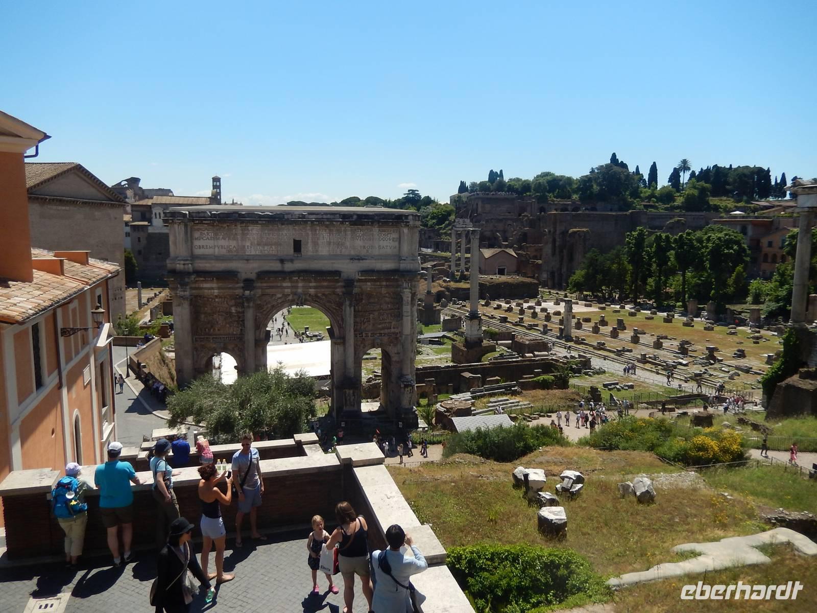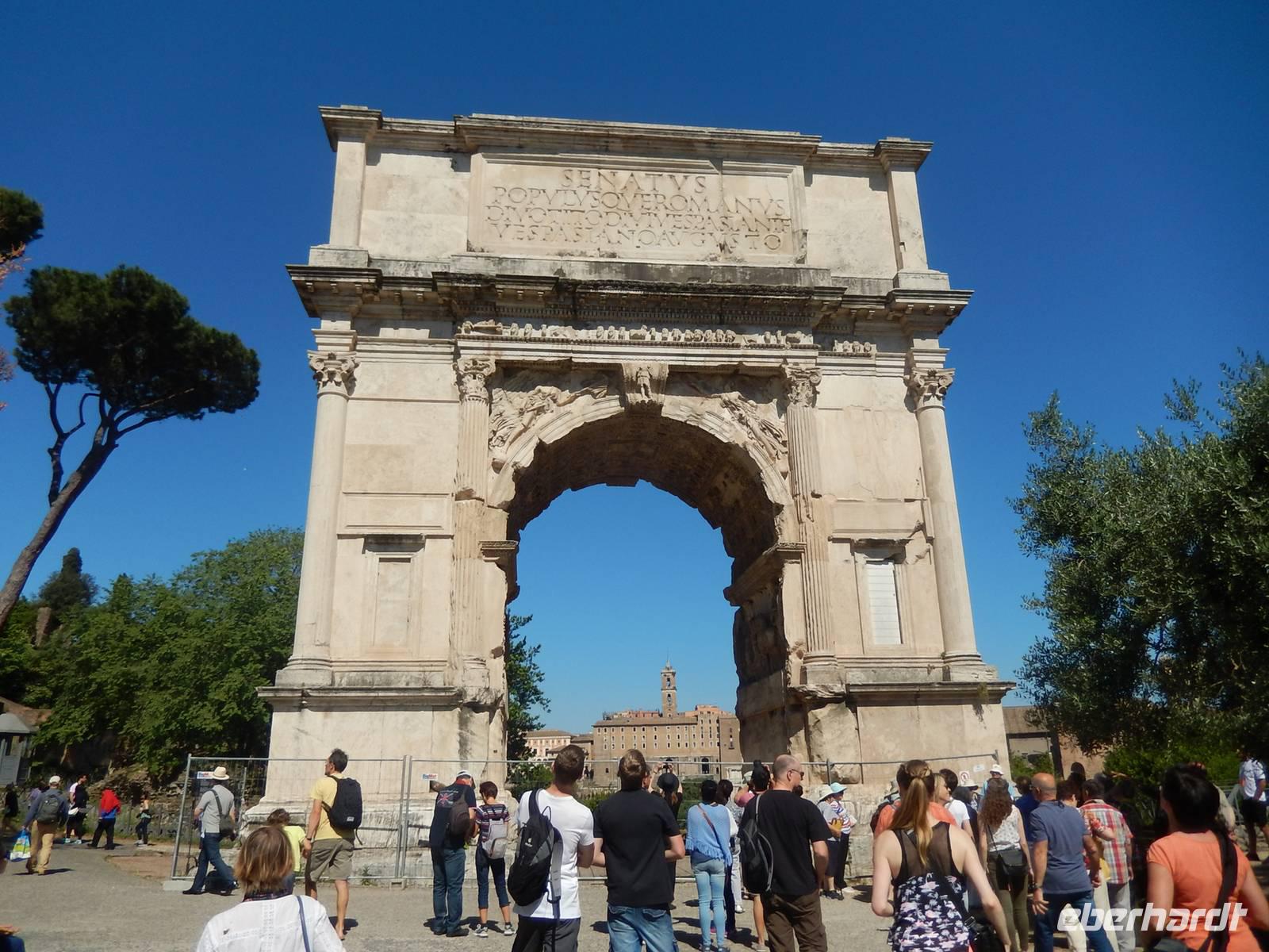 Das Kolosseum war natürlich ein echter Höhepunkt, aber unser Tag war noch lange nicht vorbei! Vom Zentrum der antiken Unterhaltungskunst war es nur ein Katzensprung bis zum Zentrum des antiken gesellschaftlichen Lebens. Vorbei am Konstantinsbogen und den Ruinen des Venustempels spazierten wir mit Marilisa zum Titusbogen, der heute am Eingang zum Forum Romanum steht. Von diesem aus hatten wir eine schöne Aussicht über das Forum, die wir gleich für ein Gruppenfoto nutzten.
