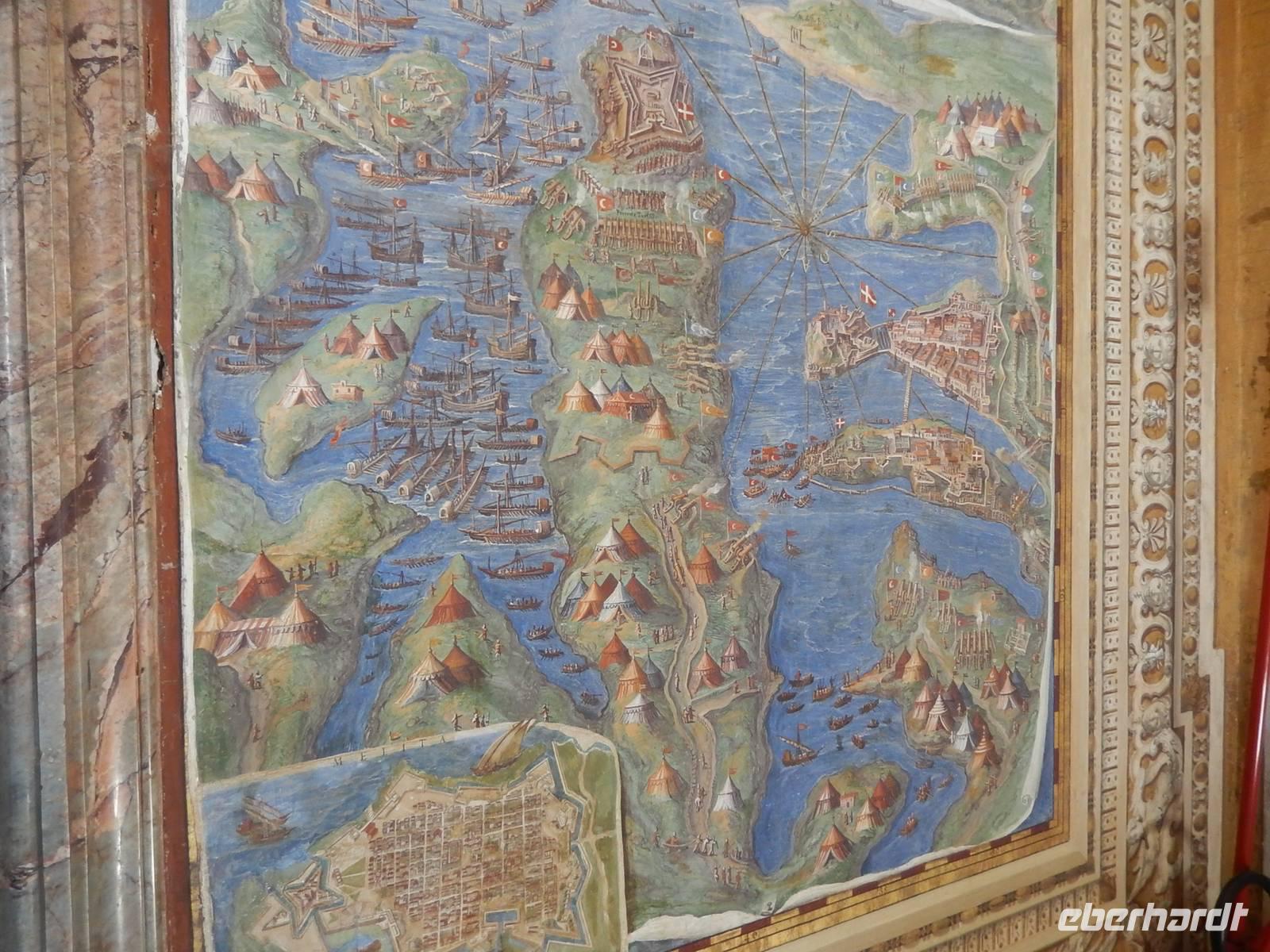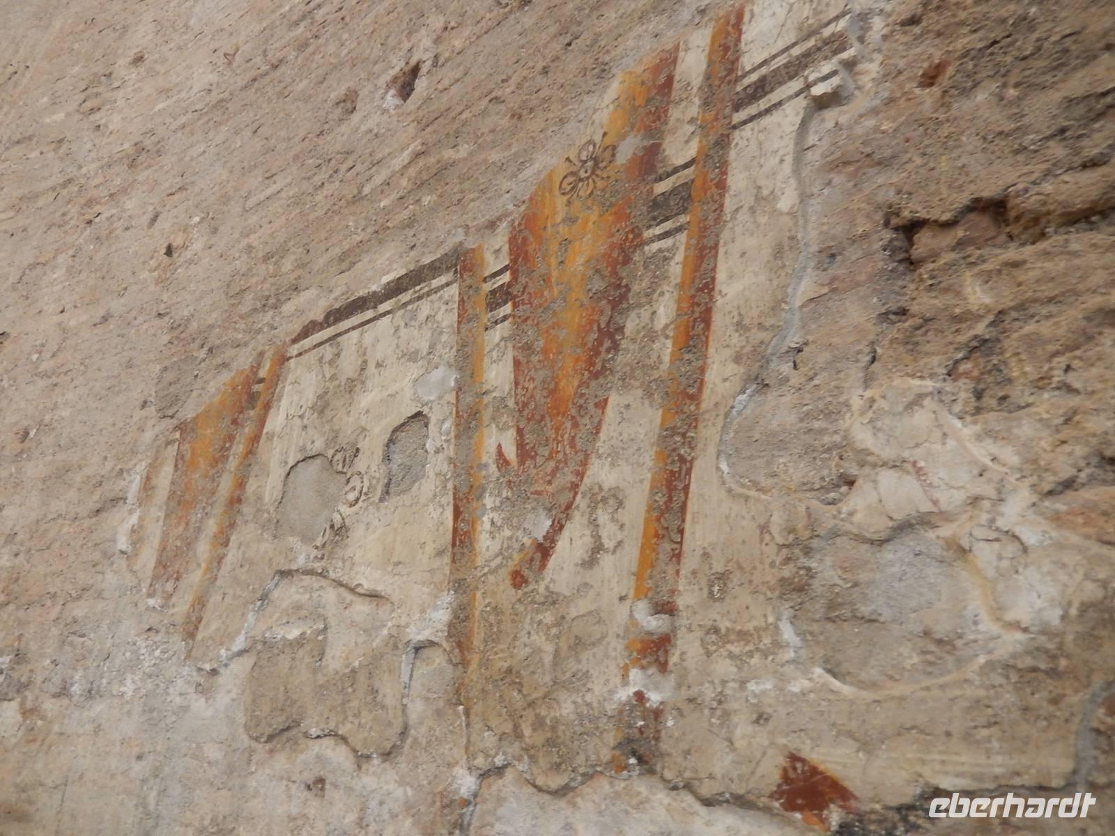 Wir stiegen zunächst eine steinerne antike Rampe hinauf bis zur Grabkammer des ehemaligen Mausoleums. Es folgten die aufgesetzten Bauten der Burg, mit wunderbaren Fresken, der ehemaligen Schatzkammer und der Terrasse ganz oben auf der Burg. Hier legten wir unsere heutige Mittagspause ein, es gibt auf der Burg eine kleine Cafeteria, von der aus man eine ganz wunderbare Aussicht genießen kann.