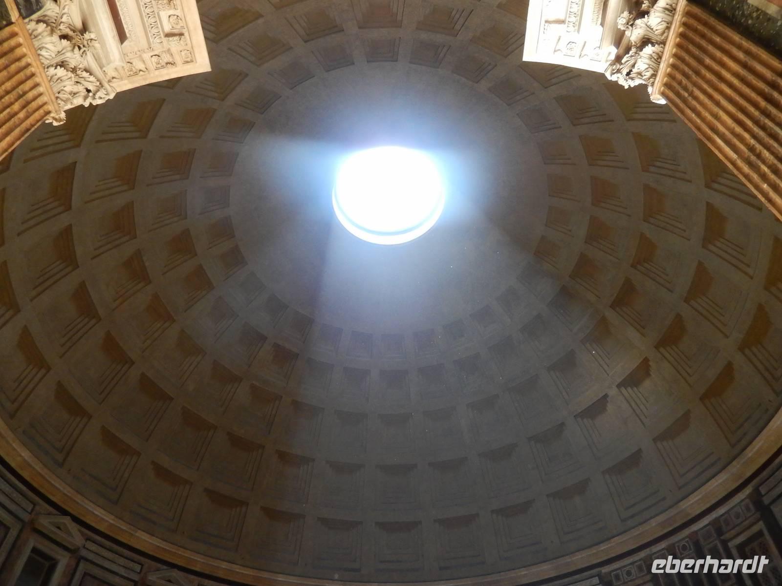 Zwischen den Statuen von Castor und Pollux stiegen wir den Hügel wieder herab und gingen am Piazza Venezia und dem dort thronenden italienischen Nationaldenkmal vorbei bis zum Pantheon. Der ehemalige Tempel ist heute das am besten erhaltene Bauwerk der gesamten römischen Antike, seine Erhaltung verdankt er der Umwandlung in eine Kirche im Jahre 609 n. Chr. Wir bestaunten natürlich vor allem die gewaltige Kuppel mit dem großen Loch in der Mitte, die bis heute die größte, nicht durch Stahl verstärkte Steinkuppel der Welt ist.