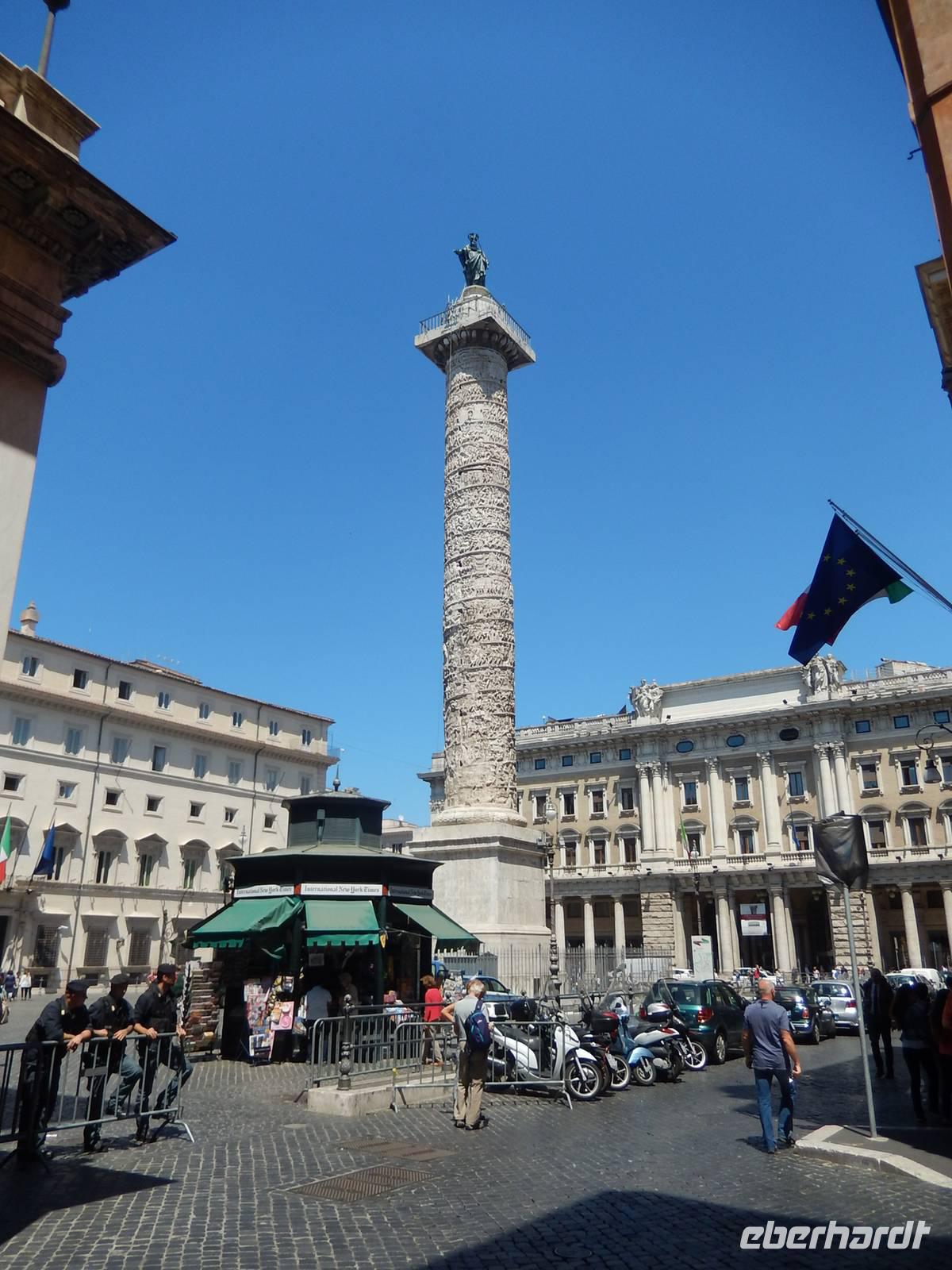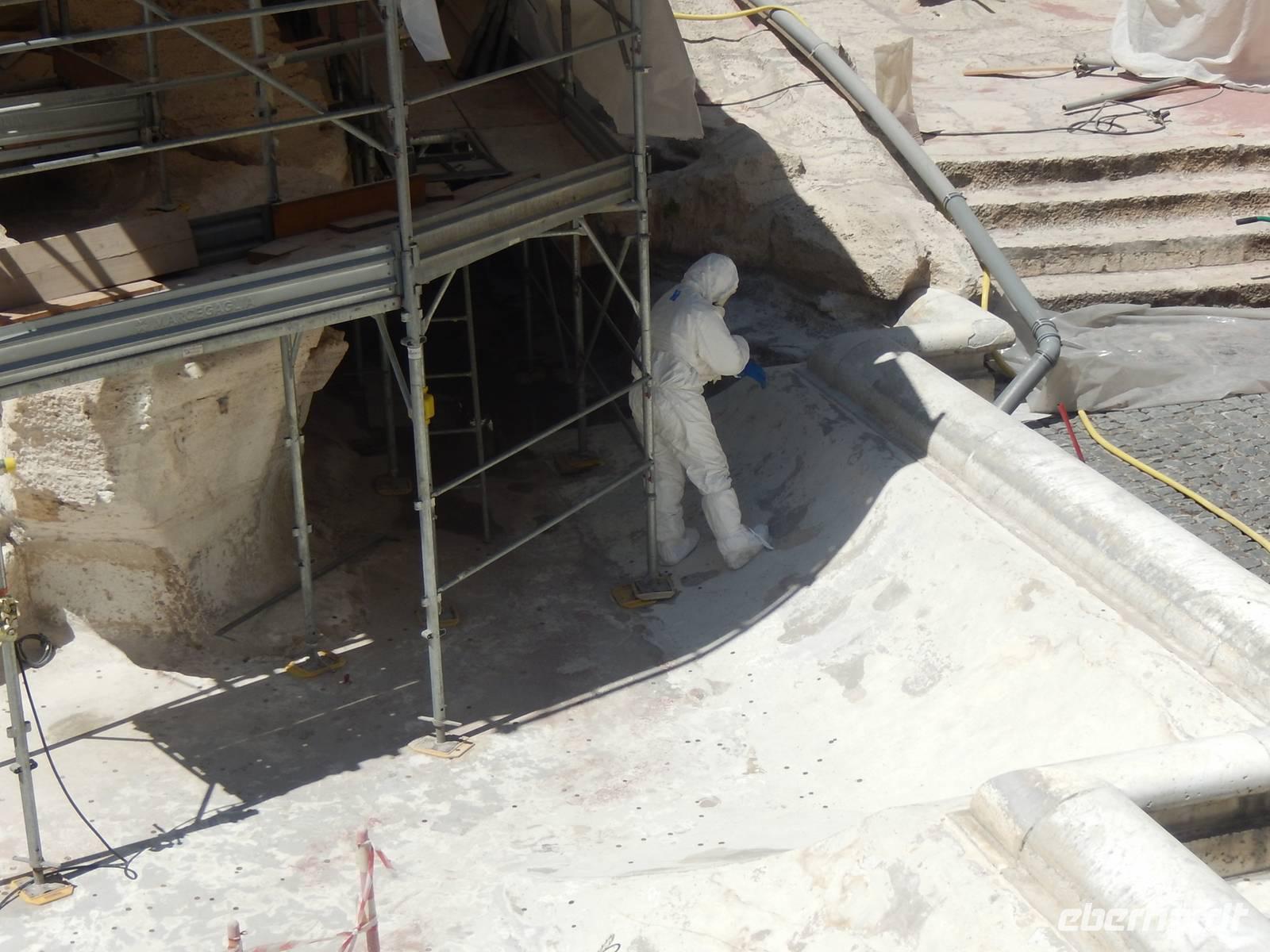 Vom Piazza della Rotonda aus wollten wir nun noch einige "neuere" Bauwerke begutachten, um unseren heutigen Rundgang zu beenden. Unser Weg führte uns vorbei an der Siegessäule Marc Aurels durch ein kleines römische Kaufhaus, das komplett im Jugendstil gehalten war, bis hin zum Trevi Brunnen. Leider konnten wir nur eine Idee von dem gewaltigen Brunnen bekommen, denn er wird seit 2014 restauriert. Über ein Stahlgerüst konnten wir dafür über dem Brunnen entlanglaufen und der Restauration ein wenig beiwohnen. Durch viele kleine, aber hohe Gässchen wanderten wir weiter zum Piazza di Spagna und beendeten unseren heutigen Rundgang an der Spanischen Treppe. Marilisa erklärte uns den Weg zum Hotel - wir konnten zwischen einem weiteren Spaziergang und der Metro wählen.