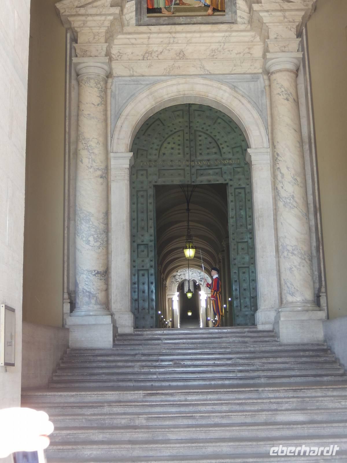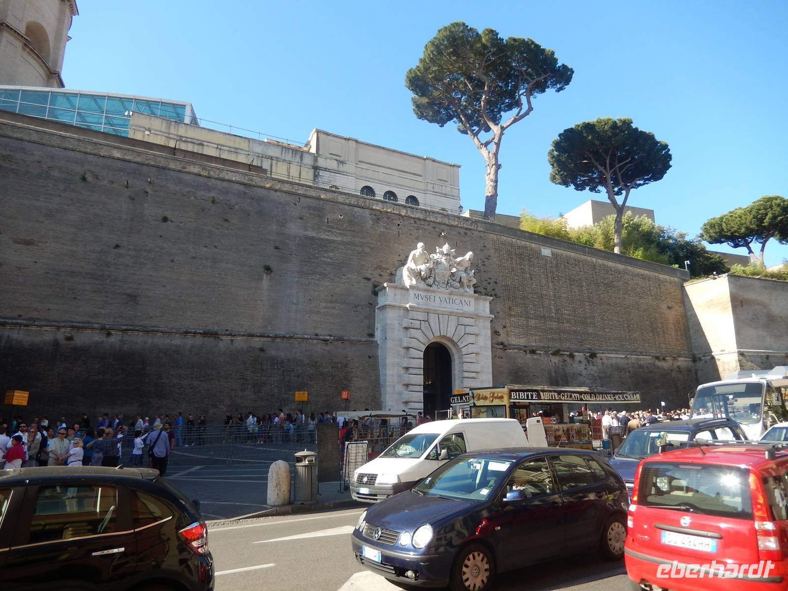 Auch der nächste Tag hielt etwas ganz Besonderes für uns parat: Den Besuch der Vatikanischen Museen. Schon an den vorigen Tagen waren wir öfters an der beeindruckenden Pforte vorbei gegangen, heute war es endlich an der Zeit, diese zu durchschreiten. Glücklicherweise hatten wir unsere Eintrittskarten bereits im Voraus gebucht, so dass wir uns nicht in die mehrere hundert Meter lange Warteschlange einreihen mussten, sondern direkt zum Eingang durchgelassen wurden.