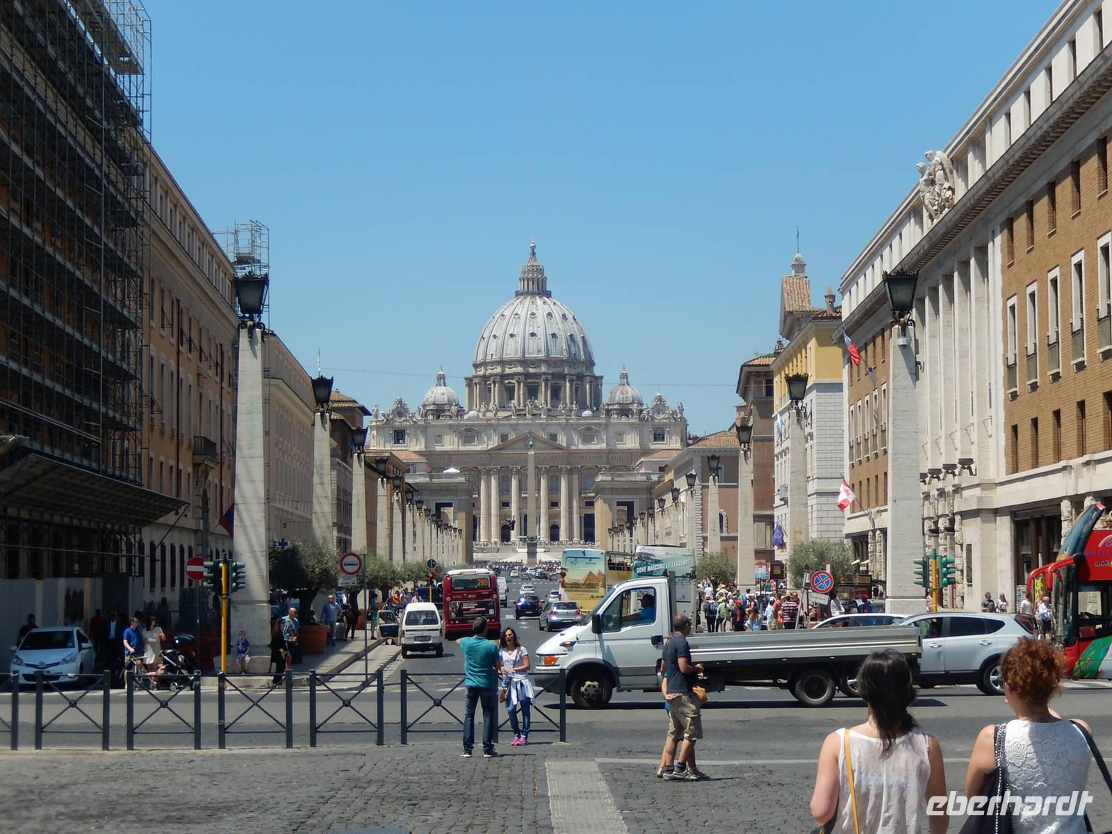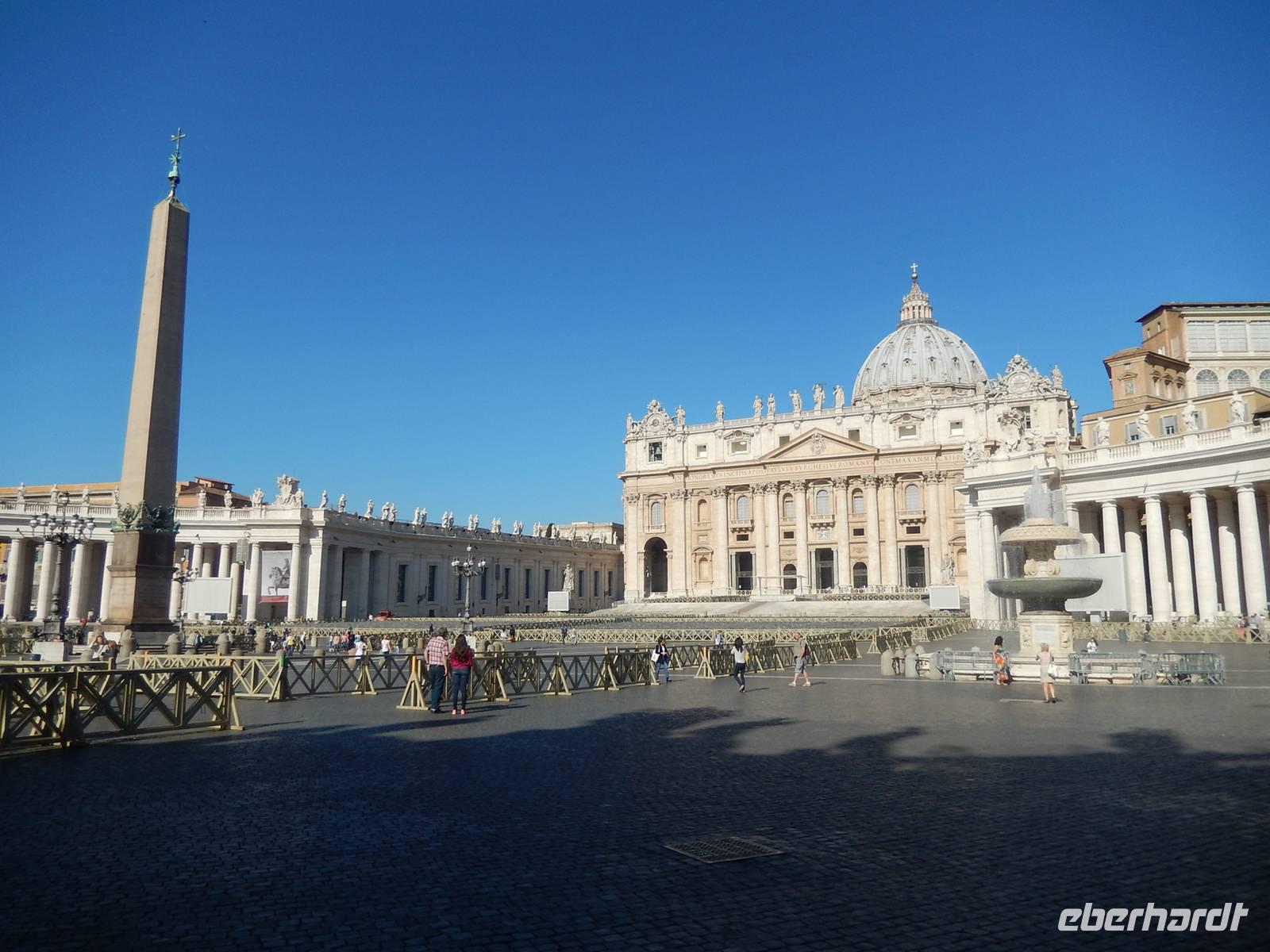 Rom war natürlich nicht nur für lange Zeit das Zentrum der antiken Welt, sondern ist mit dem heutigen Vatikan auch das Zentrum der katholischen Welt. Natürlich muss man daher auf seiner Romreise auch die christliche Seite der ewigen Stadt kennenlernen. Genau das war heute unser Ziel. Am Vortag hatten wir uns mit Marilisa einen Treffpunkt auf dem Petersplatz vereinbart. Vom Hotel aus gingen wir alle zu Fuß dorthin, den Weg kannten wir ja bereits.