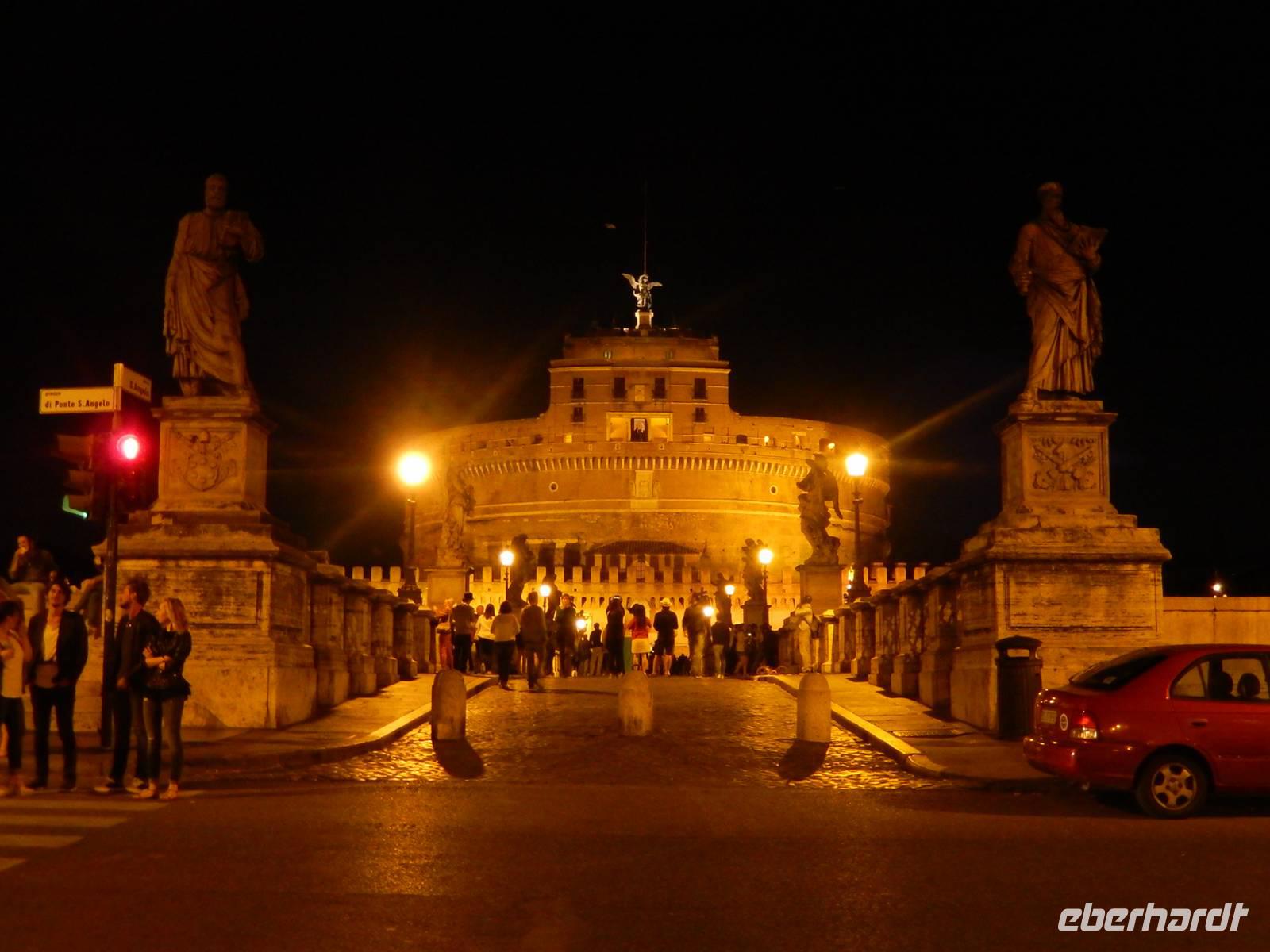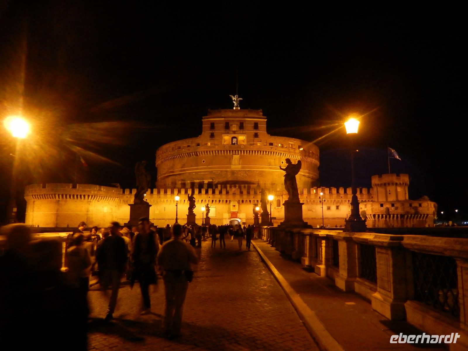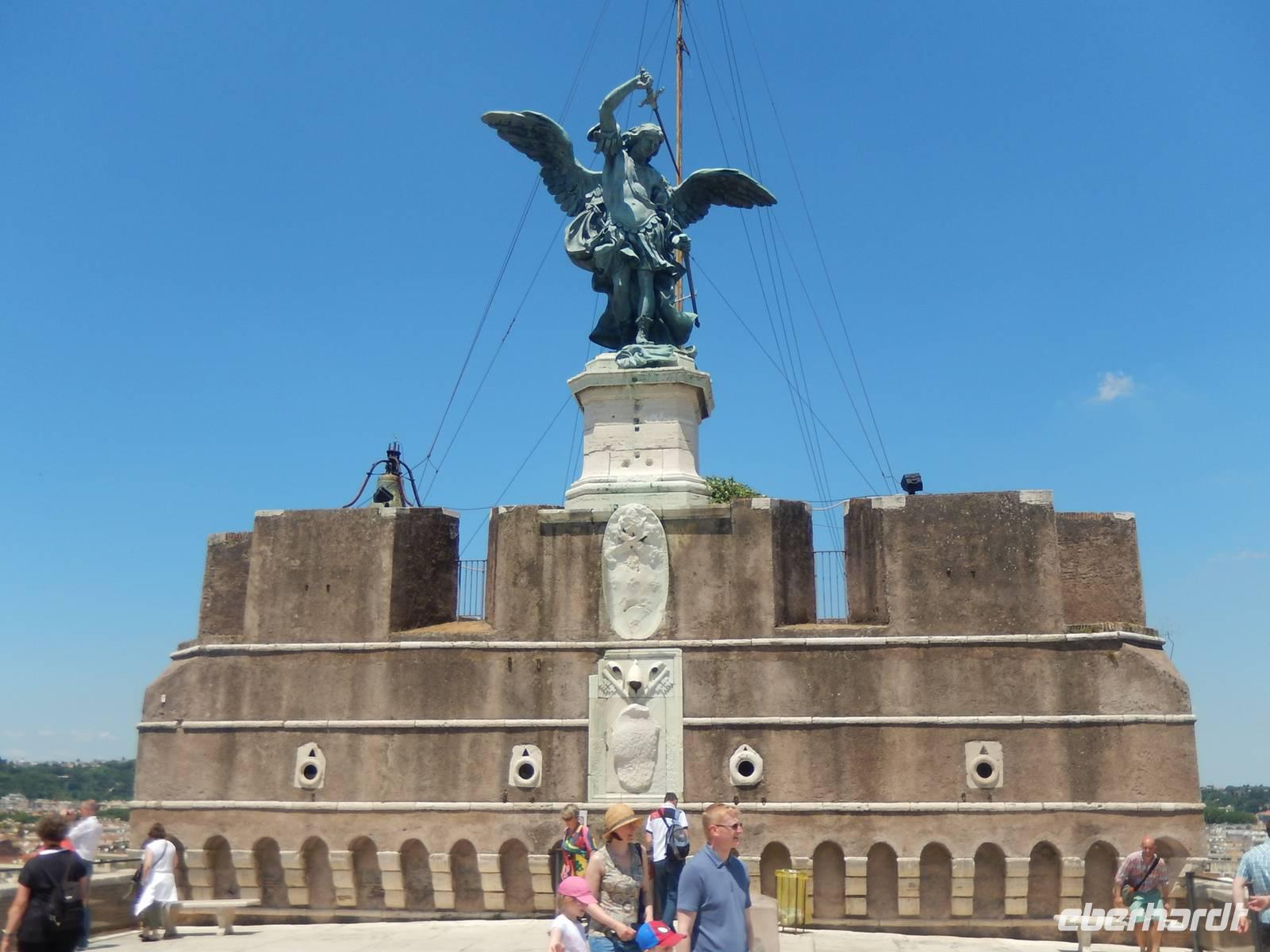 Das ehemalige Mausoleum des Kaisers Hadrian war im 6. Jahrhundert aufgrund seiner günstigen strategischen Lage zur Festung ausgebaut worden. Später wurde die Engelsburg durch einen Geheimgang in der Mauer mit dem Vatikan verbunden. Über die Jahre flohen immer wieder Päpste durch diesen Gang bis hin zur Festung. Entlang der Via della Conciliazione, also genau parallel zu dieser Mauer spazierten wir bis hin zur Engelsburg. Diesen Namen verdankt sie übrigens einer Erscheinung des Erzengels Michael, der hier das Ende der Pest verkündet haben soll. Die Statue des Engels an der Spitze der Burg erinnert noch heute an diese wahr gewordene Prophezeiung.