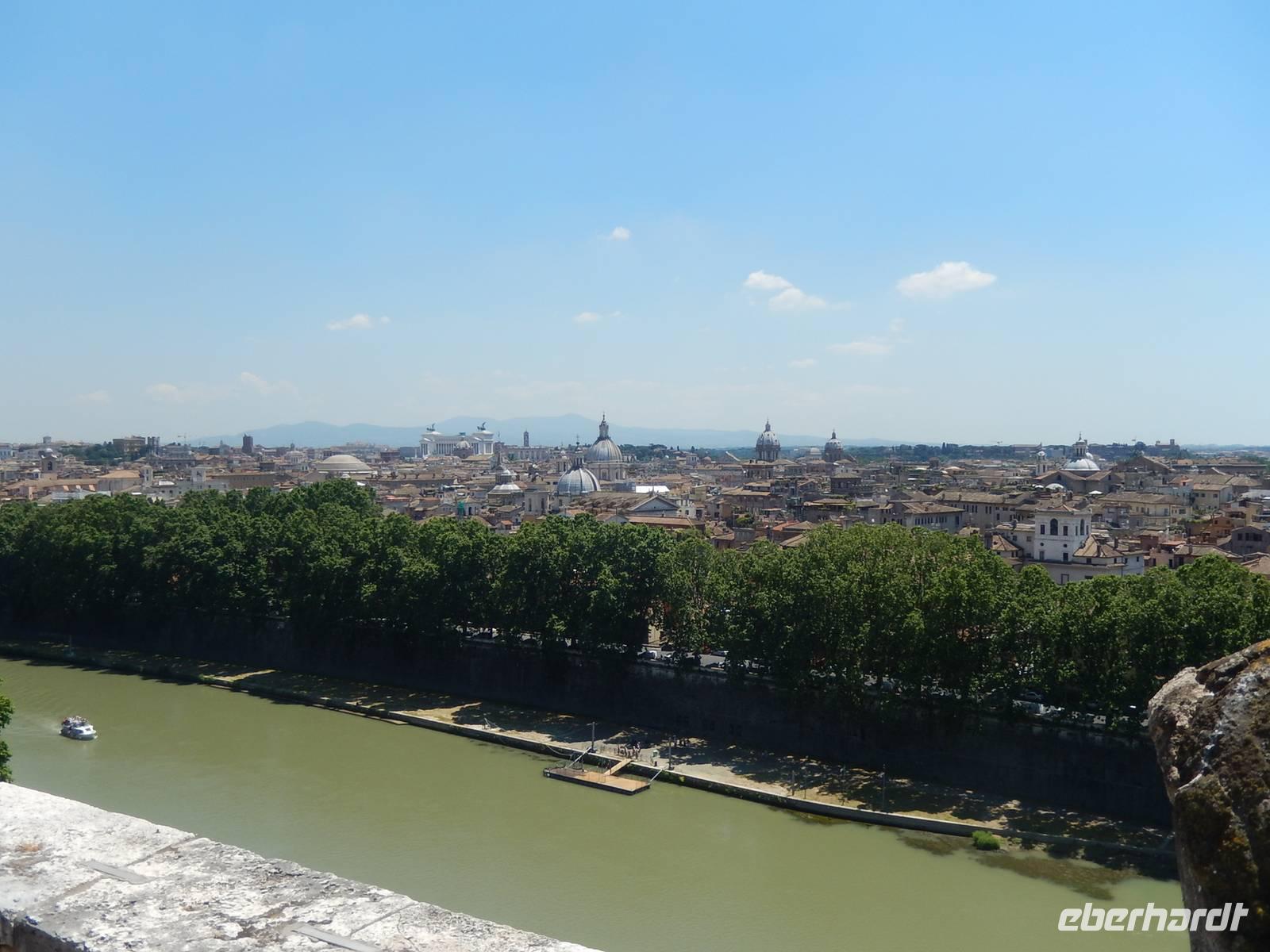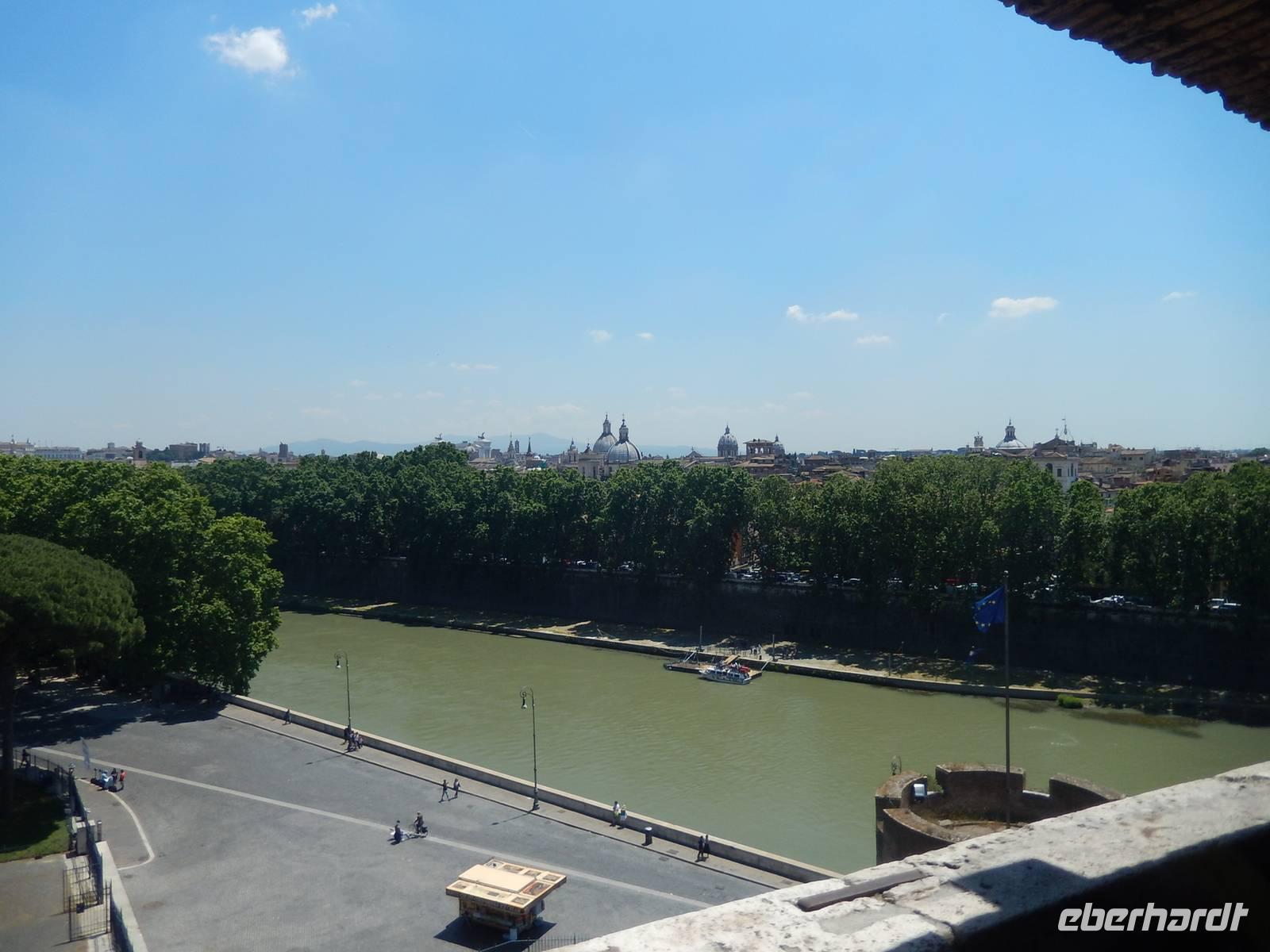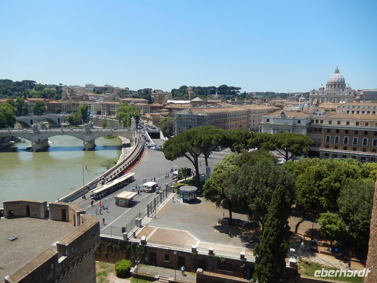 Das ehemalige Mausoleum des Kaisers Hadrian war im 6. Jahrhundert aufgrund seiner günstigen strategischen Lage zur Festung ausgebaut worden. Später wurde die Engelsburg durch einen Geheimgang in der Mauer mit dem Vatikan verbunden. Über die Jahre flohen immer wieder Päpste durch diesen Gang bis hin zur Festung. Entlang der Via della Conciliazione, also genau parallel zu dieser Mauer spazierten wir bis hin zur Engelsburg. Diesen Namen verdankt sie übrigens einer Erscheinung des Erzengels Michael, der hier das Ende der Pest verkündet haben soll. Die Statue des Engels an der Spitze der Burg erinnert noch heute an diese wahr gewordene Prophezeiung.