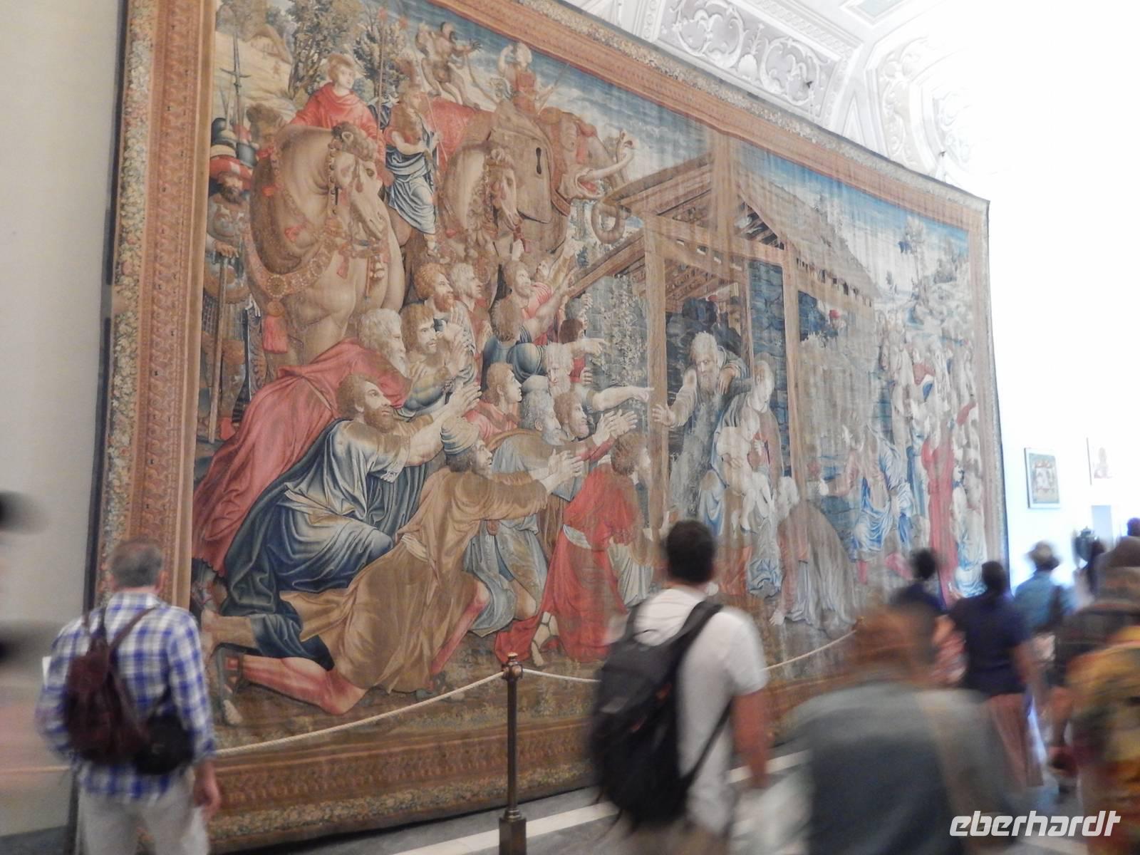In dem riesigen Museum war wirklich für jeden Geschmack etwas dabei. Wir sahen uns die ehemaligen Papamobile an, sahen wunderbare Gärten und Innenhöfe, Skulpturen aus vielen verschiedenen Epochen, Gemälde, Wandteppiche, alte Landkarten und vieles vieles mehr. Das i-Tüpfelchen des Ganzen war natürlich unser Besuch der sixtinischen Kapelle, den Ort, an dem das Konklave abgehalten wird, mit seinen atemberaubenden Malereien. Es würde viel zu lange dauern, wirklich alles aufzuzählen, was wir dort sahen. Man muss diesen Ort wirklich mit eigenen Augen gesehen haben, um ihn erfassen zu können. Nach unserer Führung mit Marilisa hatte natürlich jeder noch Zeit, sich weiter in den Museen umzusehen.