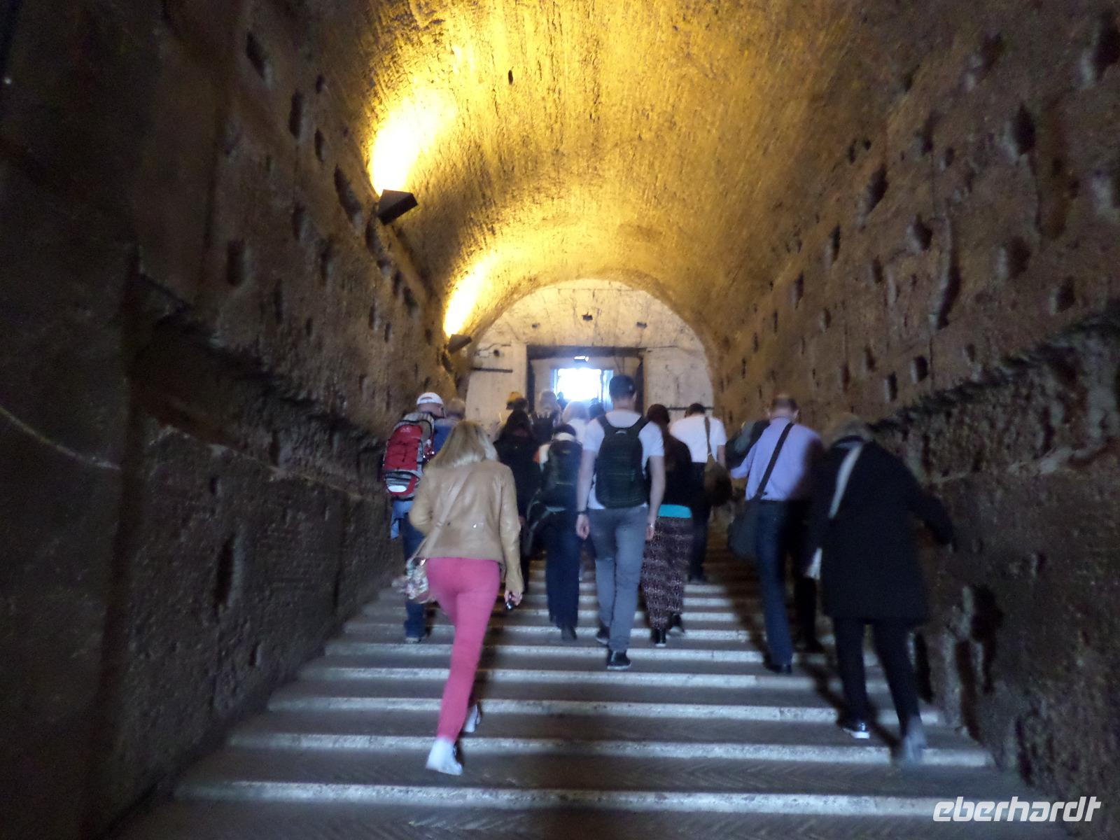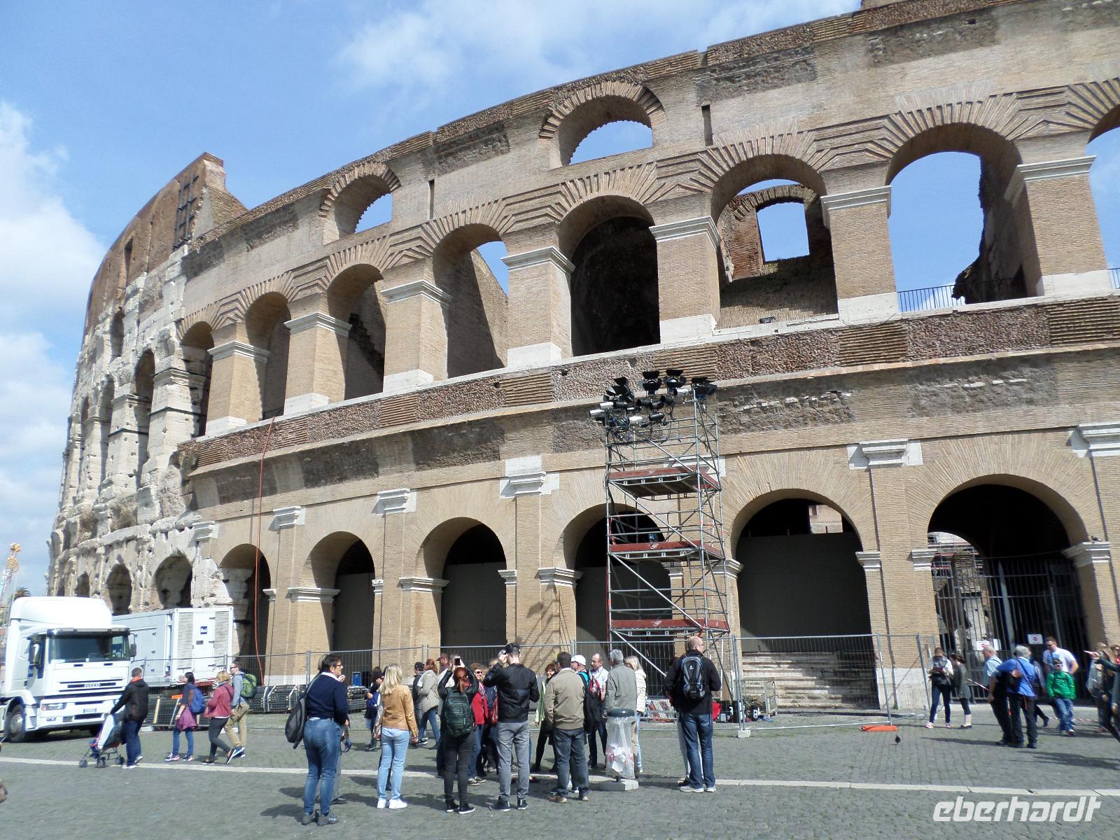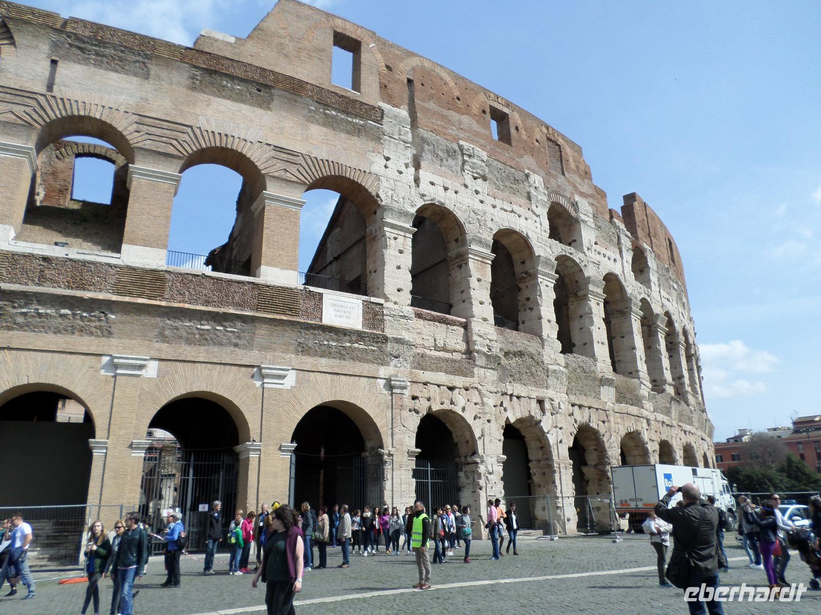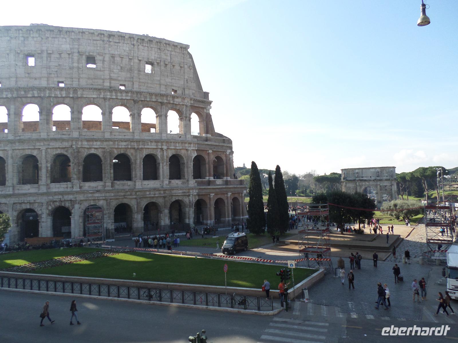 Nun stand unser umfangreiches 3-tägiges Programm in Rom an. Der erste Tag in Rom führte uns mit dem Linienbus und der Metro zum Kolosseum. Dort trafen wir uns mit unserer netten Stadtführerin Agnieszka und sofort starteten wir mit dem Besuch des Kolosseums. Dieses wurde von Kaiser Titus im Jahre 80 n. Chr. eingeweiht. Die Bauarbeiten dauerten nur acht Jahre. Die Spiele im Amphitheater umfassten vor allem Gladiatorenkämpfe und Kämpfe zwischen Gladiatoren und Tieren. Nach der Innenbesichtigung des Kolosseums ging es hinein in das Forum Romanum, dem ältesten römischen Forum und Mittelpunkt des politischen, wirtschaftlichen, kulturellen und religiösen Lebens. Anschließend "kletterten" wir den Kapitolshügel hinauf. Er ist einer der sieben Hügel Roms und war das erste Kapitol des römischen Reiches. Unsere Mittagspause nutze der überwiegende Teil unserer Gruppe anschließend, um mit einem gläsernen Lift auf das benachbarte Nationaldenkmal zu fahren - einmal oben angekommen, ist der Blick auf die Dächer Roms einfach nur gigantisch! Als im Jahr 1870 die Italiener sich einigten und das gemeinsame Königreich gründeten, suchten sie einen geeigneten Ort, um den Monarchen des Resorgimento, Vittorio Emanuele II., ein würdiges Denkmal zu setzen. Sie wählten den geografischen Mittelpunkt Roms und so entstand zwischen 1885 und 1911 auf der Piazza Venezia der Altar des Vaterlandes, der den Platz seitdem überschattet. Die Beinamen des Denkmals, etwa die "große Schreibmaschine" oder das "große Gebiss", sprechen wohl für sich. Nach der Mittagspause auf dem Kapitol führte uns unser Spaziergang vorbei am Trajans-Forum, dem schönsten aller Kaiserforen. Seine Anlage war vielleicht schon von Domitian vorgesehen, da dieser bereits begonnen hatte, den Sattel des Quirinal-Hügels abzutragen. Es war ein bemerkenswerter Arbeitsprozess, da der Sattel dieses Hügels etwa dreißig Meter hoch war. Heute lehnen sich die Trajanischen Märkte halbkreisförmig aufsteigend an den Abhang des Quirinal an. Deren Bau war zunächst nur aus Stabilitätsgründen erforderlich, um einen Erdrutsch zu vermeiden. Der endgültige Entwurf stammt aber erst von dem großen Architekten des Trajan, Apollodorus von Damaskus. Durch einige Altstadtgassen gelangten wir schließlich zum Trevi-Brunnen, einen der schönsten Barockbrunnen Roms. Die meisten von uns warfen eine Münze in den Trevi-Brunnen. Das ist ja wohl das Mindeste, was man von einem Rom-Touristen verlangen kann! Den Brauch, so heißt es, hätten römische Soldaten erfunden, die nach der italienischen Reichsgründung ins Heer der Piemonteser eingezogen wurden. Mit ihren Freundinnen setzten sie sich auf den Brunnenrand, schöpften Wasser mit einem Trinkglas und warfen anschließend das Glas über die Schulter in die Fontana di Trevi. Übrigens ist Wasser so ziemlich das Einzige, was es umsonst gibt in Rom. "Die Wasserbehörde hat dafür Sorge zu tragen, dass die öffentlichen Brunnen möglichst ohne Unterbrechung bei Tag und Nacht ihr Wasser zum Nutzen des Volkes fließen lassen", heißt es in einem bis heute nicht aufgehobenen Senatsbeschluss aus dem 1. Jahrhundert. Noch heute gibt es rund zweitausend Trinkbrunnen neben Hunderten von Prunkbrunnen. Die klassische "fontanella" hat eine Wolfsschnauze, aus der kühles Trinkwasser rinnt und eine symbolische Brunnenzierde - die Wölfin Roma, die einst Romulus und Remus säugte, stillt unentwegt den Durst der ganzen Stadt. Wir hatten übrigens stets eine kleine Plasteflasche dabei, damit wir ständig Trinkwasser nachfüllen konnten - das spart natürlich auch eine Menge Geld... Unser offizielles Besuchsprogramm für heute endete an der Spanischen Treppe. Eigentlich heißt die Spanische Treppe "Scalinata di Trinita dei Monti", der deutsche Name leitet sich von der Piazza di Spagna ab, an der die Treppe gelegen ist. Leider waren wir etwas enttäuscht vom Anblick der Treppe, denn diese befand sich mitten in einer umfassenden Sanierungsmaßnahme, die voraussichtlich noch ein paar Wochen andauern wird. Geplant sind, so erfuhren wir, vor allem die Säuberung und die Restaurierung der Treppe sowie eine neue Beleuchtung und ein neues Videoüberwachungssystem. Schade, aber vielleicht kommen wir irgendwann wieder, wenn die Spanische Treppe in vollem Glanz erstrahlt ...! Am späten Nachmittag hatten wir noch etwas Freizeit und anschließend ging ein sehr interessanter Besichtigungstag mit tollen Eindrücken zu Ende.