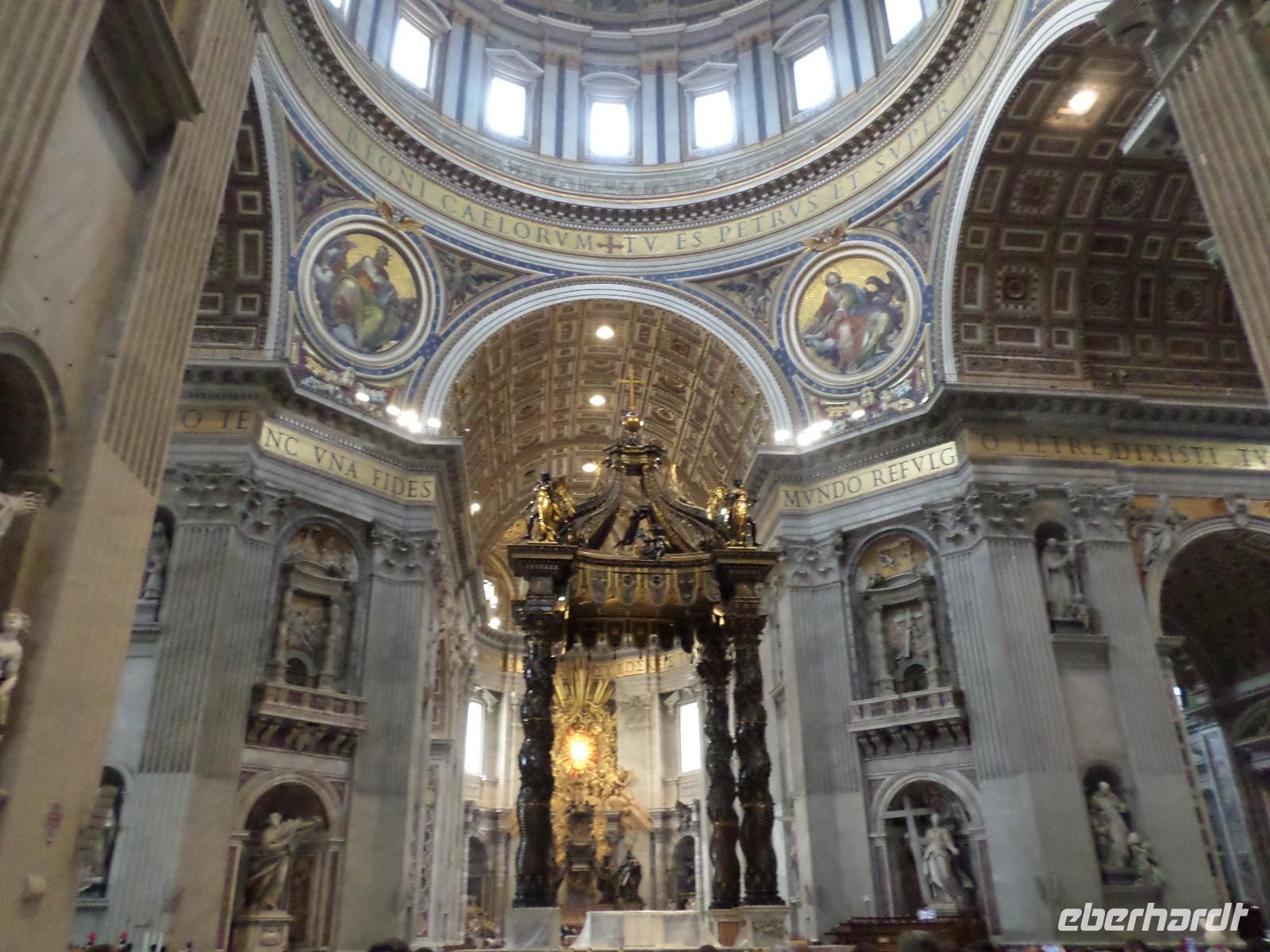 Der heutige Vormittag stand ganz im Zeichen des Vatikanstaates. Zunächst trafen wir uns mit unserer heutigen Stadtführerin Sylvia am Eingang zu den Vatikanischen Museen - hier waren riesige Warteschlangen zu sehen! Zum Glück hatten wir eine Vorreservierung und so ersparten wir uns Wartezeiten von bis zu 3 Stunden! Natürlich konnten wir auch nur einen kleinen Teil der Vatikanischen Museen besichtigen, denn ansonsten hätten wir mehrere Tage dafür benötigt! Das Highlight in den Vatikanischen Museen ist zweifellos die Sixtinische Kapelle, sie enthält mehrere der berühmtesten Gemälde der Welt und ist auch der Ort, an dem das Konklave abgehalten wird. Besondere Berühmtheit erlangte die Kapelle durch ihre Ausschmückung mit Fresken. Die Deckenmalereien malte Michelangelo Buonarotti zwischen 1508 und 1512 im Auftrag von Papst Julius II. Sie wurden 1512 enthüllt und zeigen Szenen aus der Genesis mit 115 Überlebensgroßen Charakteren - echt beeindruckend! Im Anschluss an den Besuch der Sixtinischen Kapelle stand ein weiterer Höhepunkt des heutigen Tages, die Besichtigung des Petersdomes, an. Der Petersdom ist die Kirche der Superlative, Zentrum der Christenheit und Ziel der Pilger aus aller Welt. Wer Rom besucht, ob gläubiger Christ, kunsthistorisch Interessierter oder einfach auf Entdeckungstour, kommt am Wahrzeichen der ewigen Stadt nicht vorbei. Der Grundstein wurde am 18. April 1506 gelegt und es wurde rund 120 Jahre lang gebaut. Für die Gläubigen in aller Welt gilt Sankt Peter als das Heiligtum der römisch-katholischen Kirche. Vom Herzstück des Vatikans spendet der Papst übrigens am Ostersonntag und am 1. Weihnachtsfeiertag seinen Segen "Urbi et Orbi" - der Stadt und dem Erdkreis. Der Nachmittag stand für individuelle Erkundungen zur Verfügung - viele Gäste wagten den Aufstieg auf die Kuppel des Petersdomes und wurden mit einem atemberaubenden Blick auf die Stadt belohnt!