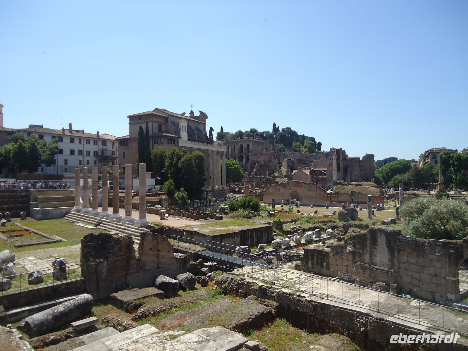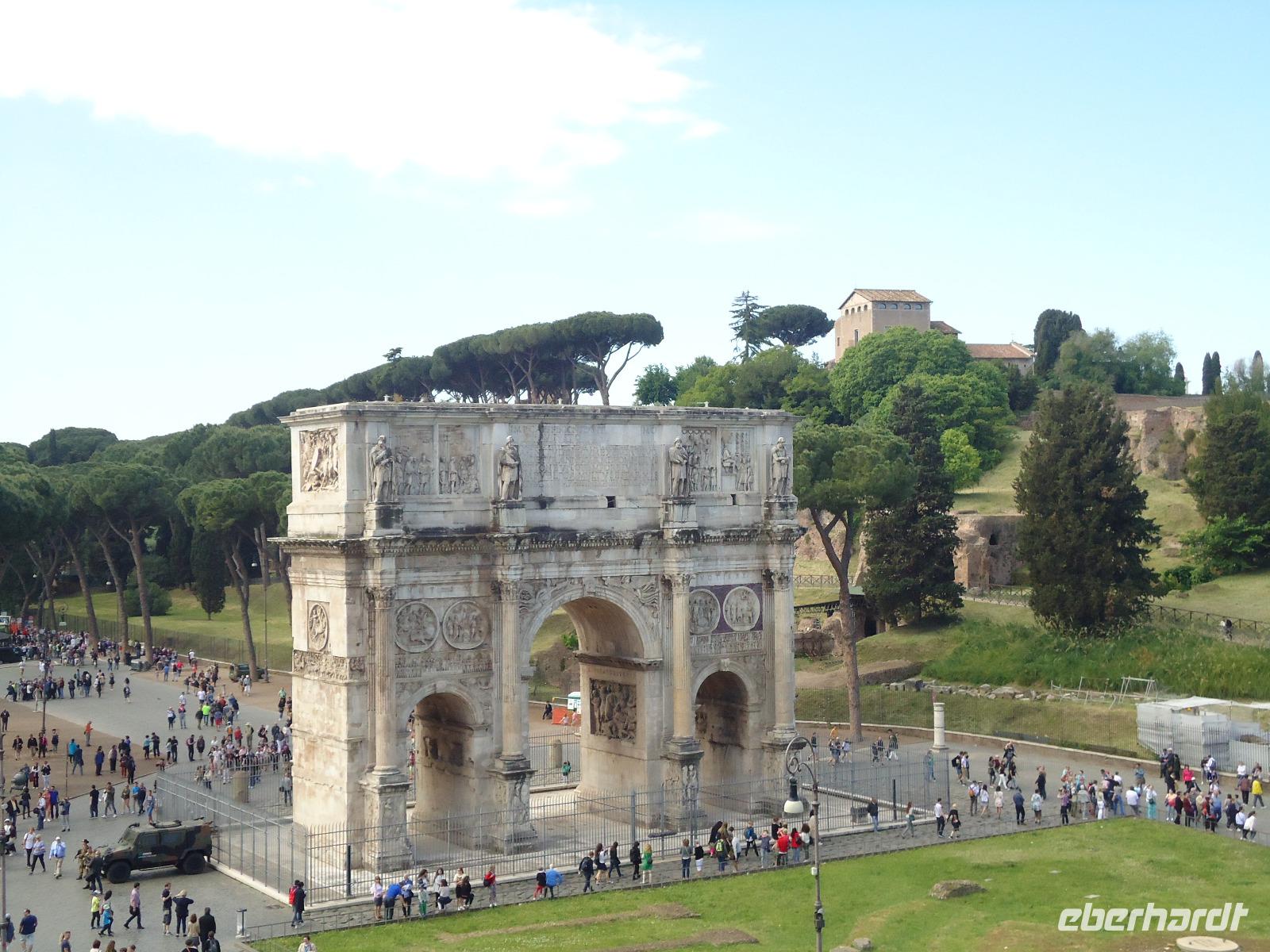 Vorbei am Konstantinbogen (hier „schießen" wir unser erstes Gruppenfoto) gehen wir zum Forum Romanum, gelegen zwischen den Hügeln Kapitol und Palatin - einst politisches, wirtschaftliches und kulturelles Zentrum des römischen Weltreiches. Es war das Herzstück dieses Reiches, wo sich das römische Alltagsleben abspielte.