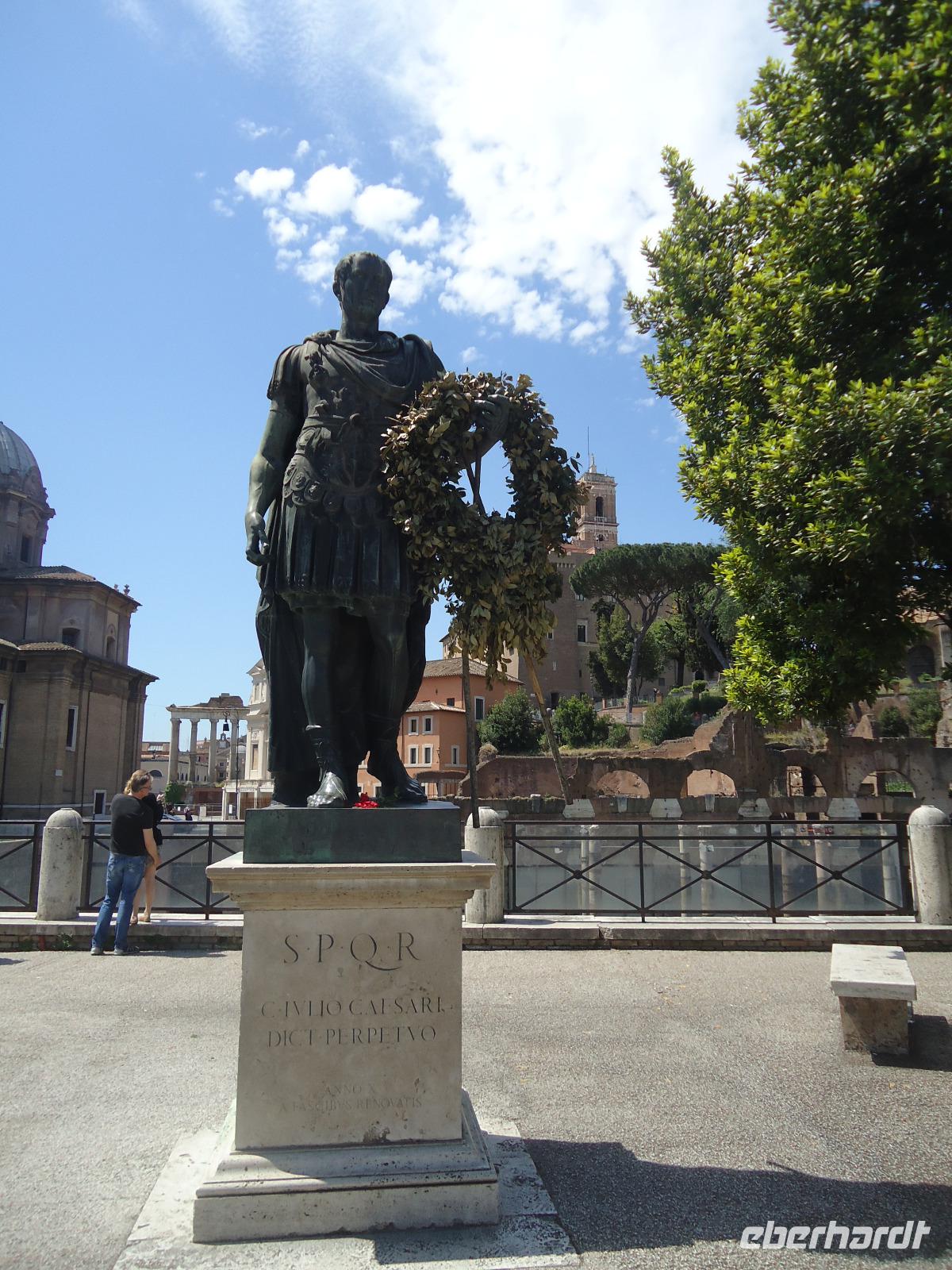 Heute ist es ein archäologischer Park mit Ruinen aus verschiedenen Epochen des römischen Reiches. Danach spazieren wir ein kleines Stück entlang der Via d.Fori Imperiali, vorbei an den Statuen von Cäsar und Kaiser Augustus und werfen einen kurzen Blick auf das ehemalige Einkaufscenter der Antike, die Trajansmärkte.