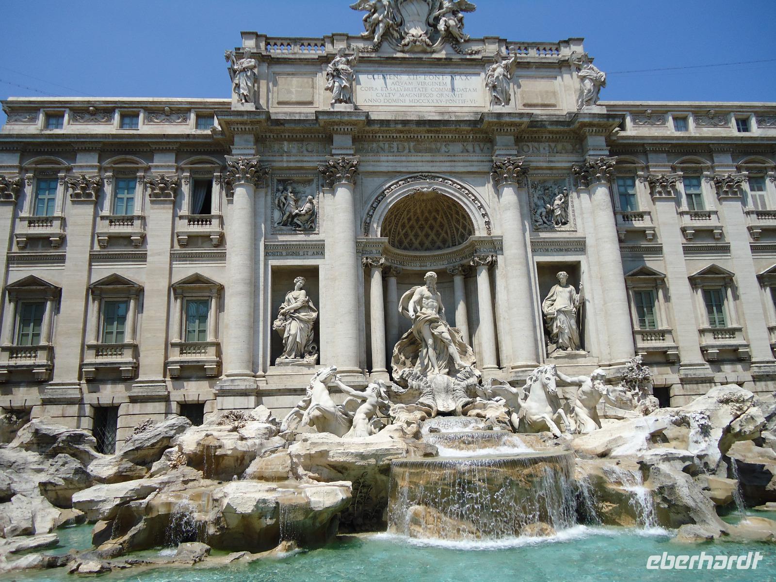 Er ist der größte und sicher auch der berühmteste Brunnen von Rom. Hier wird - sofern man kann - rund um die Uhr flaniert - pausiert - fotografiert - und es werden Münzen durch die Luft ins Wasser geworfen. Knausrig darf man dabei nicht sein, denn drei sollten es schon sein, dann und nur dann hat man ein Wiedersehen mit der Stadt am Tiber und Glück in der Liebe! Unser Jüngster, der Tillmann, probiert es - wir wünschen toi, toi, toi!