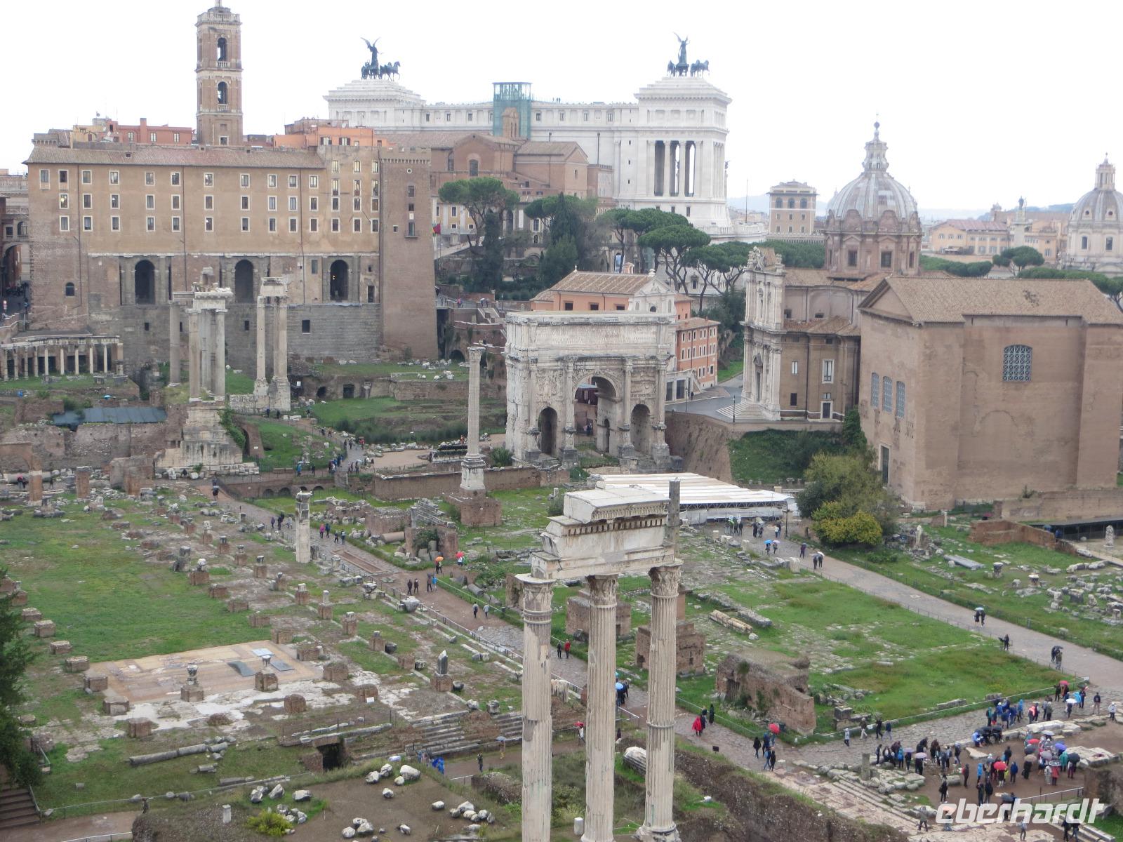 Nach dem Frühstück spazierten wir zur Metrostation Cipro und fuhren zum Kolosseum. Hier bekamen wir unseren ersten Eindruck von der Metropole und Hauptstadt Rom. Am Kolosseum angekommen, begrüßte uns Gabriele, unsere heutige Stadtführerin. Sie erklärte uns sehr detailliert die damaligen Gladiatorenkämpfe, die Geschichte und Vergangenheit der Stadt. Weiter ging es über das Forum Romanum, wo wir viel Wissenswertes über Tempel und Kirchen, Sagen und Heiligsprechungen, Kaiser und vieles mehr erfuhren. Unsere Mittagspause machten wir ein einem kleinen Cafè auf den kapitolischen Hügeln. Weiter ging es dann über die Piazza Venezia, zur Piazza Navona, Phanteon bis zum Trevi Brunnen. Dort hatten wir Zeit, uns in einer kleinen Bar bei einer heißen Schokolade aufzuwärmen. Unser Rundgang endete an der Spanischen Treppe. Hier konnte man den Nachmittag ausklingen lassen oder die schönen Geschäfte begutachten.