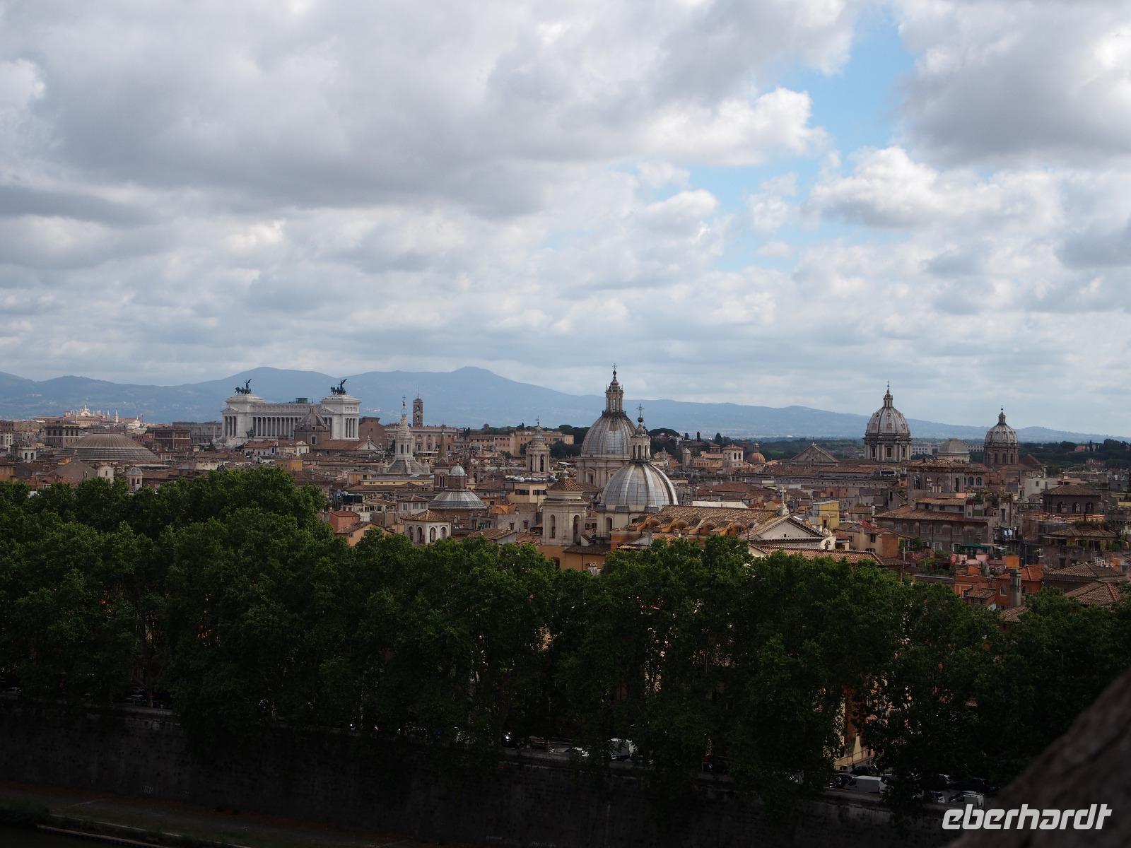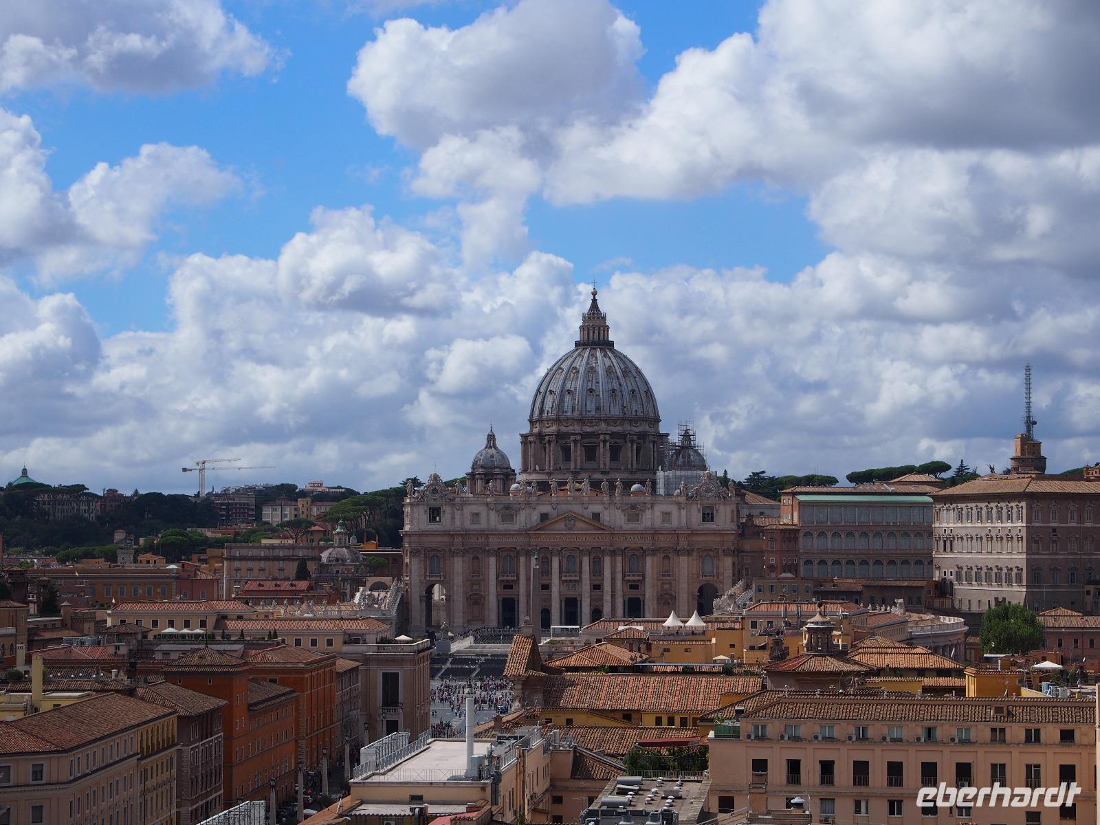 Nicht weniger eindrucksvoll sollte der nächste Tag beginnen, denn gemeinsam machten wir uns früh auf den Weg, um noch einen möglichst freien Blick auf den Petersplatz und die Hauptkirche des Vatikans, St. Peter, genießen zu können. Nach einer verhältnismäßig kurzen Wartezeit konnten wir die größte Kirche der Welt dann auch von innen bestaunen und die beeindruckende Renaissance- und Barockarchitektur auf uns wirken lassen. Neben der berühmten Pietà des Bildhauers Michelangelo zeigte uns Sylvia die Gräber und Altäre diverser Päpste und führte uns in die kleinen und großen Geheimnisse und Eigenheiten des Vatikanstaates ein. Die Mittagspause gab jedem die Gelegenheit eine Postkarte aus dem kleinsten Staat der Welt zu verschicken, bevor wir am Nachmittag noch das ehemalige Refugium der Päpste, die Engelsburg, besichtigten. Vom Turm aus bot sich uns bei schönstem Wetter ein herrlicher Ausblick über die Stadt.