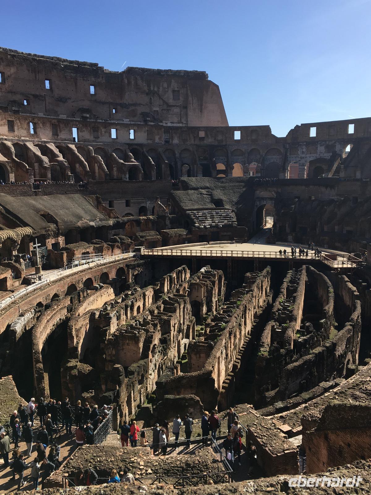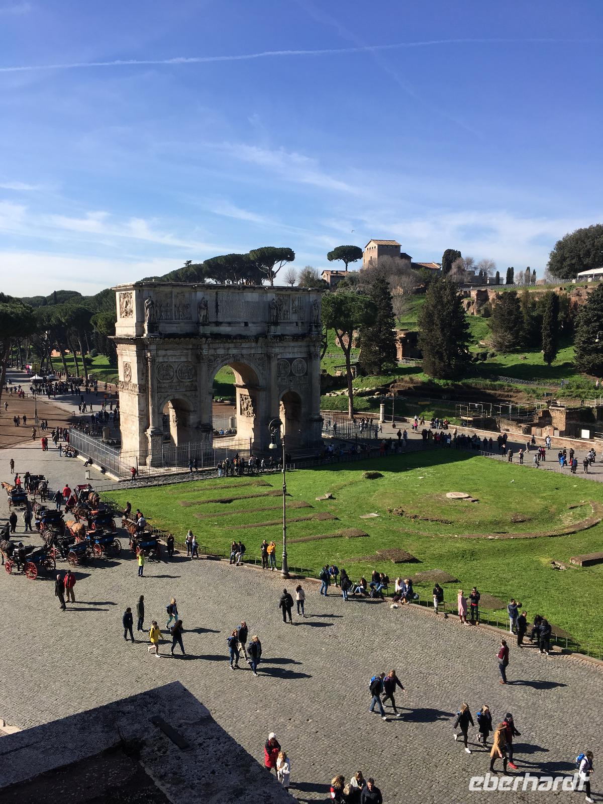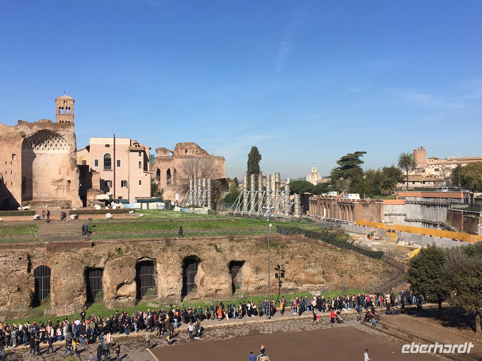 Der heutige Tag begann mit einer kurzfristigen Zeitenänderung am Morgen, da für heute der letzte Tag des öffentlichen Streiks aller Nahverkehrsmittel in Rom geplant war. Nichts desto trotz haben wir es geschafft, die letzten Bahnen- reingepresst wie die Ölsardinen - zum Colosseum zu erreichen. Dort nahm uns die Reiseleiterin Silvia für die nächsten drei Tage in Empfang. Wir starteten heute sonnig und mit blauem Himmel in den Tag. Zunächst stand die Innenbesichtigung des Colosseum, dem größten Amphitheater des antiken Roms auf dem Programm. Das heutige Wahrzeichen der Stadt wurde bereits zwischen 72 und 80 n. Chr. als Austragungsort für brutale Veranstaltungen zur Belustigung und Unterhaltung der Mitglieder des Kaiserhauses und der Bevölkerung zu freiem Eintritt genutzt. Das noch gut erhaltene Panorama des Innenraums lässt uns erahnen, wie diese Feierlichkeiten damals ausgetragen wurden. Ein Spaziergang von wenigen Minuten führte uns in das Forum Romanum, wo man die Ruinen des alten Rom bestaunen kann. Durch Silvias visuellen Erläuterungen und Darstellungen aus Ihrem Buch, versetzten wir uns leicht in die damalige Zeit. Von diesem Forum aus wurden alle wirtschaftlichen, politischen, kulturellen und religiösen Belange gelebt. Die Ruinen liegen inmitten der drei Stadthügel Palatin, Kapitol und Esquilin. Nach dem ersten Teil des antiken Roms legten wir eine wohltuende Mittagspause hinter dem Colosseum ein. Im Anschluss ging es weiter zu Fuß zu den Caracall-Thermen, den antiken Badeanlagen mit gut erhaltenen Mosaikböden. Da unsere Füße allmählich immer müder wurden einigten wir uns darauf das Programm nicht, wie ursprünglich geplant an der Tiber Insel enden zu lassen, sondern an dem berühmten Circus Maximus. Dort fanden auf einer Länge von 600 Metern öffentliche Wagenrennen auf Staatskosten und zur Unterhaltung der Bevölkerung statt. Die Fahrt zum Hotel konnte zum Glück wieder mit der Metro bestritten werden, da die Streiks früher als geplant endeten.
