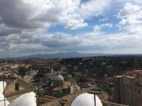 Nach dem Flug mit kleinen Turbulenzen landeten wir zunächst in München, wo fast alle Reiseteilnehmer aufeinander trafen. Danach ging es weiter in die ewige Stadt am Tiber. Dort wurden wir bereits freundlich von dem Hotelpersonal empfangen und durften unsere Zimmer beziehen. Nach einer kleinen Verschnaufpause machten wir uns auf, um bereits erste Eindrücke für die kommenden vier Tage zu erhalten. Reisebegleitung Laura lud zu einem Spaziergang in Richtung der vatikanischen Mauer ein. Dort angekommen suchten wir uns ein Restaurant zum Abendessen. Auf dem Rückweg zum Hotel gelangten wir in einen Regenschauer, doch das sollte der letzte bis zu unserer Abreise gewesen sein.