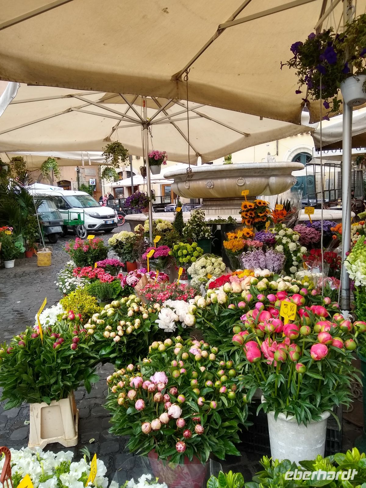 Die Herren haben es einfacher, denn am gleichen Platz, in den Läden am Trevi-Brunnen werden wunderschöne Seidenkrawatten mit tollen Mustern präsentiert. Davon hat man auch nie genug. Oder? Und die kleine Päckchen trägt man doch gerne im Rucksack, bis sie an einem Abend in einem schönen Restaurant vorgeführt werden und bewundernde Blicke auf sich ziehen. Wenn ich ein Mann wäre, würde ich in Rom immer wieder die Farbpalette meiner Leinenhemden erweitern. Mein Mann könnte langsam auch ein Hemden- und Krawattenladen eröffnen. Inzwischen habe ich ein Kaufverbot bekommen, aber selbstverständlich nur für ihn darf ich nichts mehr kaufen. Noch besser… Ich wollte vor allem mein Gewissen beruhigen, wenn ich auch für ihn hin und wieder eine Krawatte kaufte!