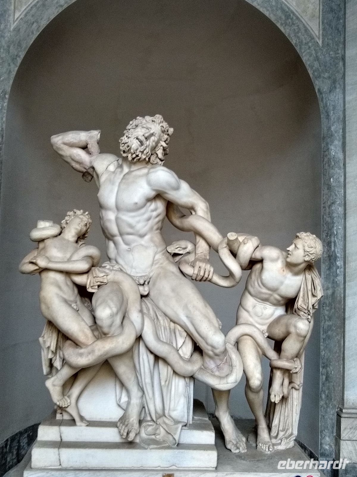 Michelangelos „Lehrer“ war der Torso von Belvedere, die Skulptur hatte man im 15. Jh. bei Bauarbeiten in Rom entdeckt, jetzt kann man sich von ihr beeindrucken lassen in den Vatikanischen Museen. Auch dort, nur ein paar Schritte entfernt, steht auch die Laokoon-Skulpturengruppe, die in der Nähe der Ruinen des Goldenen Haus Neros, Domus Aurea, auch etwa um 1500 entdeckt wurde. Was für Anatomiekenntnisse besaß der Bildhauer, was für eine Muskulatur wird uns vorgeführt!