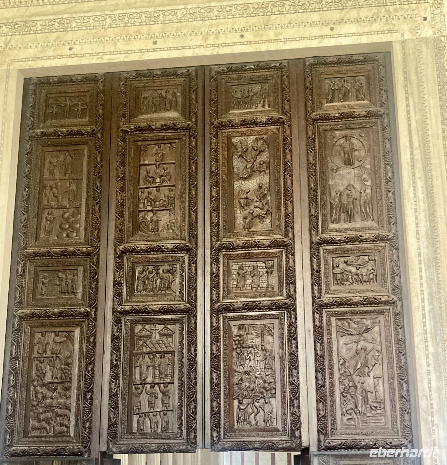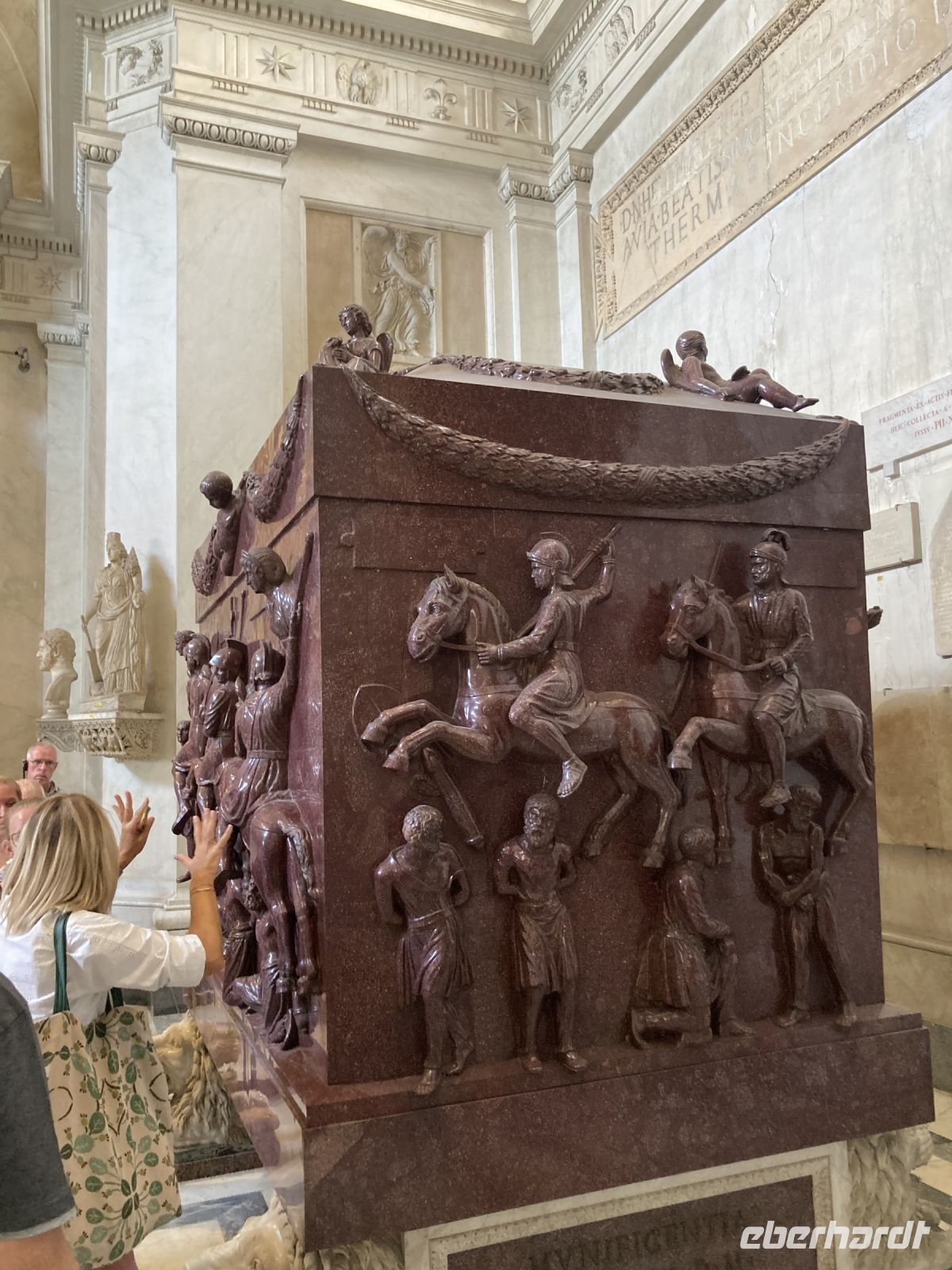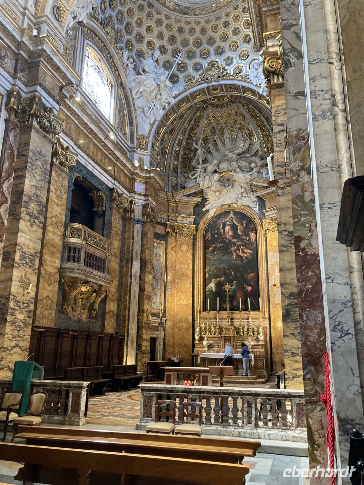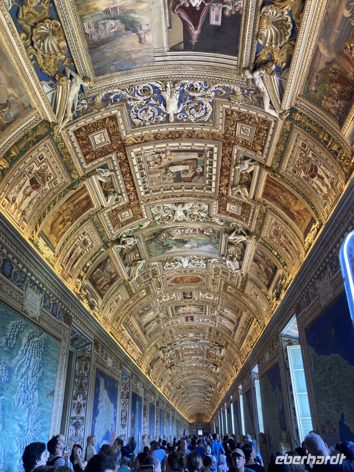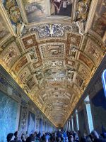, an der nur geladene Gäste teilnehmen können. Unsere Führung war genau für diesen Nachmittag geplant. Und für 10:30 Uhr haben wir Karten für das Vatikanische Museum, was nicht zu verschieben geht, da Zeitfenster gebucht sind. Damit das Frühstück gesichert ist spendiert Eberhardt Travel drei Taxen und so fahren wir kurz vor 8 Uhr im Vatikan vor. Welch ein Gefühl….Keine Schlange am Petersdom und ruckzuck sind wir drin. Die Erläuterung zum Dom bekommen wir vor und nach der Besichtigung vermittelt. Denn vor 10:00 Uhr dürfen Gästeführer, aus Rücksicht auf ihren Ritualen folgenden Geistlichen, keine Führungen begleiten. 1506 erfolgte die Grundsteinlegung durch Pabst Julius II und über 100 Jahre sollte der Bau dauern. Die 187 m lange Basilika vereint 11 Kapellen, 45 Altäre und unheimlich viele Kunstwerke. Wer hinabsteigt im Dom kann die Grotte Vaticane besichtigen. Zig Gemälde zieren die Gänge der Grabstätten vieler Päbste. Die beiden 76 m breiten Querschiffe krönt die riesige Kuppel von Michelangelo. Wir sind fasziniert. Einige Gäste schaffen es sogar noch auf die Aussichtspunkte des Domes zu gelangen, denn auch hier ist natürlich so früh am Tage kaum Andrang. Weiter geht es zum Vatikanischen Museum, wir sind heute halt eng gehackter. Nachdem die Voucher in Eintrittskarten umgewandelt und die Audiogeräte in Empfang genommen wurden, hatten wir uns eine Pause verdient, bevor es einen Teil der sieben Kilometer langen Gänge des Museums zu erkunden galt. Bereits 1503 wurden die Entwürfe für das Museum erarbeitet und im 18. Jh erfolgte eine Erweiterung. Allein die Bibliotheca Apostolica umfasst 1.800.000 wertvolle Bände und Handschriften. Unzählige Skulpturen, Gemälde, Schmuckstücke und Wandteppiche gibt es zu bestaunen. Auch ein Blick auf die Wohnstätte des aktuellen Pabstes gelingt uns. Den Abschluss bildet die Cappella Sistina. In ihr findet immer die Wahl des nächsten Pabstes statt, die Konklave der wahlberechtigten Kardinäle. Die Kapelle verdankt ihren Namen dem Pabst Sixtus IV, der den Bau in Auftrag gab. Geld stand reichlich zur Verfügung und so konnten die namhaftesten Künstler verpflichtet werden. Für die Deckengestaltung konnte Michelangelo, der anfänglich zögerte, gewonnen werden. Er integrierte über 300 Figuren in die Deckenmalerei und benötigte vier Jahre dazu, da er alles selbst malte, kein Gehilfe entsprach seinen Ansprüchen. Früh am Nachmittag hatten wir die zwei wichtigen Sehenswürdigkeiten erkundet und jeder konnte so noch einige Stunden seinen Interessen folgen. Der Abend klingt mit einem gemeinsamen, gemütlichen Essen in der Osteria Fratelli Mori aus.