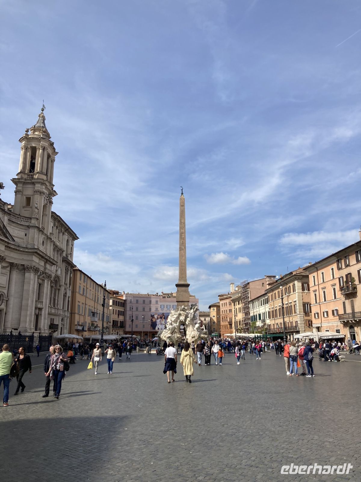 Aber wir sind noch nicht fertig, denn die Plätze fehlen noch. Piazza Novona mit dem berühmten Vierströmebrunnen hat es uns angetan, gepaart von der Geschichte zur intelligenten Olimpia Maidalchini. Umrahmt wird der Platz von unzähligen gastronomischen Einrichtungen und ein Besuch am Abend ist lohnenswert, denn hier steppt der Bär, wie man so schön sagt.
