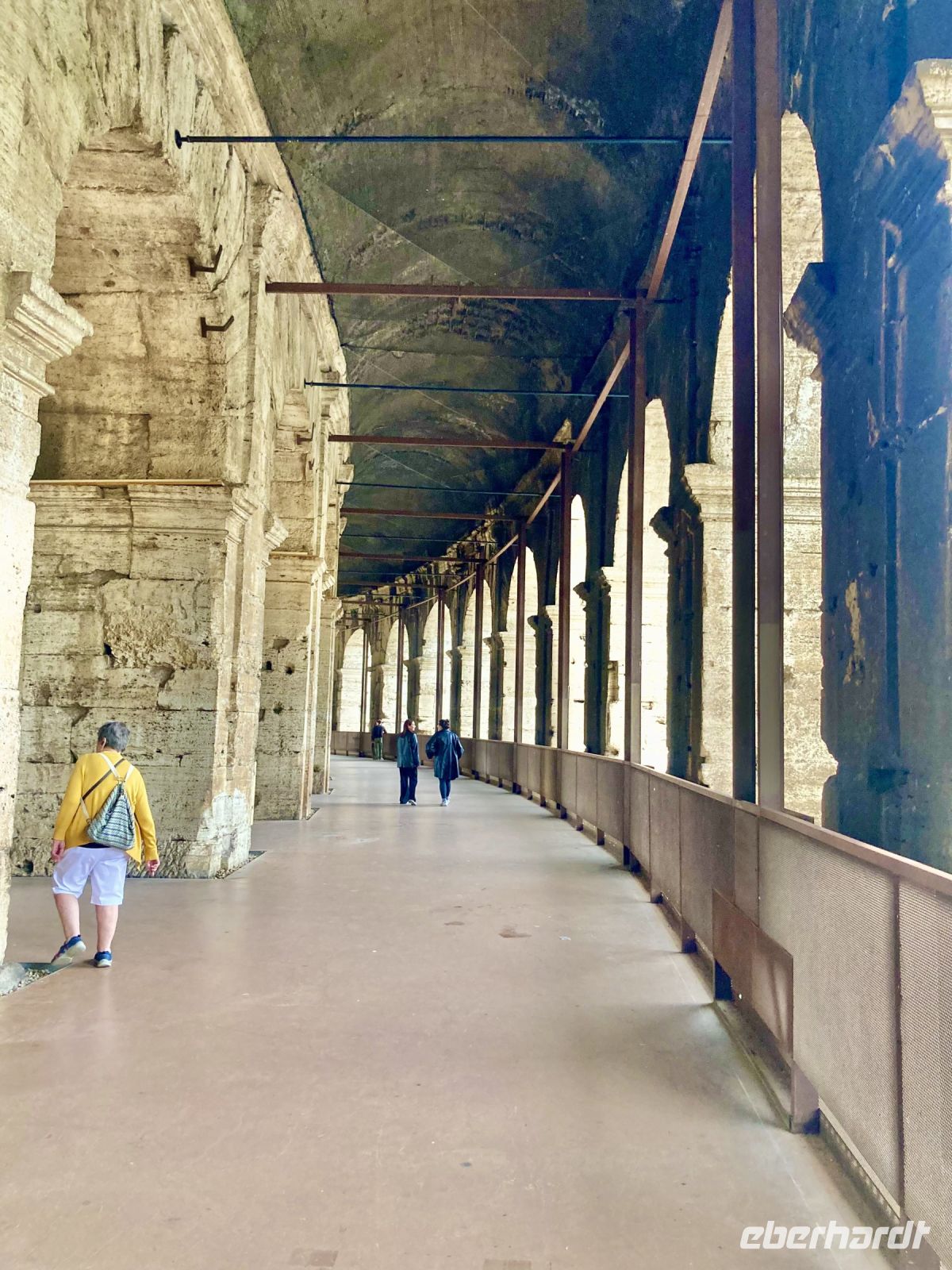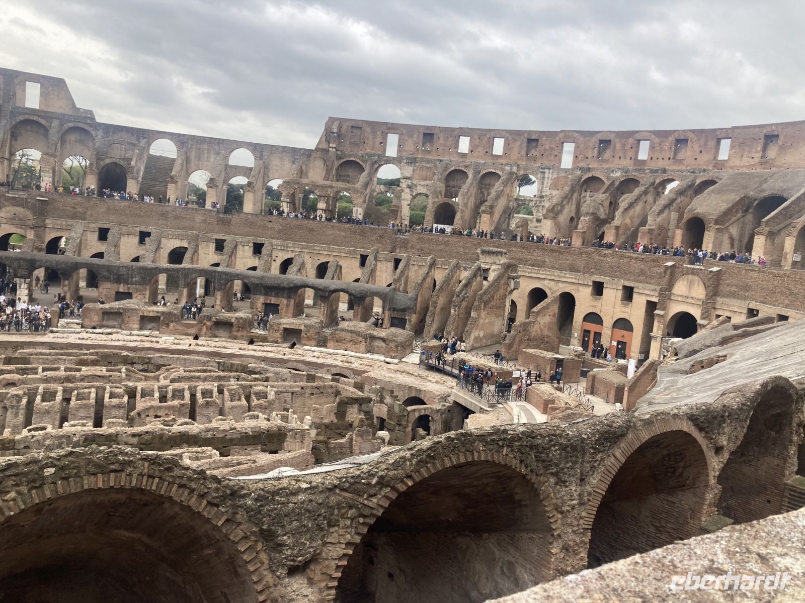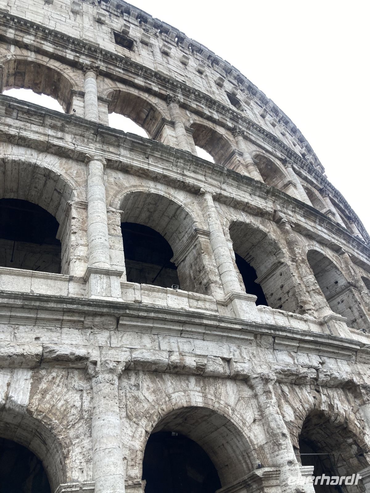 Metroerprobt erreichen wir die Haltestelle Colloseo. Hier bietet sich die Gelegenheit, wie sehr oft in der Stadt, unsere Trinkflaschen an den städtischen Brunnen zu füllen, hier aber mit dem besonderen Service es frizzante zu tun. Sofort zieht uns das gigantische Bauwerk in den Bann, nachdem wir uns durch die Irrungen der Baustelle zur Metrolinie C durchquert haben. Ehrfürchtig blicken wir die 48 m in die Höhe. Das elliptische Gebäude hat einen Umfang von 527 Metern, ist 188 m lang und 156 breit. Erbaut wurde es zwischen 72 und 80 n. Chr. unter Kaiser Vespasian.