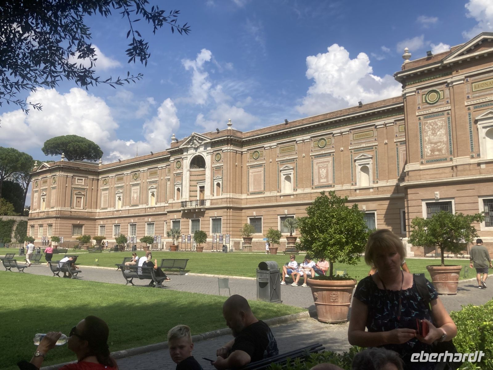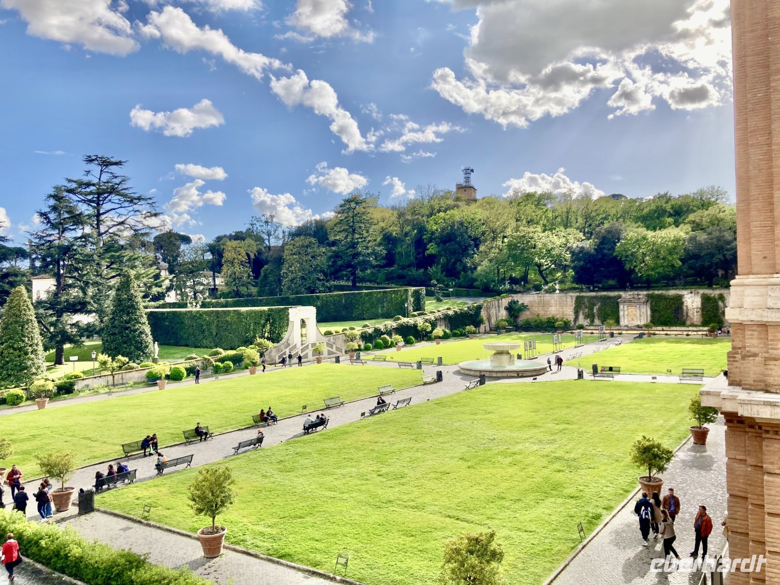 Einige Gäste besuchen den deutschen Friedhof im Vatikan. Als Deutscher darf man nur hier vatikanisches Gelände ohne Probleme ( geöffnet bis 12 Uhr) betreten. Auch die Kuppel des Domes besuchen einige Gäste. Von hier hat man nicht nur einen wunderbaren Blick auf den den Vatikanstaat, sondern auf ganz Rom. Übrigens wohnen im Vatikan nur die geistlichen Würdenträger und die Schweizer Garde. Alle Angestellten pendeln ein und aus. Der Vatikanstaat hat noch eine andere Besonderheit, in den Geschäften und an der Tankstelle gibt es keine Mehrwertsteuer.