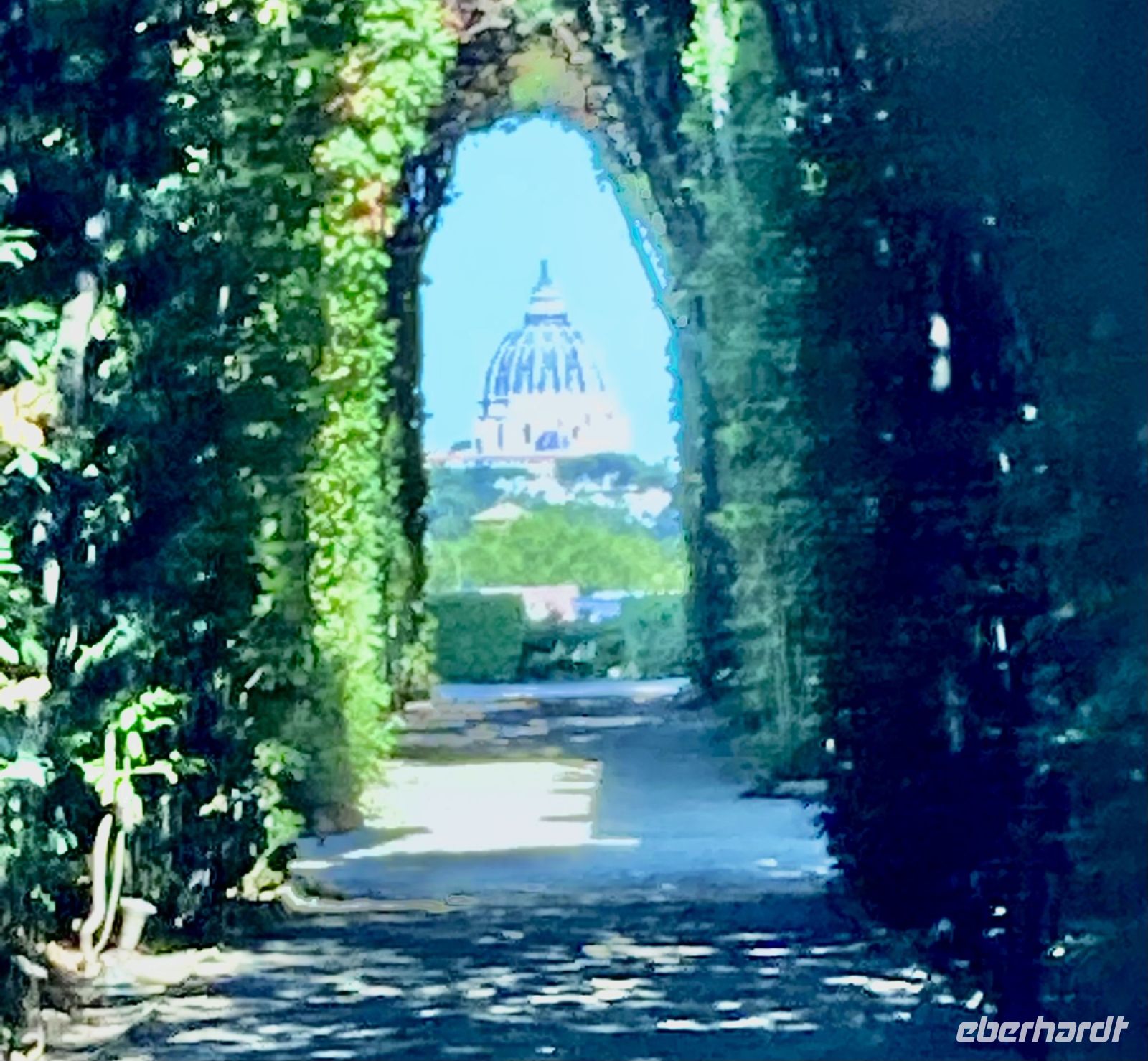 Weiter führt uns der Weg zu einer weiteren berühmten Tür. Eine Tür die zu einem Geländer der Malteser gehört. Schaut man durch dessen Schlüsselloch so sieht man sehr gut den Petersdom.