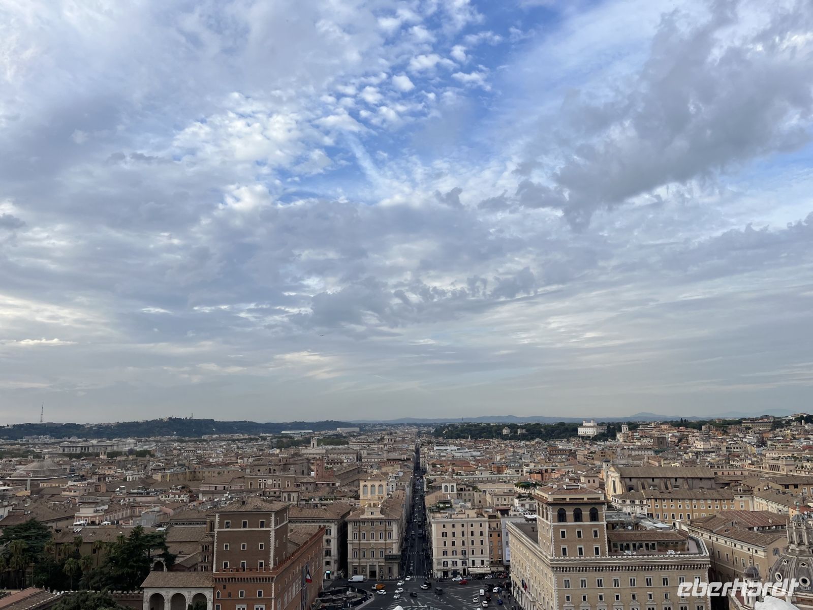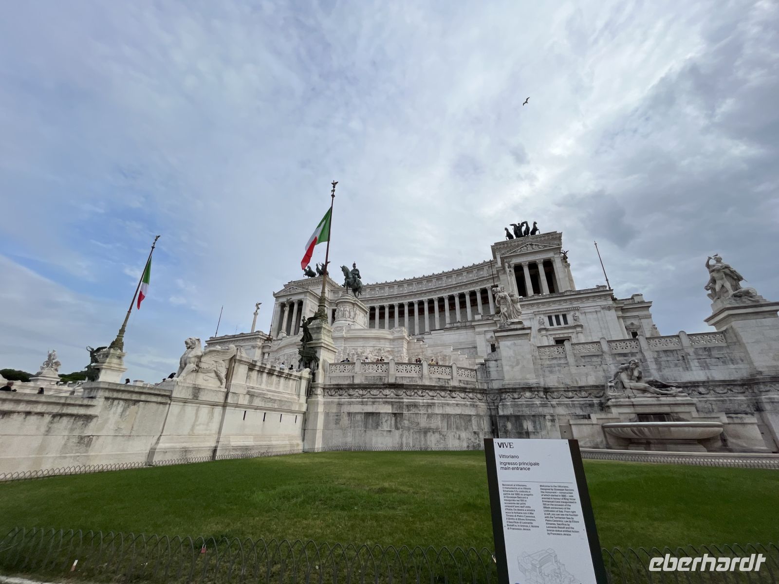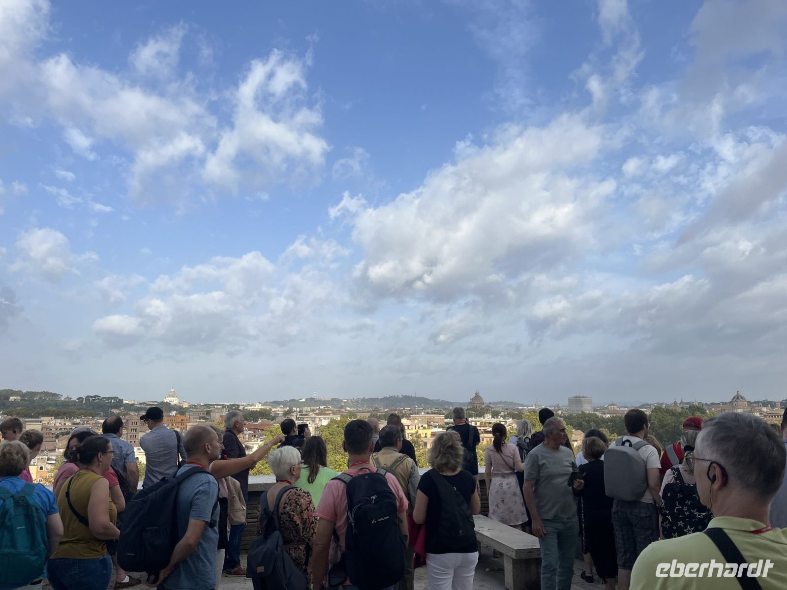 Früh am morgen beginnt die Reise für einen Teil der Gruppe in Dresden. Ich bin Valentin und als Trainee neu bei Eberhardt, es ist hier meine erste Reise. Ich freue mich, dass ich die Gruppe um Reiseleiterin Heike begleiten darf. Über Frankfurt kommen wir schließlich gegen 15:00 Uhr in der ewigen Stadt an und werden von strahlendem Sonnenschein begrüßt. Bei den Gästen aus Leipzig wird leider der Flug gestrichen, doch über verschiedene Umwege und Umbuchungen schaffen sie es auch nach Rom. Nach dem Check-Inn im Hotel schließen sich uns einige Gäste zu einem kleinen Stadtrundgang an, bei dem wir das Monument von Vittorio Emanuele II. besteigen und einen eindrucksvollen Blick über die ganze Stadt bekommen. Am Abend trudeln die letzten Gäste im Hotel ein und um 19:30 Uhr gehen wir gemeinsam mit der ganzen Gruppe im Hotelrestaurant essen und lernen einander kennen. Trotz Probleme beim Bezahlen, da es nur eine Rechnung für den gesamten Tisch gibt, haben wir einen lustigen Abend und sind alle gespannt auf die nächsten Tage.