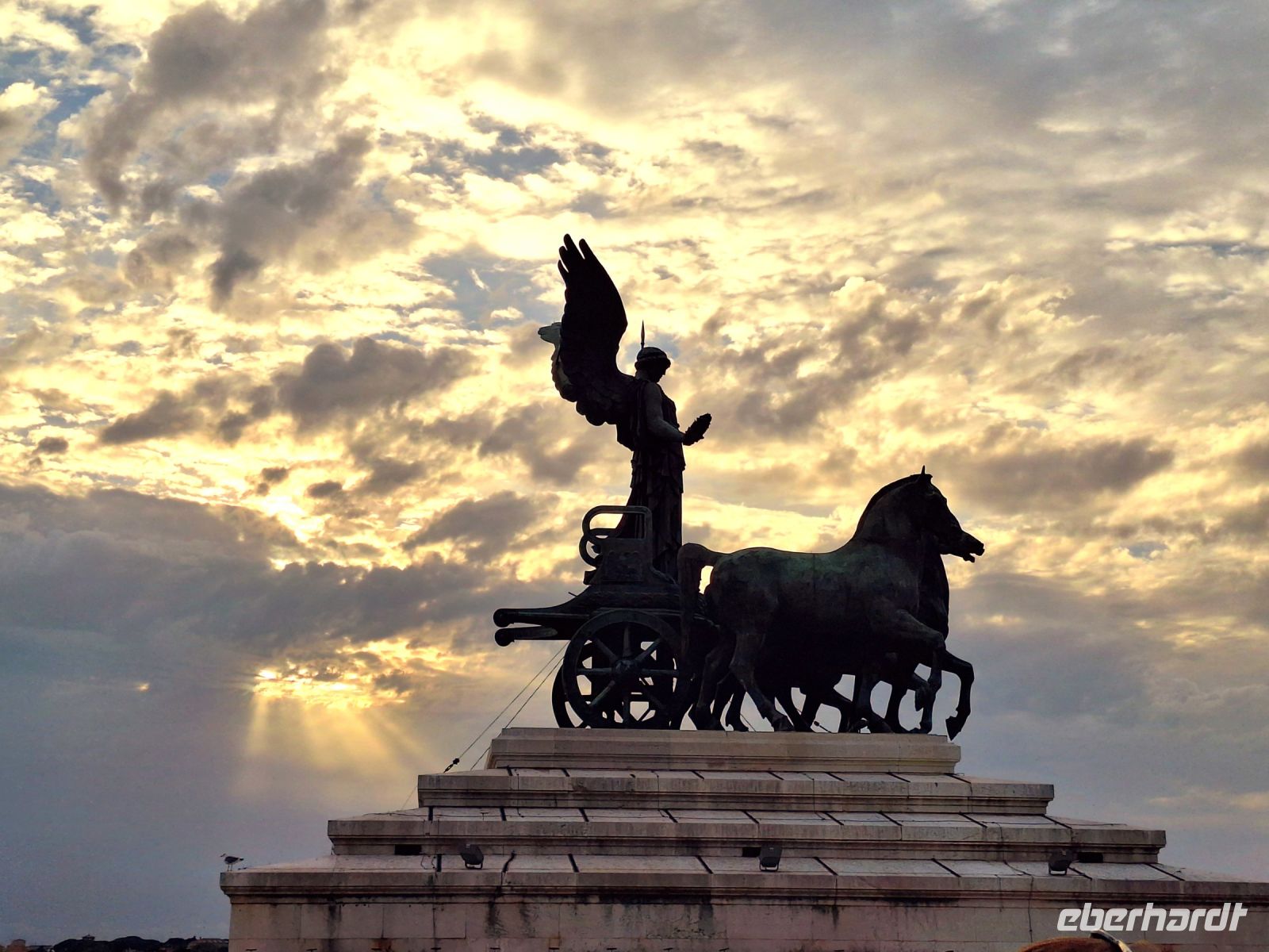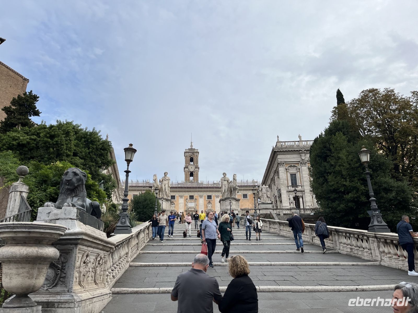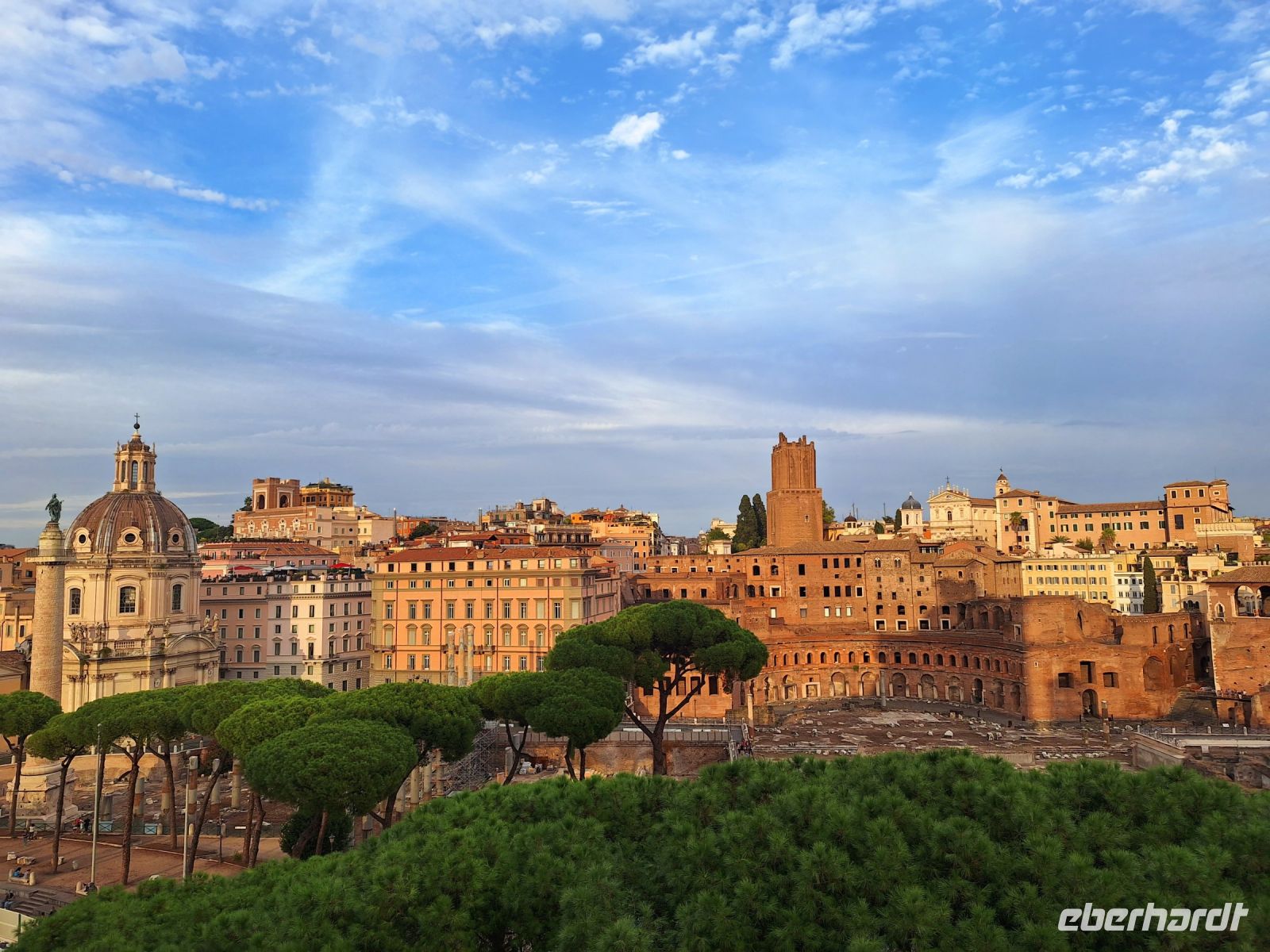 Früh am morgen beginnt die Reise für einen Teil der Gruppe in Dresden. Ich bin Valentin und als Trainee neu bei Eberhardt, es ist hier meine erste Reise. Ich freue mich, dass ich die Gruppe um Reiseleiterin Heike begleiten darf. Über Frankfurt kommen wir schließlich gegen 15:00 Uhr in der ewigen Stadt an und werden von strahlendem Sonnenschein begrüßt. Bei den Gästen aus Leipzig wird leider der Flug gestrichen, doch über verschiedene Umwege und Umbuchungen schaffen sie es auch nach Rom. Nach dem Check-Inn im Hotel schließen sich uns einige Gäste zu einem kleinen Stadtrundgang an, bei dem wir das Monument von Vittorio Emanuele II. besteigen und einen eindrucksvollen Blick über die ganze Stadt bekommen. Am Abend trudeln die letzten Gäste im Hotel ein und um 19:30 Uhr gehen wir gemeinsam mit der ganzen Gruppe im Hotelrestaurant essen und lernen einander kennen. Trotz Probleme beim Bezahlen, da es nur eine Rechnung für den gesamten Tisch gibt, haben wir einen lustigen Abend und sind alle gespannt auf die nächsten Tage.