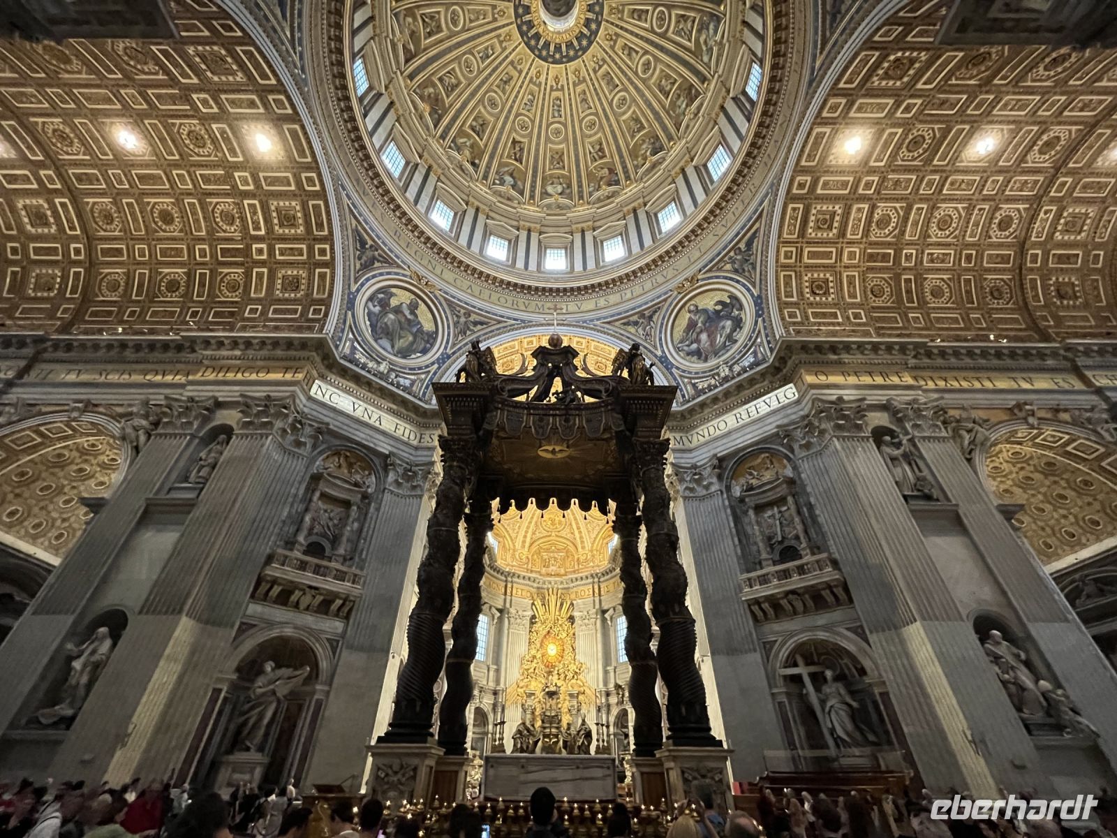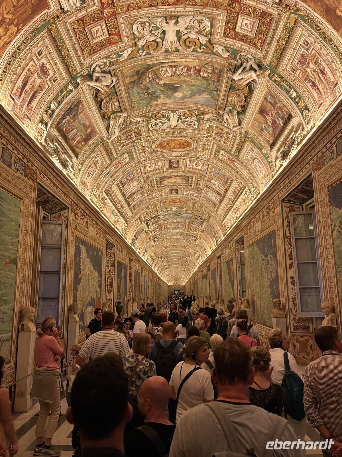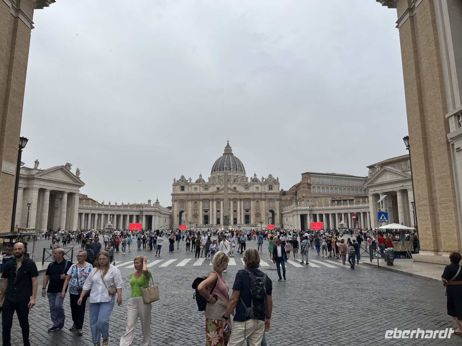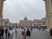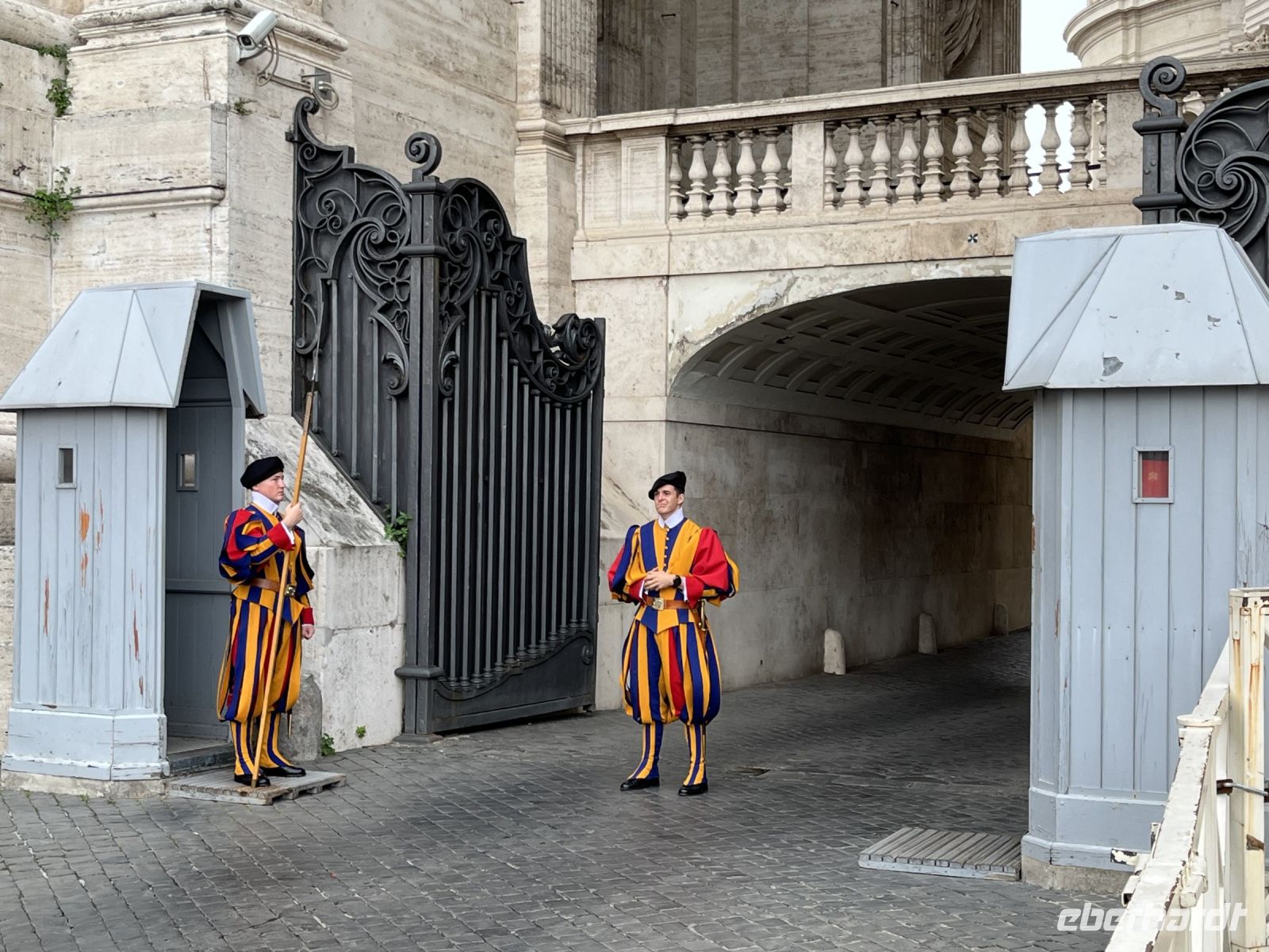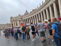 Heute beginnt der Tag mit einem Schock: Generalstreik in Italien, auch die Römer streiken. Betroffen sind Bus, Bahn und Metro. Doch ausgerechnet heute soll es zum Vatikan gehen, den wir eigentlich per Zug erreichen wollten. Trotzdem lassen wir uns davon nicht den Tag verderben und stellen einen Plan-B auf. Die eine Hälfte wird mit dem gerade noch organisierten Shuttle-Bus in die heilige Stadt gefahren, der Rest macht sich zu Fuß auf den Weg. Wir schlendern durch das schöne Viertel Trastevere, das mit vielen kleinen Gassen mit Cafés, Restaurants und Läden zu sich einlädt. Entlang des Tibers gelangen wir schließlich zum Petersplatz, wo wir den Rest der Gruppe treffen. Jetzt heißt es warten, in einer Schlange, an der täglich über 25.000 Touristen anstehen. Nach etwa eineinhalb Stunden haben wir es geschafft und dürfen den Petersdom betreten. Beim Eintreten werden wir von Eindrücken erschlagen. Der 133 Meter hohe Dom ist eine der größten und bedeutendsten Kirchen der Welt, ist innen mit zahlreichen Statuen, Mosaiken und Verzierungen geschmückt und vereint 11 Kapellen und 45 Altäre. Besonders beindruckend ist der von Gian Lorenzo Bernini erbaute Baldachin, der über 28 Meter hoch ist und aus über 100.000 Pfund Bronze besteht. Einige Gäste besteigen auch die Kuppel des Domes, die über mehr als 500 Stufen zu erreichen ist. Von hier hat man ein atemberaubendes 360-Grad-Panorama mit Blick über den Petersplatz, die vatikanischen Gärten und die historische Innenstadt Roms. Danach heißt es wieder absteigen und Treff am Obelisken am Petersplatz mit unserer Gästeführerin. Wir spazieren um die Mauern des Vatikans und erreichen den Eingang zu den Vatikanischen Museen. Vielen tun die Füße schon weh vom langen Tag, doch dieses Highlight möchte sich keiner entgehen lassen. Zusammen mit Sylvia gehen wir durch die verschiedenen Hallen und Gänge des Museums, vorbei an Marmor-Statuen, Mosaiken, Wandteppichen und Gemälden. Und als wir denken, es kann nicht mehr beeindruckender werden, betreten wir die sixtinische Kapelle. Die gesamte Decke und die Wände sind voll mit Gemälden, darunter das weltberühmte „Jüngste Gericht“ oder die „Erschaffung Adams“ von Michelangelo. Die Zeit reicht gar nicht aus, um zu begreifen, was die eigenen Augen hier sehen. Mit vielen neuen Eindrücken endet der Tag hier und die Gruppe fährt per Bus und Metro zurück zum Hotel. Zu Abend gegessen wird wieder in verschiedenen Restaurants in der Nähe der Unterkunft.