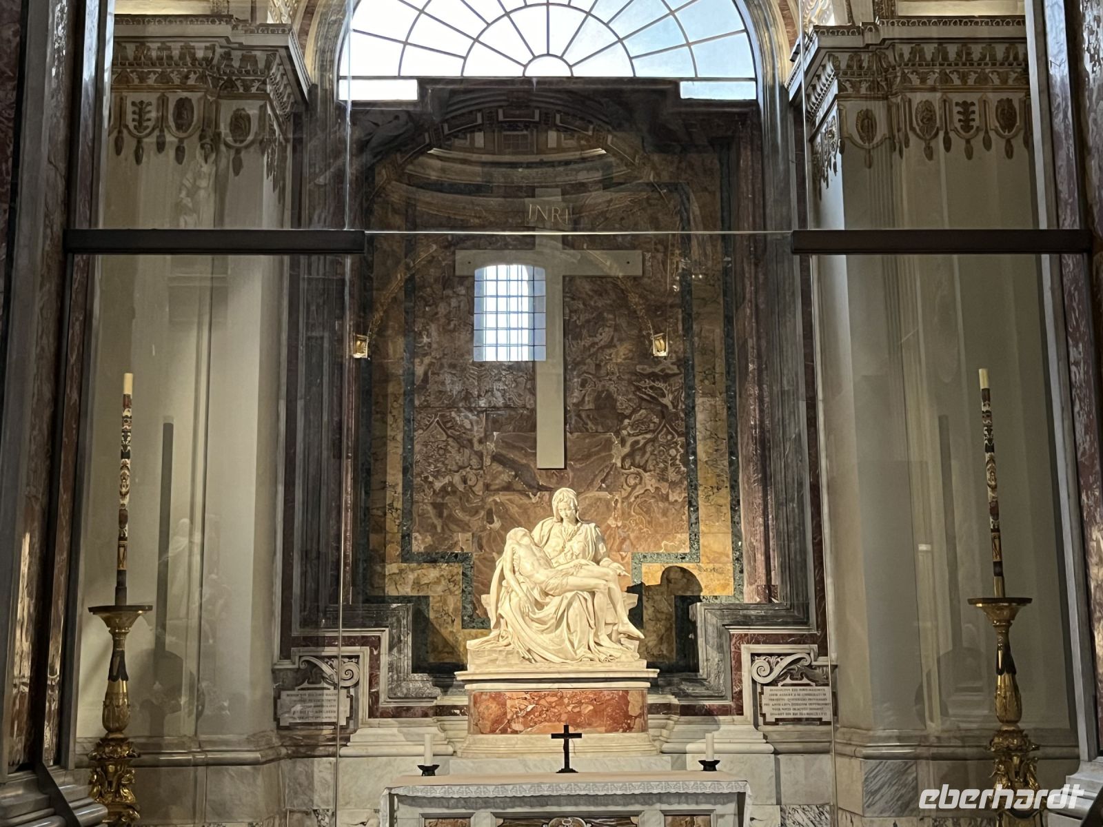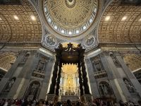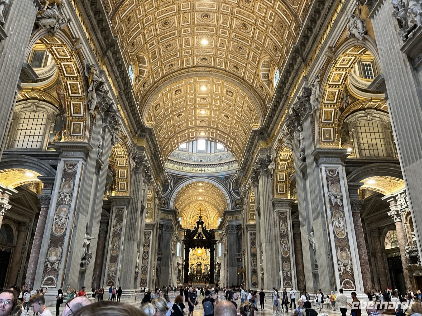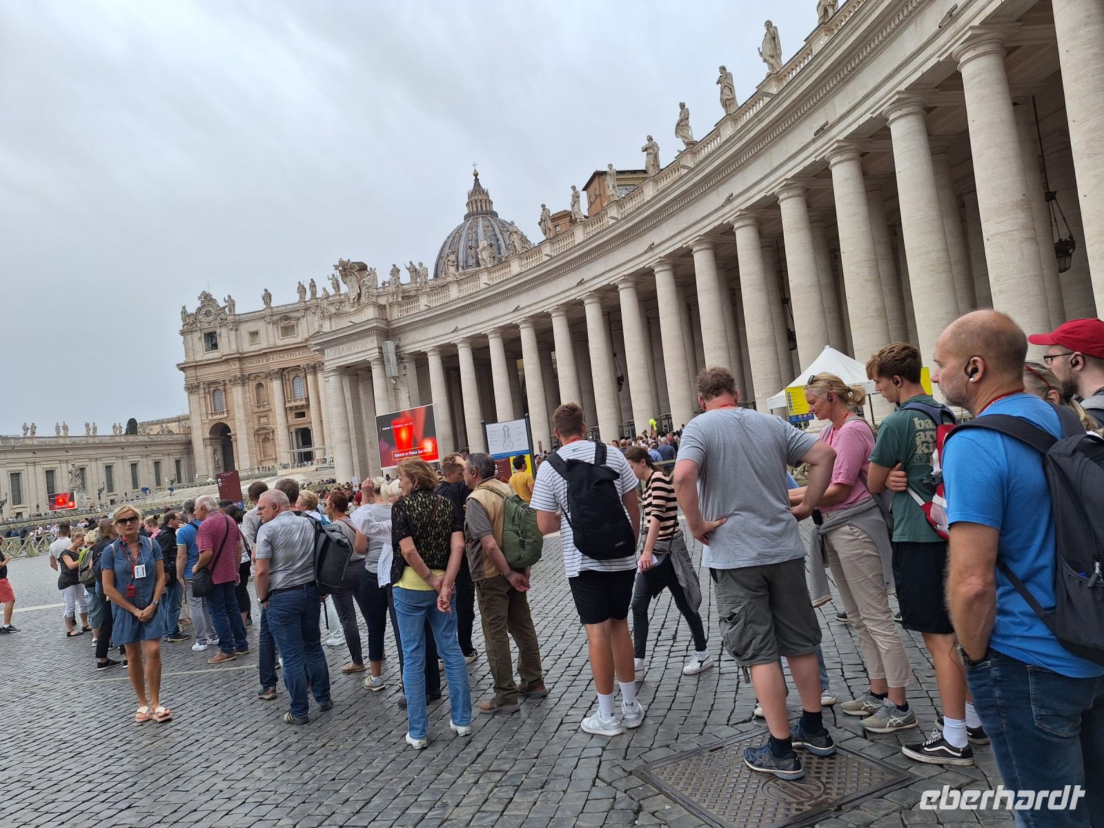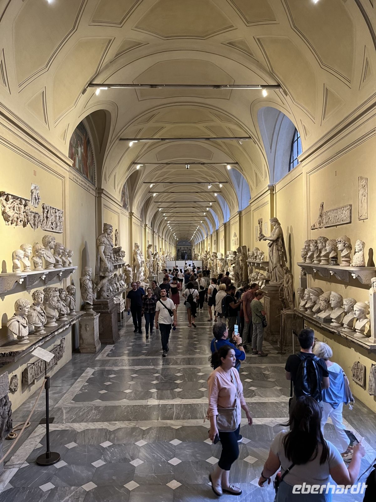 Heute beginnt der Tag mit einem Schock: Generalstreik in Italien, auch die Römer streiken. Betroffen sind Bus, Bahn und Metro. Doch ausgerechnet heute soll es zum Vatikan gehen, den wir eigentlich per Zug erreichen wollten. Trotzdem lassen wir uns davon nicht den Tag verderben und stellen einen Plan-B auf. Die eine Hälfte wird mit dem gerade noch organisierten Shuttle-Bus in die heilige Stadt gefahren, der Rest macht sich zu Fuß auf den Weg. Wir schlendern durch das schöne Viertel Trastevere, das mit vielen kleinen Gassen mit Cafés, Restaurants und Läden zu sich einlädt. Entlang des Tibers gelangen wir schließlich zum Petersplatz, wo wir den Rest der Gruppe treffen. Jetzt heißt es warten, in einer Schlange, an der täglich über 25.000 Touristen anstehen. Nach etwa eineinhalb Stunden haben wir es geschafft und dürfen den Petersdom betreten. Beim Eintreten werden wir von Eindrücken erschlagen. Der 133 Meter hohe Dom ist eine der größten und bedeutendsten Kirchen der Welt, ist innen mit zahlreichen Statuen, Mosaiken und Verzierungen geschmückt und vereint 11 Kapellen und 45 Altäre. Besonders beindruckend ist der von Gian Lorenzo Bernini erbaute Baldachin, der über 28 Meter hoch ist und aus über 100.000 Pfund Bronze besteht. Einige Gäste besteigen auch die Kuppel des Domes, die über mehr als 500 Stufen zu erreichen ist. Von hier hat man ein atemberaubendes 360-Grad-Panorama mit Blick über den Petersplatz, die vatikanischen Gärten und die historische Innenstadt Roms. Danach heißt es wieder absteigen und Treff am Obelisken am Petersplatz mit unserer Gästeführerin. Wir spazieren um die Mauern des Vatikans und erreichen den Eingang zu den Vatikanischen Museen. Vielen tun die Füße schon weh vom langen Tag, doch dieses Highlight möchte sich keiner entgehen lassen. Zusammen mit Sylvia gehen wir durch die verschiedenen Hallen und Gänge des Museums, vorbei an Marmor-Statuen, Mosaiken, Wandteppichen und Gemälden. Und als wir denken, es kann nicht mehr beeindruckender werden, betreten wir die sixtinische Kapelle. Die gesamte Decke und die Wände sind voll mit Gemälden, darunter das weltberühmte „Jüngste Gericht“ oder die „Erschaffung Adams“ von Michelangelo. Die Zeit reicht gar nicht aus, um zu begreifen, was die eigenen Augen hier sehen. Mit vielen neuen Eindrücken endet der Tag hier und die Gruppe fährt per Bus und Metro zurück zum Hotel. Zu Abend gegessen wird wieder in verschiedenen Restaurants in der Nähe der Unterkunft.