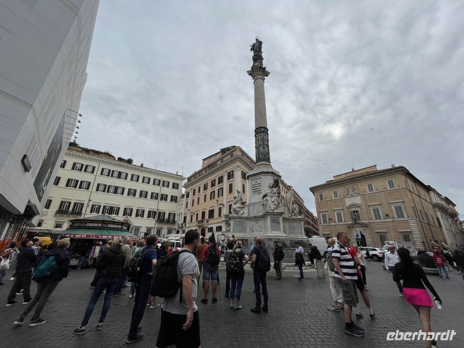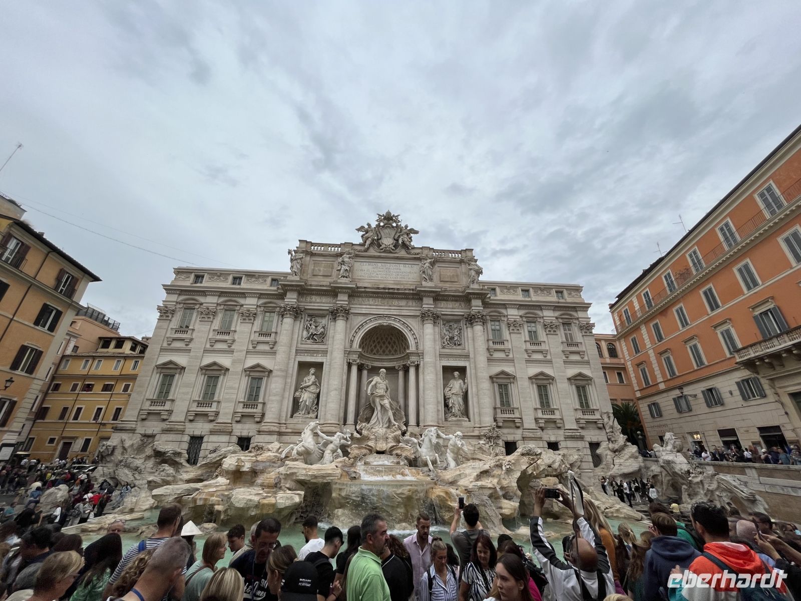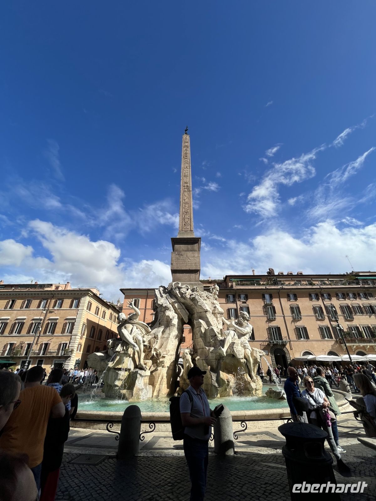 Am Morgen geht es mit der Metro los zur Piazza del Popolo, dem früheren nördlichen Stadttor von Rom. Von hier aus gehen drei Straßen ab, in denen die Boutiquen der großen Modemarken zu finden sind. Danach geht es weiter zur Spanischen Treppe an der Piazza di Spagna, die eigentlich gar nicht spanisch ist, wie wir später erfahren. Sie ist eine der bekanntesten Sehenswürdigkeiten Roms und besteht aus 136 Treppenstufen. Fun Fact: Seit 2019 ist das Sitzen auf der Treppe verboten. Weiter geht es zum Trevi-Brunnen. Dieses Meisterwerk des Barocks ist der größte Brunnen Roms und einer der bekanntesten der Welt. Die Statue des Meeresgottes Neptun, der auf seinem muschelförmigen Streitwagen von zwei geflügelten Pferden und Tritons zum Meer gezogen wird, steht zentral unter dem Triumphbogen. Sylvia erklärt uns, was es mit dem berühmten Münzwurf über die Schulter auf sich hat: wer eine Münze wirft, wird nach Rom zurückkehren, wer zwei Münzen wirft, wird sich in einen Römer oder eine Römerin verlieben und wer drei Münzen wirft, wird diese Person heiraten. Jährlich werden etwa 1 Mio. Euro aus dem Brunnen geholt und an eine Wohltätigkeitsorganisation gespendet. Nach einer kurzen Mittagspause mit Pizza und Pasta steht nun die Besichtigung des Pantheons an. Dieses gilt als eines der am besten erhaltenen Bauwerke der römischen Antike. Aufgrund des Wetters können wir auch die Frage klären, ob es oben ins Pantheon reinregnet: Ja, es regnet rein. Die acht Meter große kreisrunde Öffnung an der Decke des Gebäudes hat verschiedene Zwecke. Zum einen diente sie als Sonnenuhr, zum anderen konnte früher so der Rauch bei Opfergaben, die verbrannt wurden, aus dem Gebäude ziehen. Wir haben heute schon viele Plätze gesehen, aber Rom hat immer noch mehr zu bieten. Wir spazieren zur Piazza Navona, einem charakteristischen Platz des barocken Roms. Vor etwa 2000 Jahren hat Julius Cäsar hier ein Stadion gebaut, in dem sportliche Wettkämpfe, wie bei den olympischen Spielen in Griechenland, stattfanden. Heute befindet sich auf dem Platz der Vierströmebrunnen, mit männlichen Figuren, die die Flüsse Nil, Donau, Rio de la Plata und Ganges repräsentieren. Der nächste Platz, der uns erwartet, ist der Campo de Fiori, oder übersetzt Blumenmarkt. Hier findet jeden Vormittag ein Markt statt, auf dem man Käse, Wurst, Holzkunst und natürlich Blumen kaufen kann. An der schönen französischen Botschaft vorbei, gelangen wir zum Ende des Rundgangs auf die Via Giulia, die 1508 von Papst Julius II. erbaut wurde. Diese einen Kilometer lange, schnurgerade Straße galt einst als schönste Straße Roms. Heute beherbergt sie viele Antiquitätengeschäfte, Galerien und Werkstätten. An einem kleinen Springbrunnen beendet Sylvia die Führung und wir bedanken uns für Ihre tollen Erläuterungen der letzten Tage. Es ist auch ein Abschied für einige aus der Gruppe, die sich wegen der verschiedenen Rückflüge nicht mehr sehen werden. Der Rest des Tages steht den Gästen wieder zur freien Verfügung. Einige schlendern noch etwas durch Trastevere, einige gehen nochmal auf Entdeckungstour durch die Innenstadt und andere begeben sich nach dem anstrengenden Tag direkt ins Hotel.