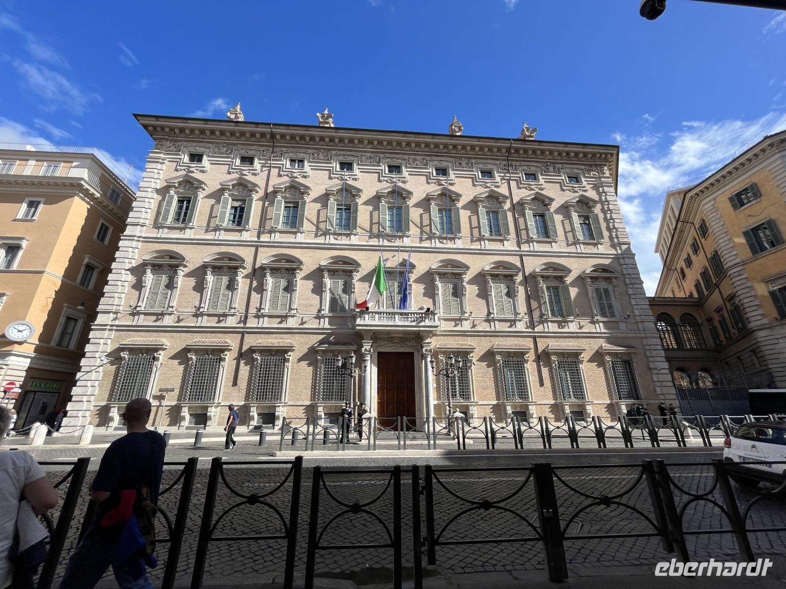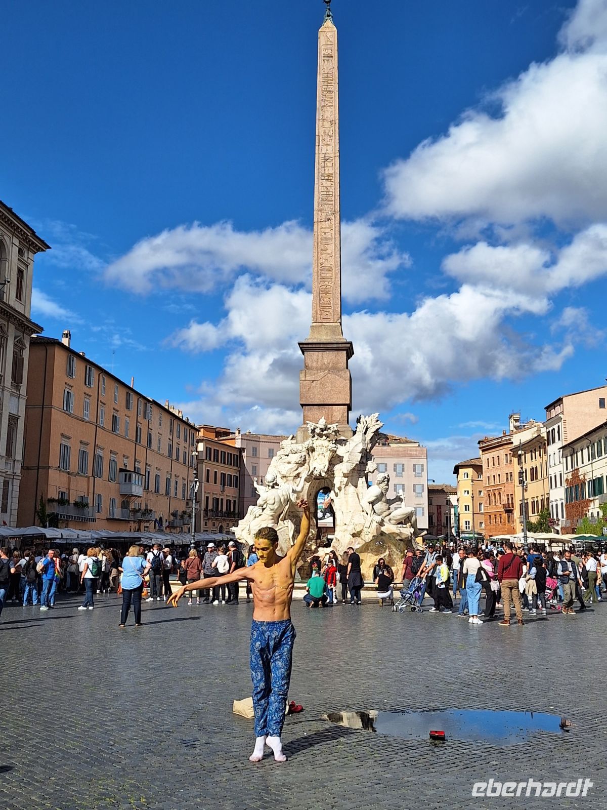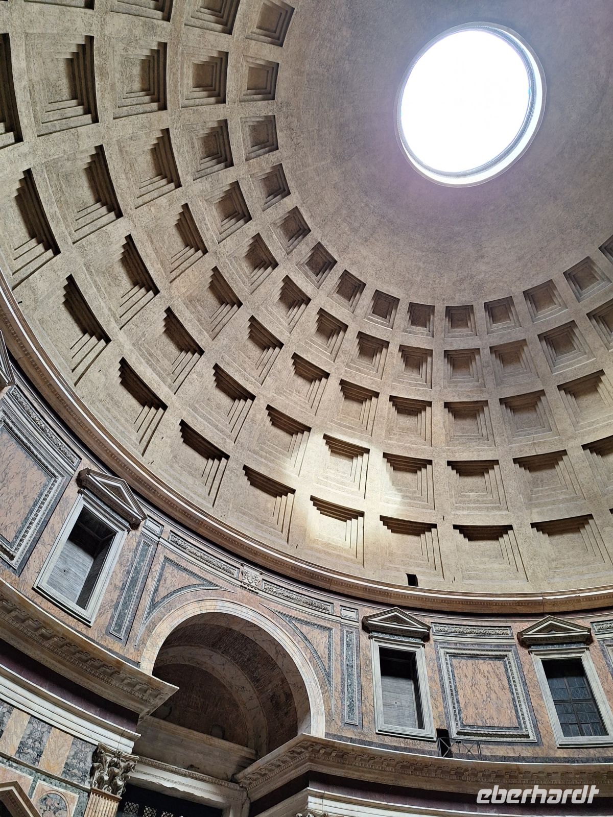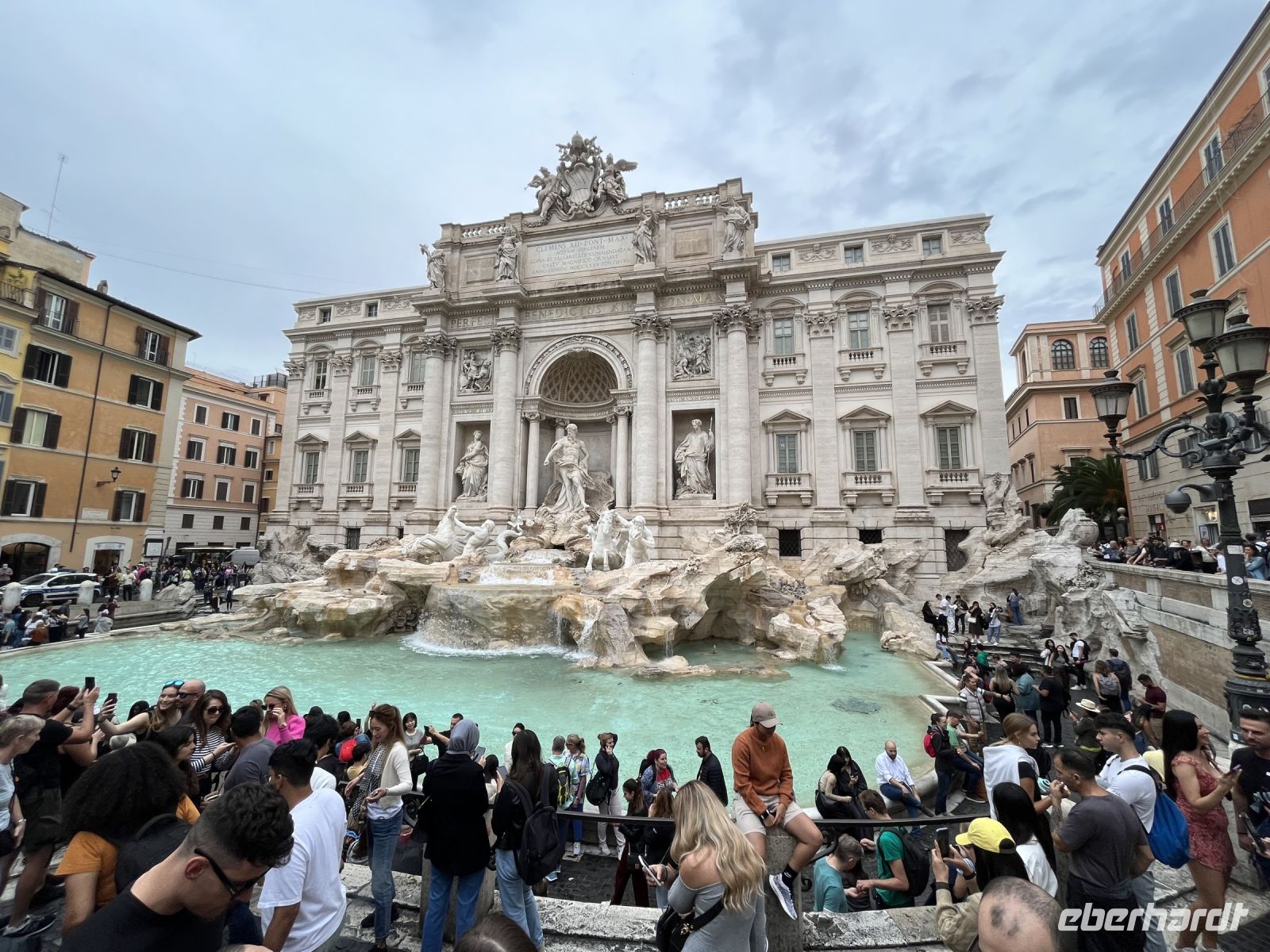 Am Morgen geht es mit der Metro los zur Piazza del Popolo, dem früheren nördlichen Stadttor von Rom. Von hier aus gehen drei Straßen ab, in denen die Boutiquen der großen Modemarken zu finden sind. Danach geht es weiter zur Spanischen Treppe an der Piazza di Spagna, die eigentlich gar nicht spanisch ist, wie wir später erfahren. Sie ist eine der bekanntesten Sehenswürdigkeiten Roms und besteht aus 136 Treppenstufen. Fun Fact: Seit 2019 ist das Sitzen auf der Treppe verboten. Weiter geht es zum Trevi-Brunnen. Dieses Meisterwerk des Barocks ist der größte Brunnen Roms und einer der bekanntesten der Welt. Die Statue des Meeresgottes Neptun, der auf seinem muschelförmigen Streitwagen von zwei geflügelten Pferden und Tritons zum Meer gezogen wird, steht zentral unter dem Triumphbogen. Sylvia erklärt uns, was es mit dem berühmten Münzwurf über die Schulter auf sich hat: wer eine Münze wirft, wird nach Rom zurückkehren, wer zwei Münzen wirft, wird sich in einen Römer oder eine Römerin verlieben und wer drei Münzen wirft, wird diese Person heiraten. Jährlich werden etwa 1 Mio. Euro aus dem Brunnen geholt und an eine Wohltätigkeitsorganisation gespendet. Nach einer kurzen Mittagspause mit Pizza und Pasta steht nun die Besichtigung des Pantheons an. Dieses gilt als eines der am besten erhaltenen Bauwerke der römischen Antike. Aufgrund des Wetters können wir auch die Frage klären, ob es oben ins Pantheon reinregnet: Ja, es regnet rein. Die acht Meter große kreisrunde Öffnung an der Decke des Gebäudes hat verschiedene Zwecke. Zum einen diente sie als Sonnenuhr, zum anderen konnte früher so der Rauch bei Opfergaben, die verbrannt wurden, aus dem Gebäude ziehen. Wir haben heute schon viele Plätze gesehen, aber Rom hat immer noch mehr zu bieten. Wir spazieren zur Piazza Navona, einem charakteristischen Platz des barocken Roms. Vor etwa 2000 Jahren hat Julius Cäsar hier ein Stadion gebaut, in dem sportliche Wettkämpfe, wie bei den olympischen Spielen in Griechenland, stattfanden. Heute befindet sich auf dem Platz der Vierströmebrunnen, mit männlichen Figuren, die die Flüsse Nil, Donau, Rio de la Plata und Ganges repräsentieren. Der nächste Platz, der uns erwartet, ist der Campo de Fiori, oder übersetzt Blumenmarkt. Hier findet jeden Vormittag ein Markt statt, auf dem man Käse, Wurst, Holzkunst und natürlich Blumen kaufen kann. An der schönen französischen Botschaft vorbei, gelangen wir zum Ende des Rundgangs auf die Via Giulia, die 1508 von Papst Julius II. erbaut wurde. Diese einen Kilometer lange, schnurgerade Straße galt einst als schönste Straße Roms. Heute beherbergt sie viele Antiquitätengeschäfte, Galerien und Werkstätten. An einem kleinen Springbrunnen beendet Sylvia die Führung und wir bedanken uns für Ihre tollen Erläuterungen der letzten Tage. Es ist auch ein Abschied für einige aus der Gruppe, die sich wegen der verschiedenen Rückflüge nicht mehr sehen werden. Der Rest des Tages steht den Gästen wieder zur freien Verfügung. Einige schlendern noch etwas durch Trastevere, einige gehen nochmal auf Entdeckungstour durch die Innenstadt und andere begeben sich nach dem anstrengenden Tag direkt ins Hotel.