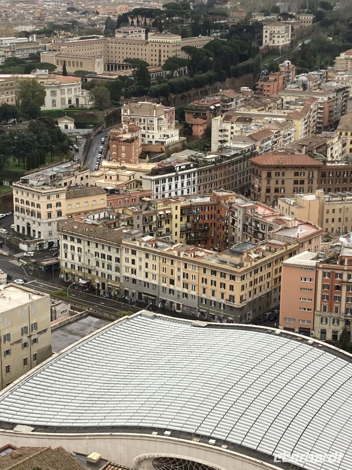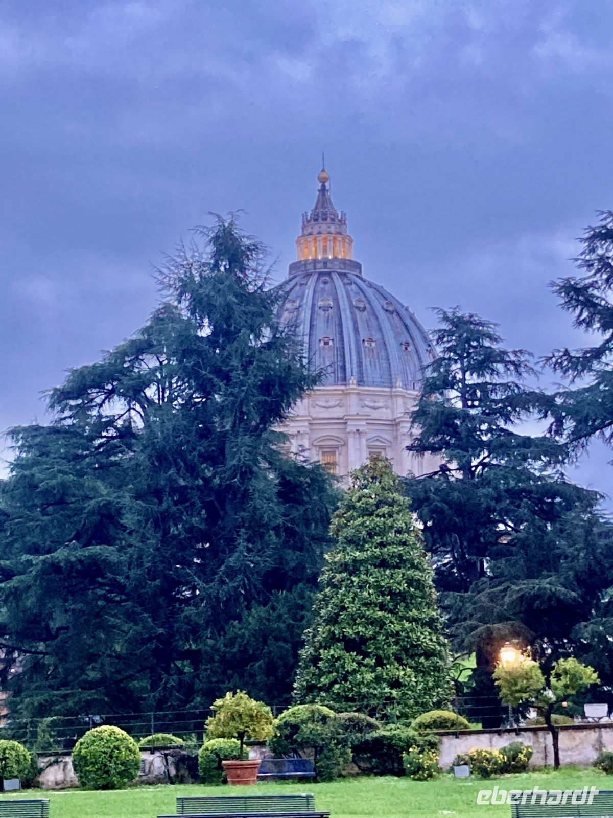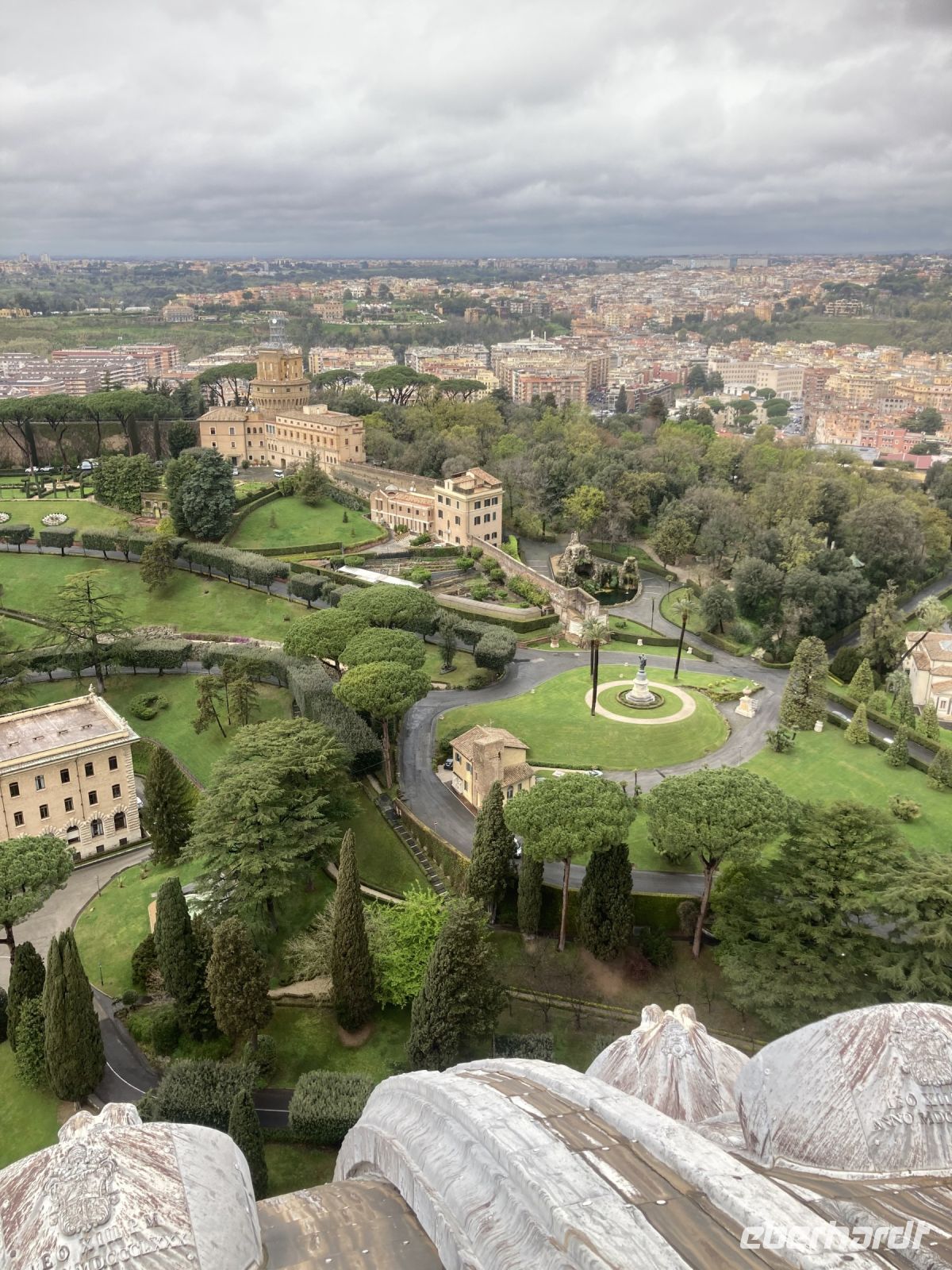 Da wir noch genügend Zeit haben, erklimmen wir noch die Kuppel des Domes. Ein klein wenig hilft ein Aufzug, aber es sind immerhin noch 320 Stufen und es wird eng da hoch zu. Jedoch werden wir mit einem fantastische Ausblick belohnt, auch auf die Vatikanischen Gärten, was uns sonst verborgen geblieben wäre.