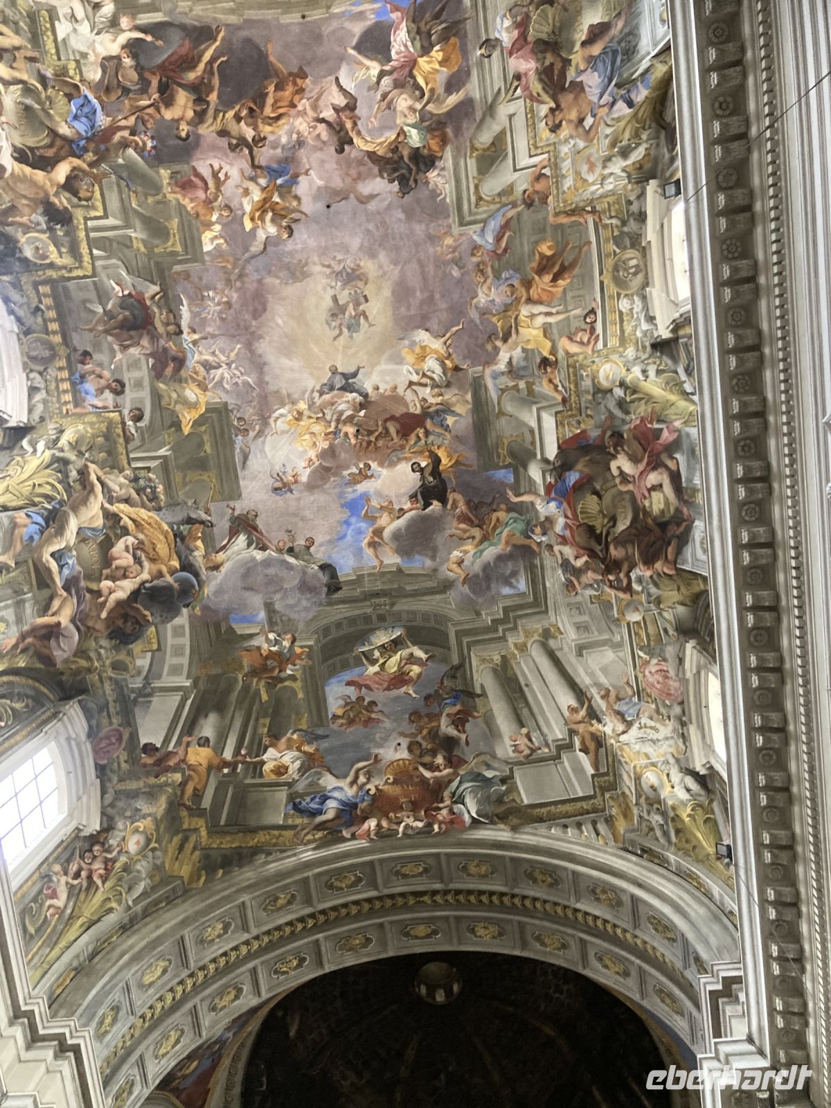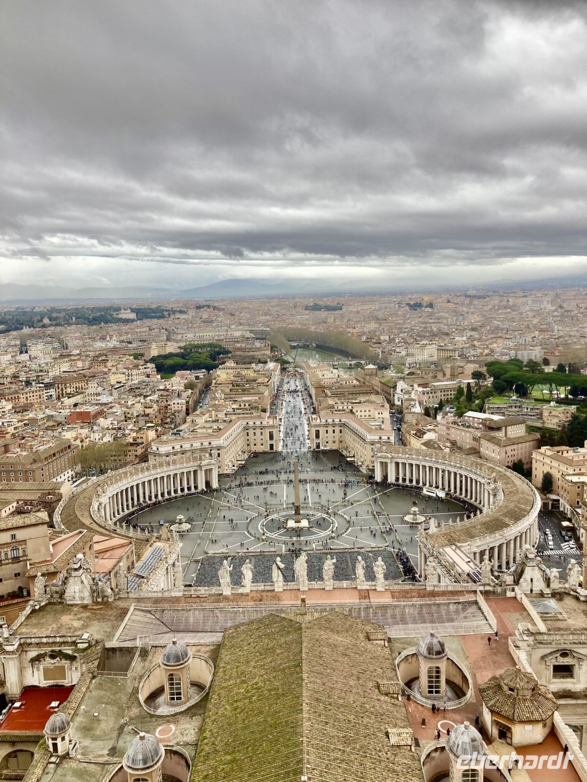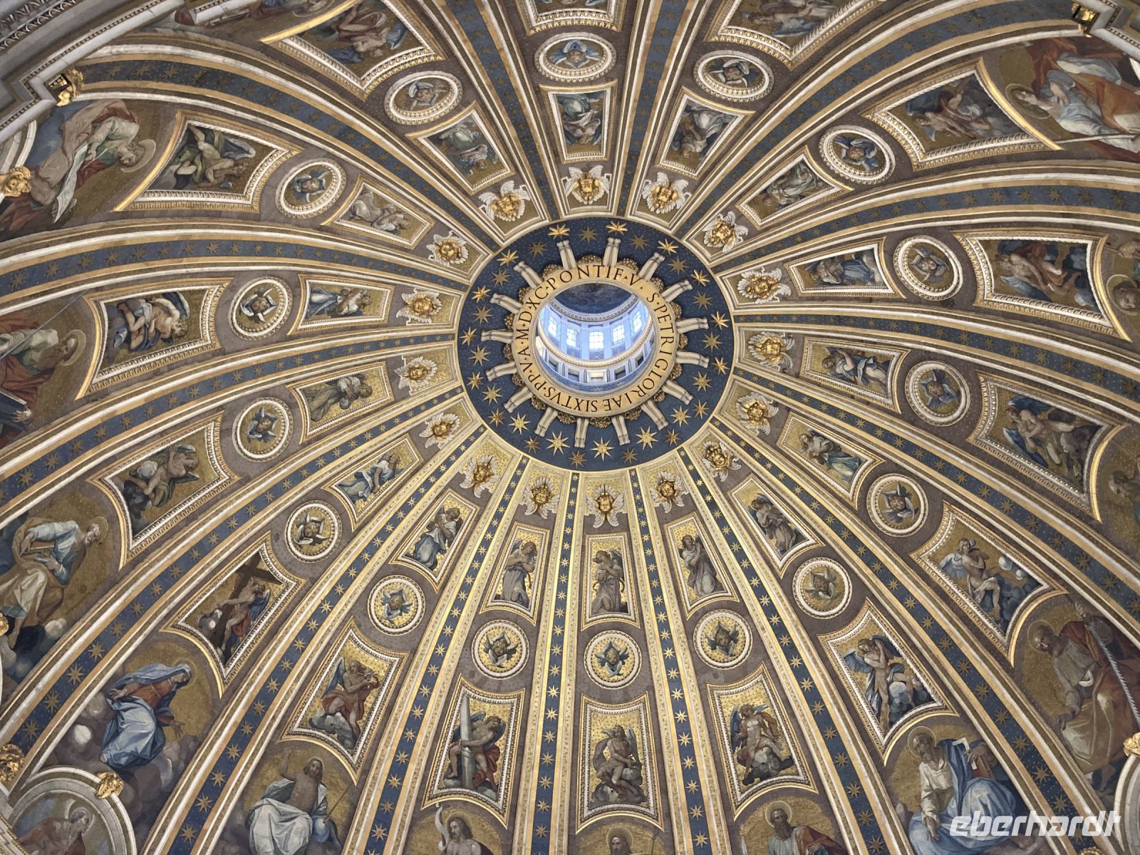 Da wir noch genügend Zeit haben, erklimmen wir noch die Kuppel des Domes. Ein klein wenig hilft ein Aufzug, aber es sind immerhin noch 320 Stufen und es wird eng da hoch zu. Jedoch werden wir mit einem fantastische Ausblick belohnt, auch auf die Vatikanischen Gärten, was uns sonst verborgen geblieben wäre.