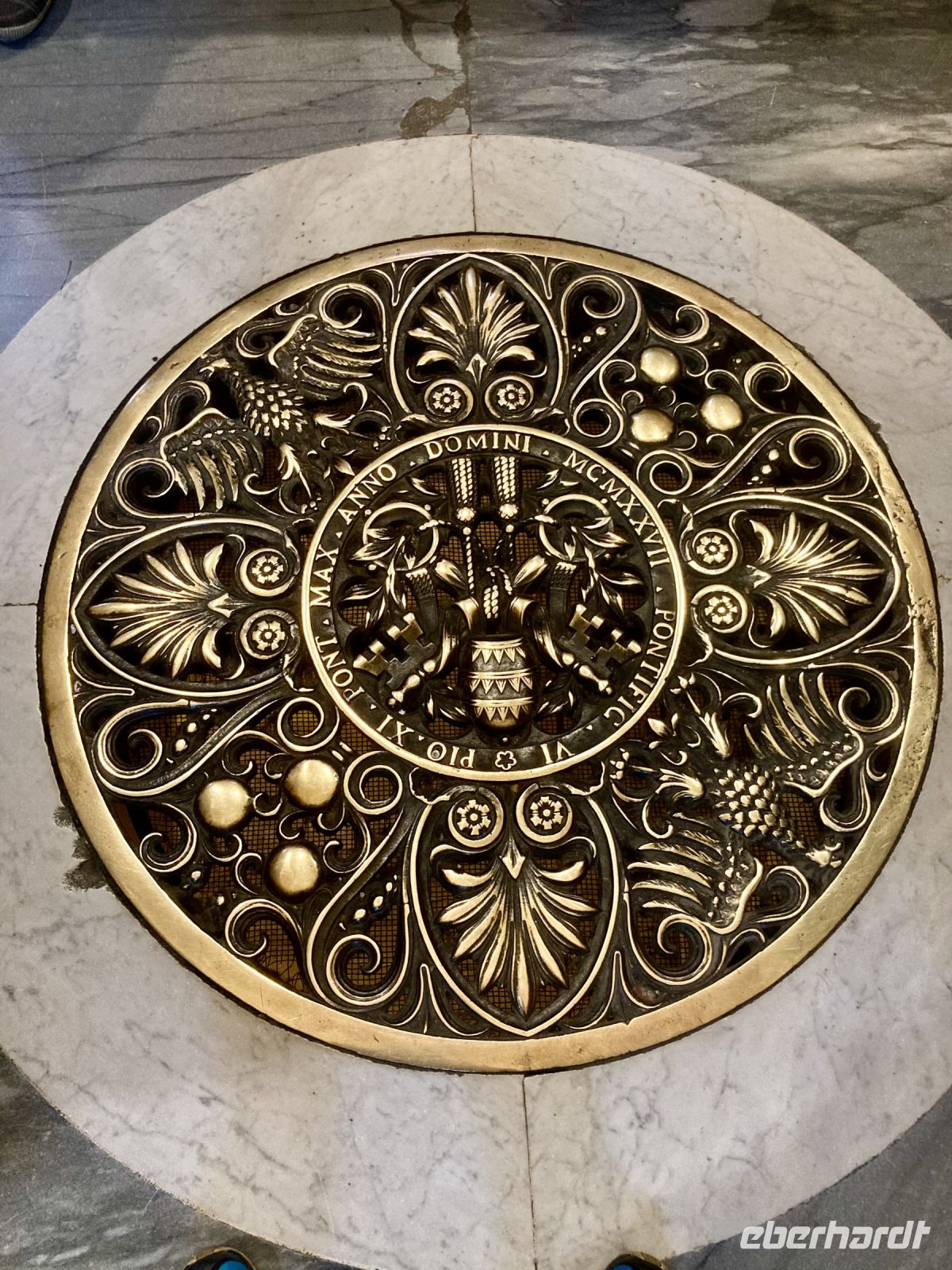 Um die Länge des Petersdomes zu verdeutlichen und einen anschaulichen Vergleich mit anderen Kirchengebäuden zu ermöglichen, sind am Fußboden des Hauptschiffes sternförmige Markierungen angebracht. Diese geben, gemessen von der Apsis des westlichen Kreuzarmes, die inneren Längen von 31 großen anderen Kirchen wieder.