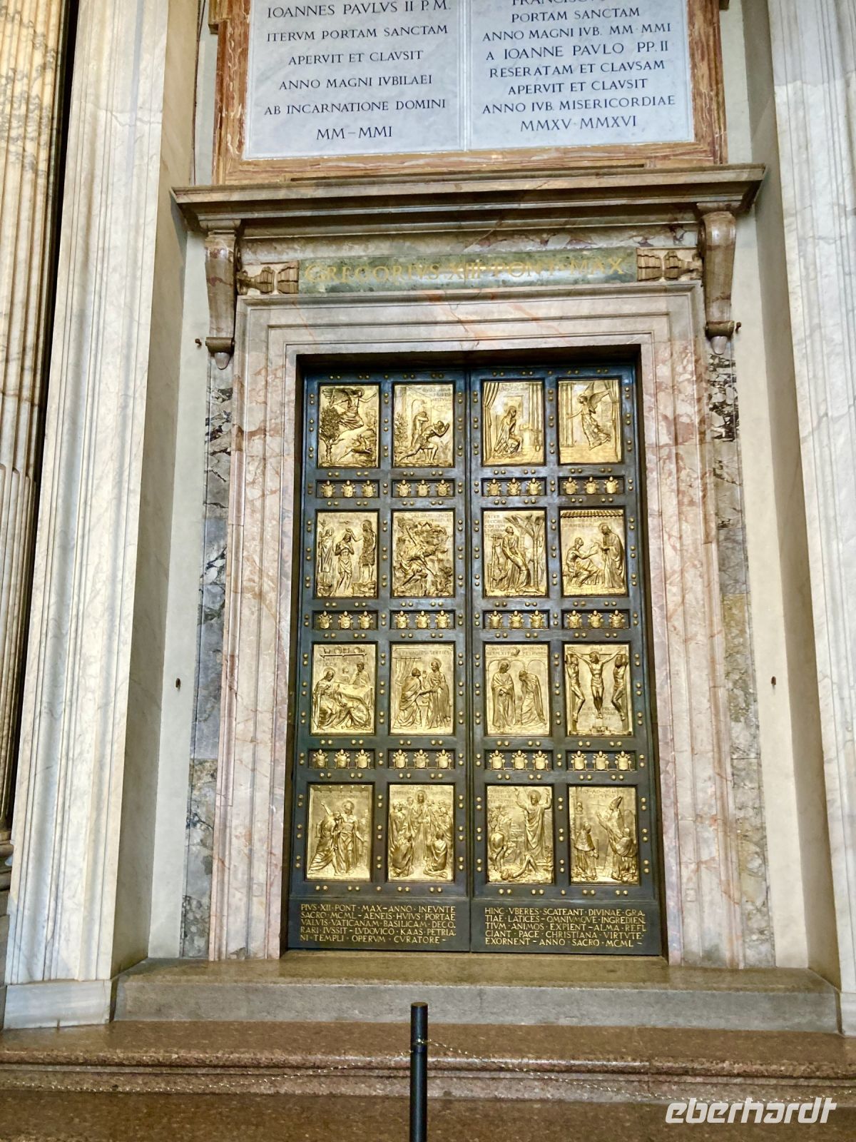 Ostern naht und so wird es heute kirchlich. Zwei Programmpunkte füllen heute den Tag. Zuerst ist der Petersdom dran. Wir starten nicht all zu spät, erfahrungsgemäß ist da die Wartezeit am Geringsten. Leichter Regen hilft eventuell auch ein wenig die Wartezeit zu verkürzen. Nach 60 Minuten haben wir (schon) die Sicherheitskontrolle erreicht. Fast 25.000 Besucher zählt man täglich hier, also jährlich fast 9 Millionen.