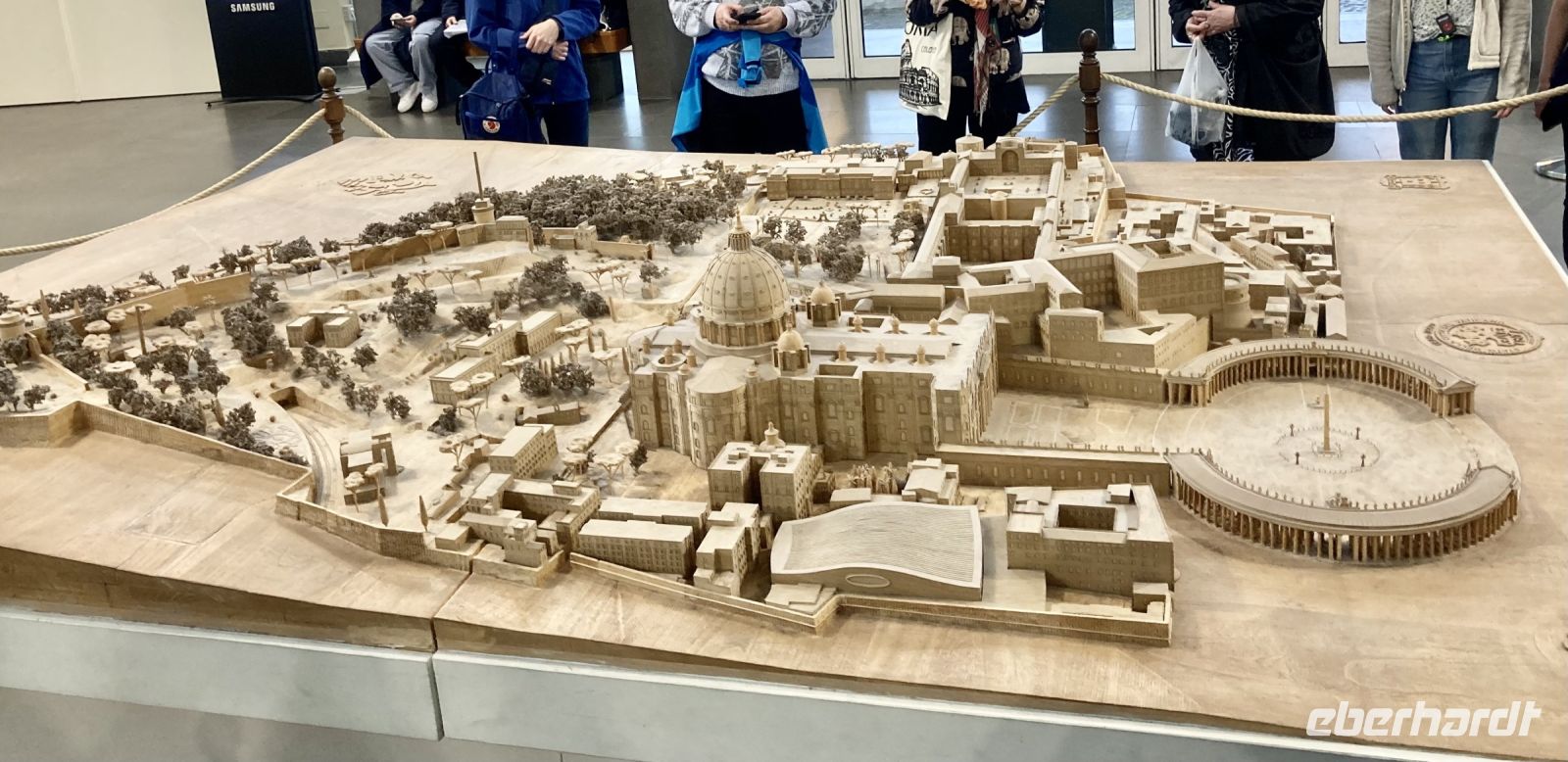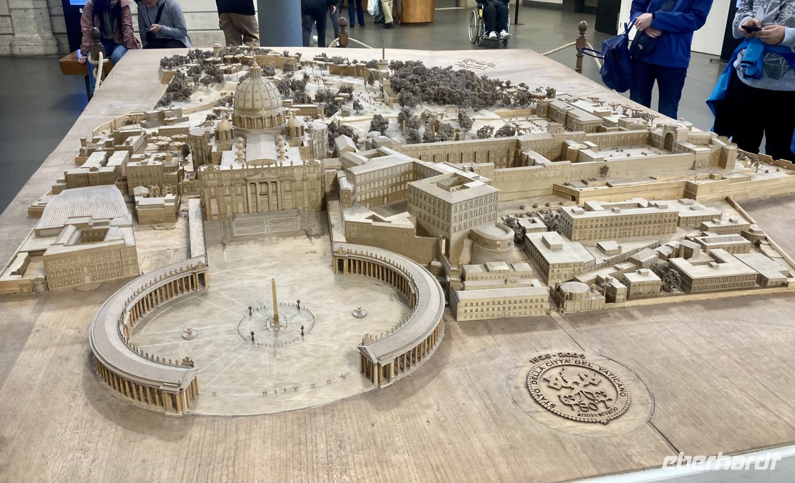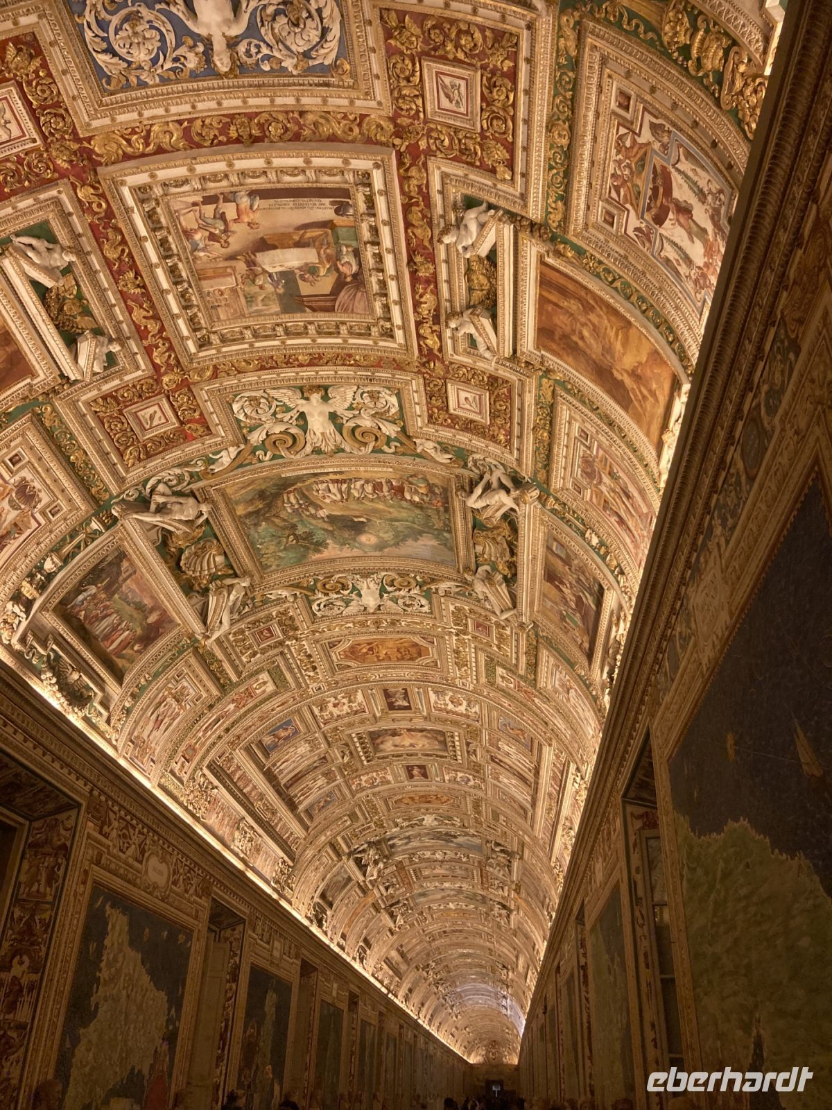 Nach einer reichlichen Pause und dem Besuch der Engelsburg und der Engelsbrücke, erreichen wir die Vatikanischen Museen. Nachdem die Voucher in Eintrittskarten umgewandelt wurden und die päpstlichen Audiogeräte in Empfang genommen wurden, gehts los. Natürlich sehen wir nur einen Bruchteil der Ausstellungsstücke, die von den Päbsten zusammengetragen wurden. Allein 1.800.000 wertvolle Bücher und Handschriften sind hier beheimatet. Unzählige Skulpturen, Gemälde, Schmuckstücke und Wandteppiche gibt es zu bestaunen.
