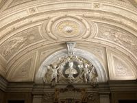 In der Betonkuppel des Gebäudes gibt es ein neun Meter großes Loch. Warum? Nicht damit es reinregnet, sondern hätte man die Kuppel geschlossen, wäre dies zu schwer geworden und die Statistik hätte nicht mehr funktioniert. So kann man das Wandern der Sonne im Inneren gut beobachten und diese scheint ja zumeist in Rom. Rafael war von dem Bauwerk so begeistert, das er sich dieses als Begräbnisstätte wünschte und so geschah es auch. Am Rande sei erwähnt, dass es im Fußboden mehrere Löcher gibt, die das Regenwasser aufnehmen und abführen.