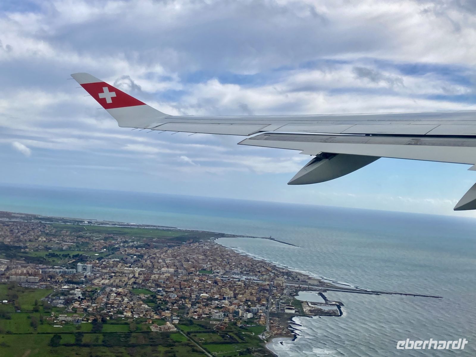 Jetzt gilt es Abschied zu nehmen. Wir werden in drei Etappen wieder mit den schicken schwarzen Mercedesbussen von Stefano Nigro gefahren. Es bleibt noch etwas Zeit um den wirklich sehr schicken und zugleich modernen Flughafen zu erleben. Es geht für manche Gäste im Direktflug nach Berlin und Köln/Bonn. Die Dresdner Gruppe fliegt mal über Zürich und die Swissairmaschinen sind wirklich sehr schick.